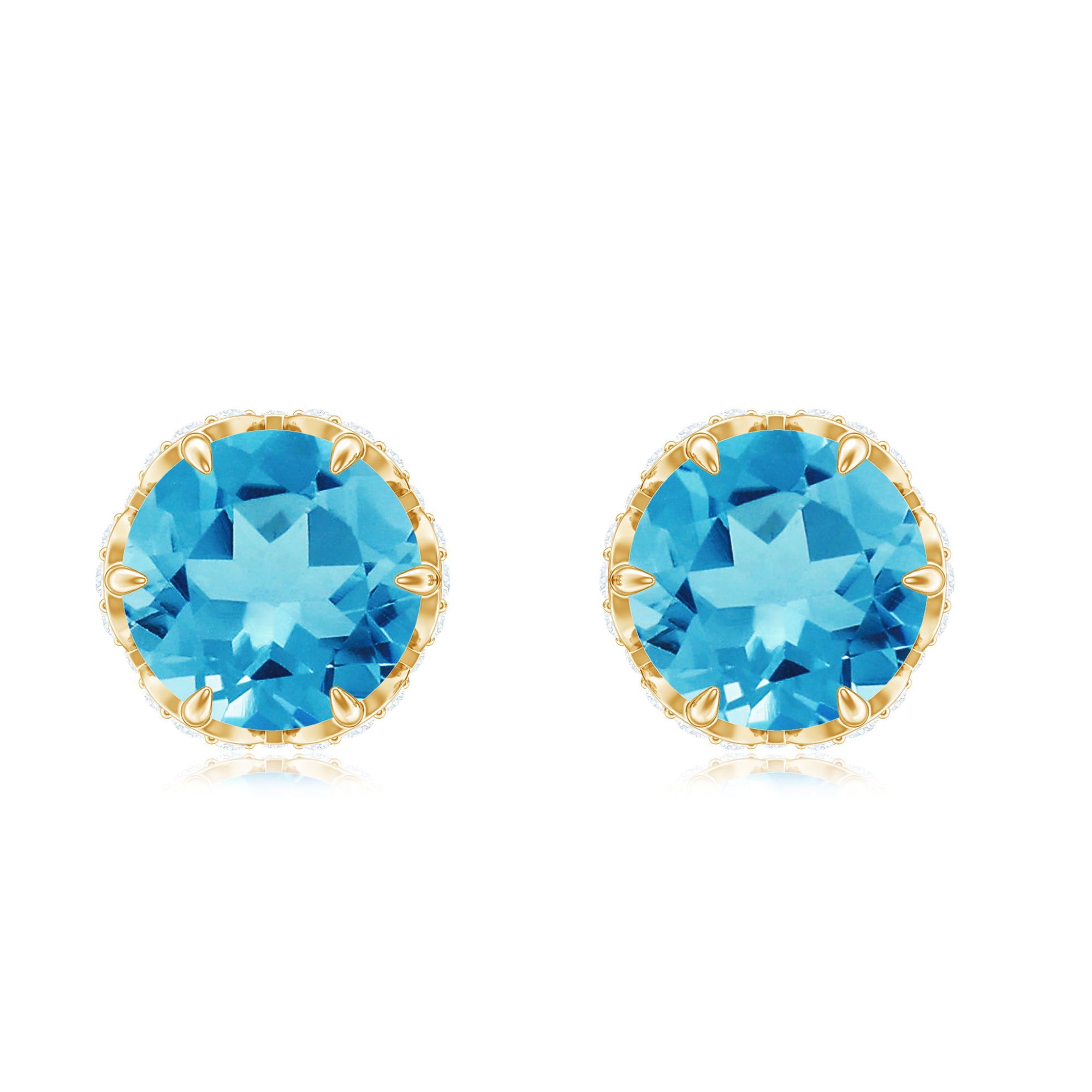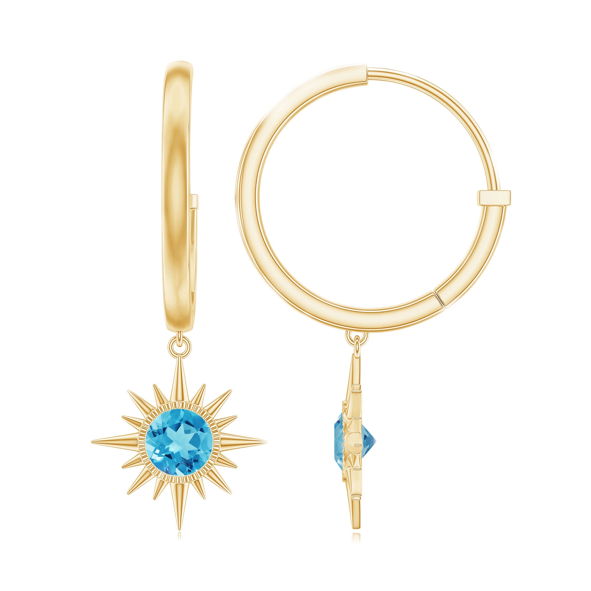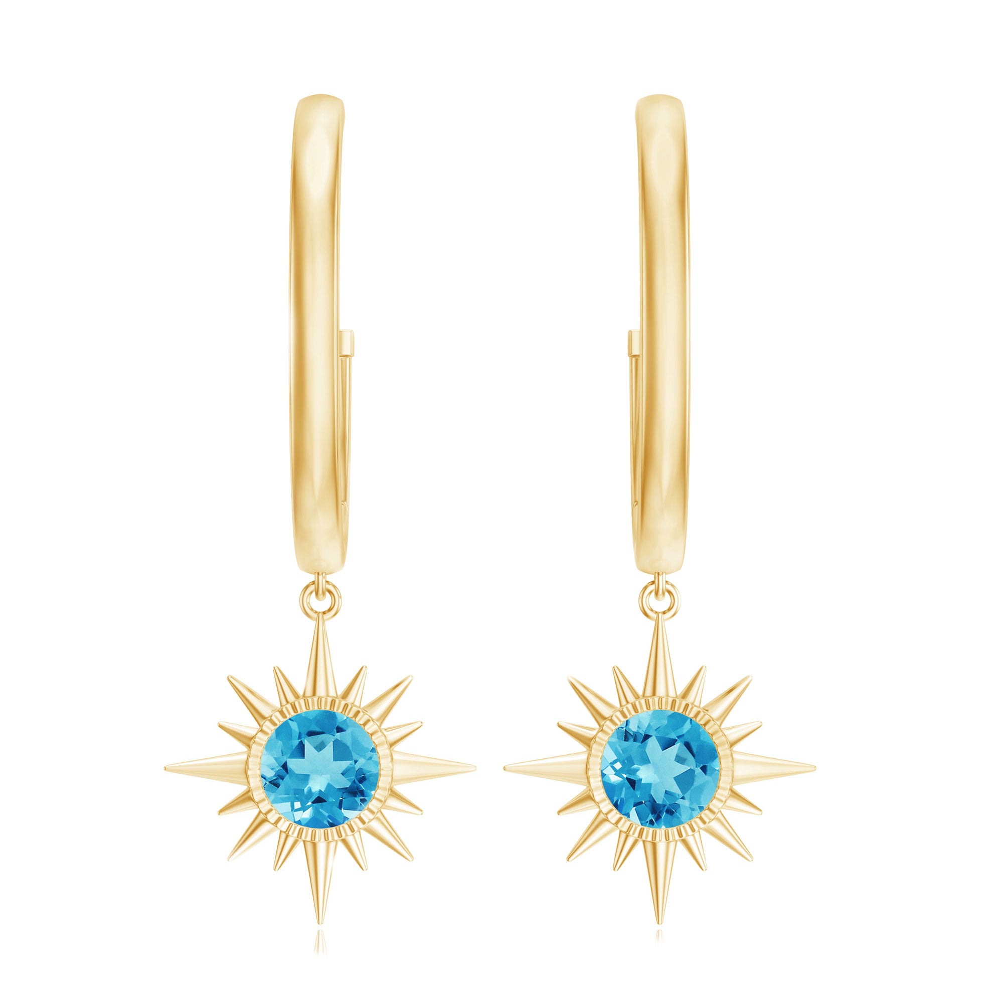 Since yellow gold looks so classy with any attire and when combined with the deep sea color of Swiss Blue Topaz, it looks no less alluring.