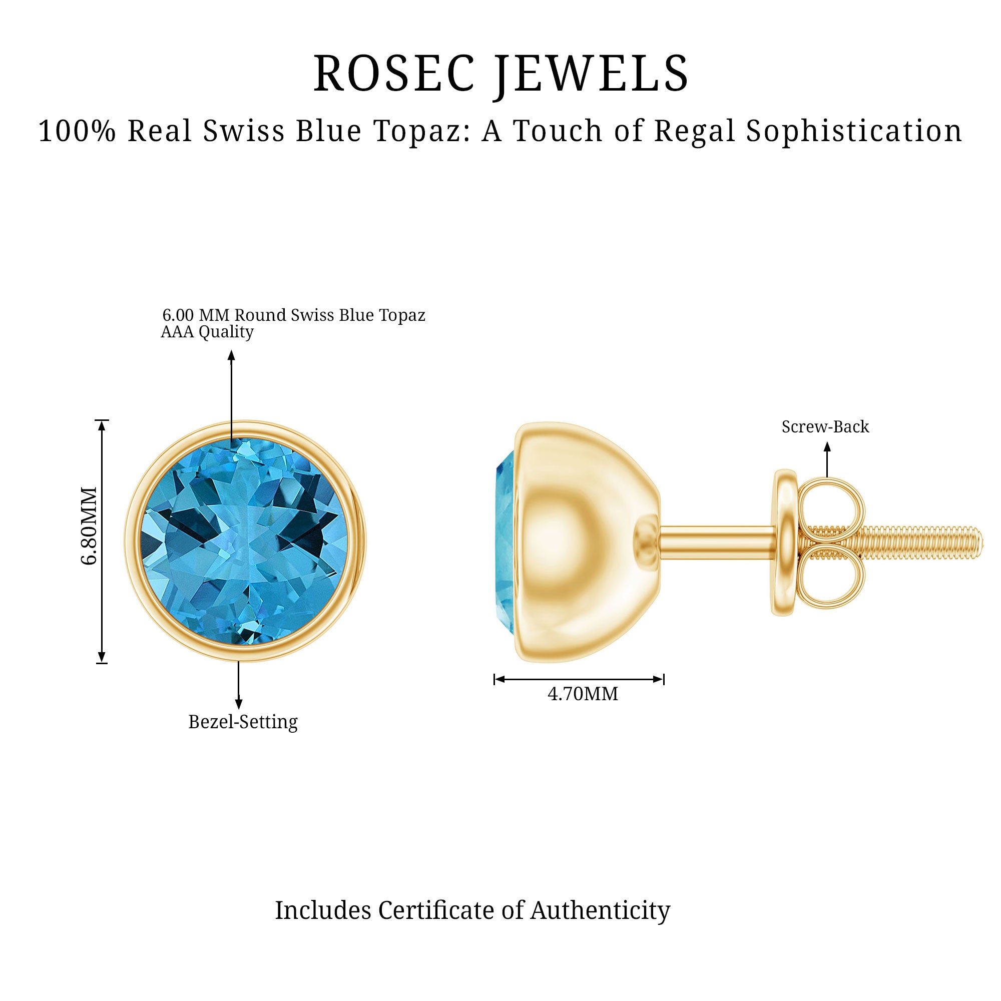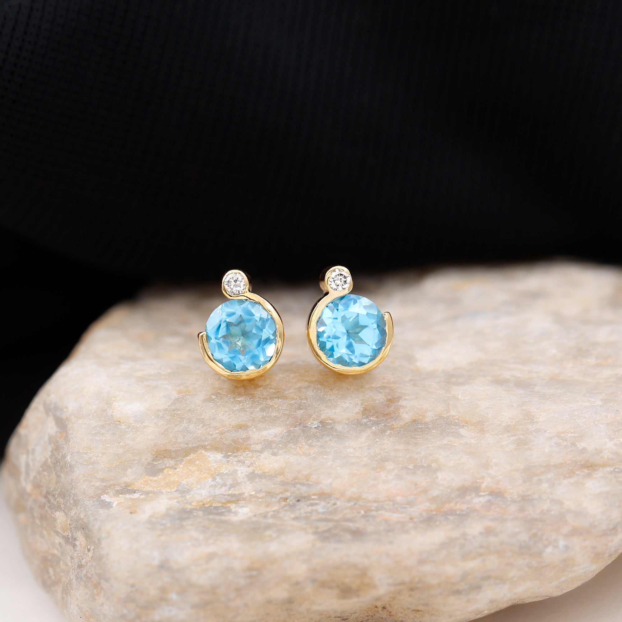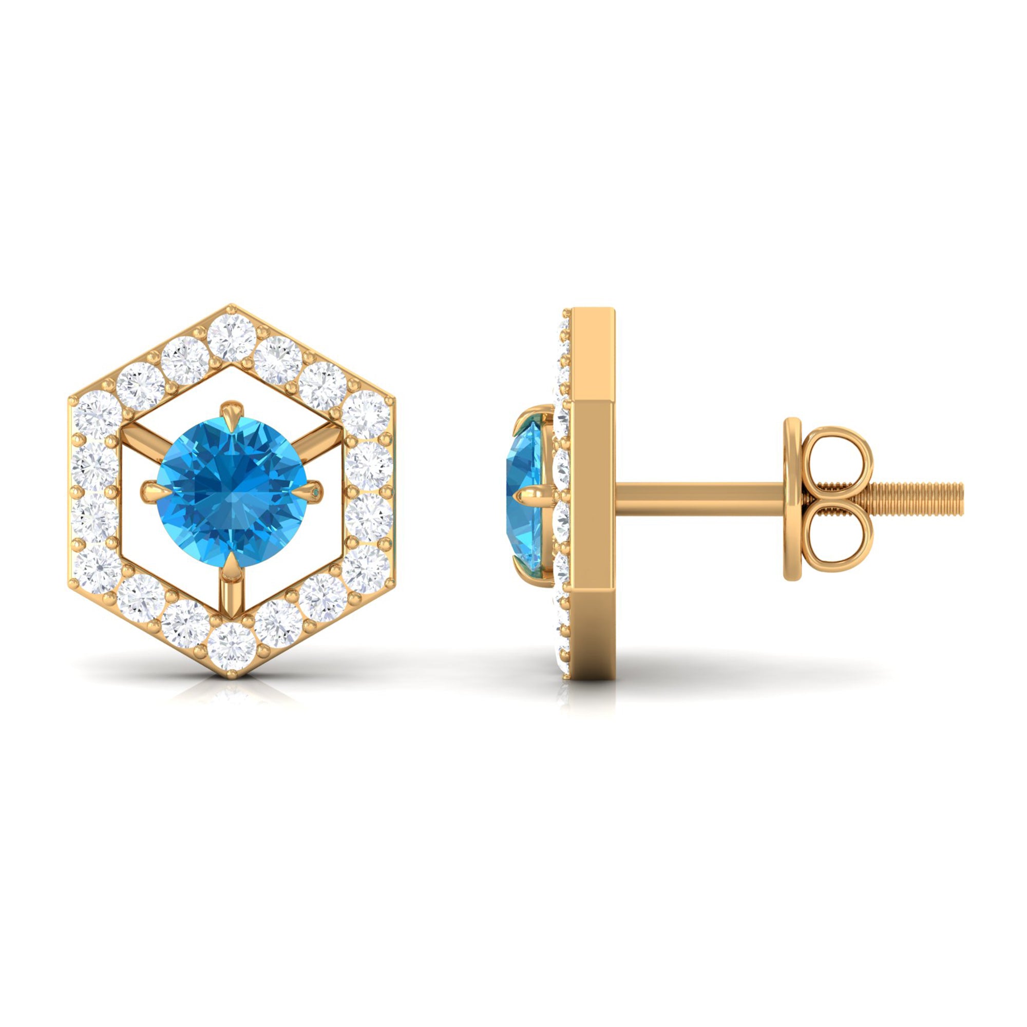 Since yellow gold looks so classy with any attire and when combined with the deep sea color of Swiss Blue Topaz, it looks no less alluring.