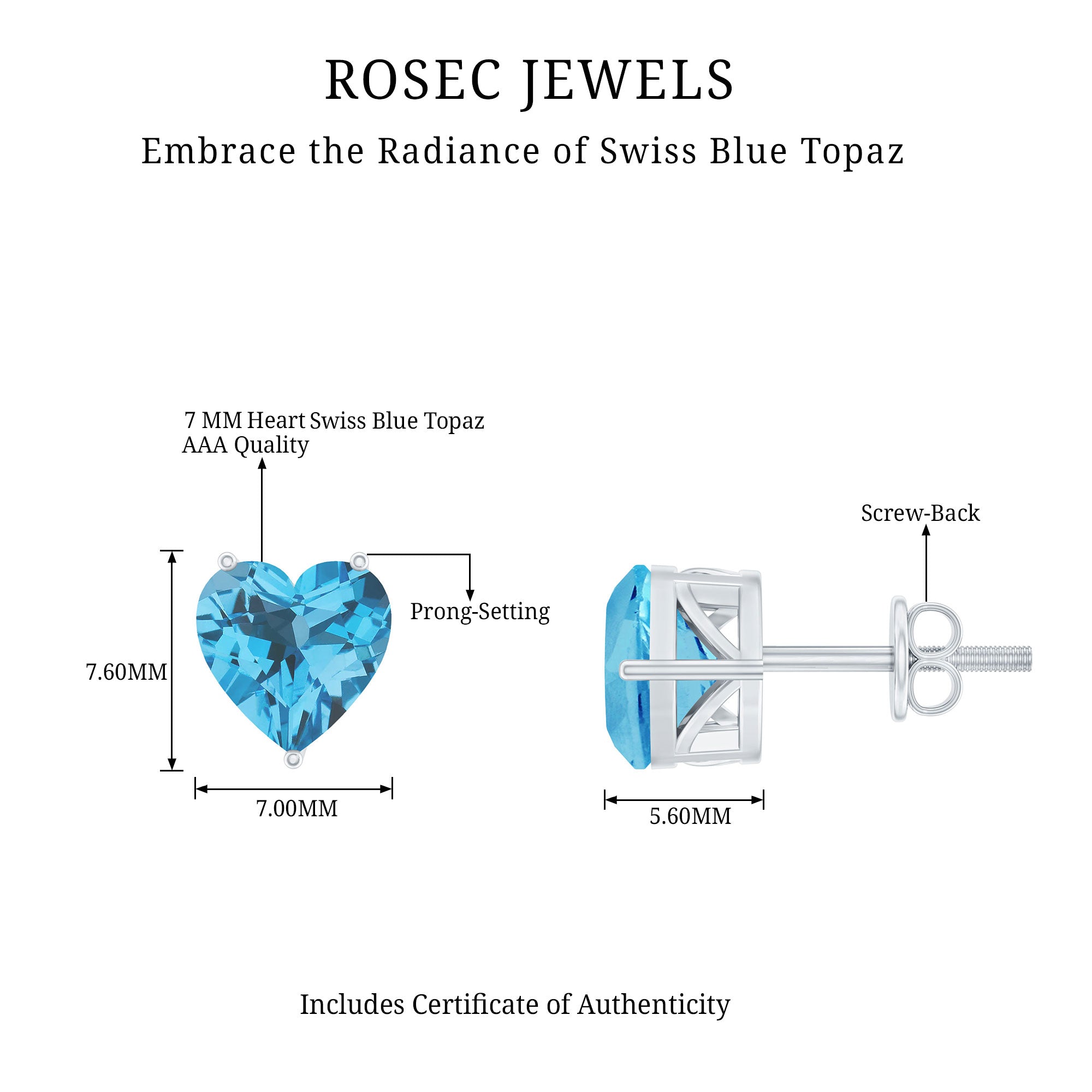Swiss Blue Topaz is known to calm the soul and body of the wearer by healing, recharging and replenish the mind of the wearer. It is also known to enhance communication, thus bridging the gap between people. All in all, it is believed to bring balance in the life of the wearer by stabilizing emotions. Since it also symbolizes love and loyalty, it is also known to enhance honesty, attachment and trust in relationships, thus making it a great gift for your significant other.