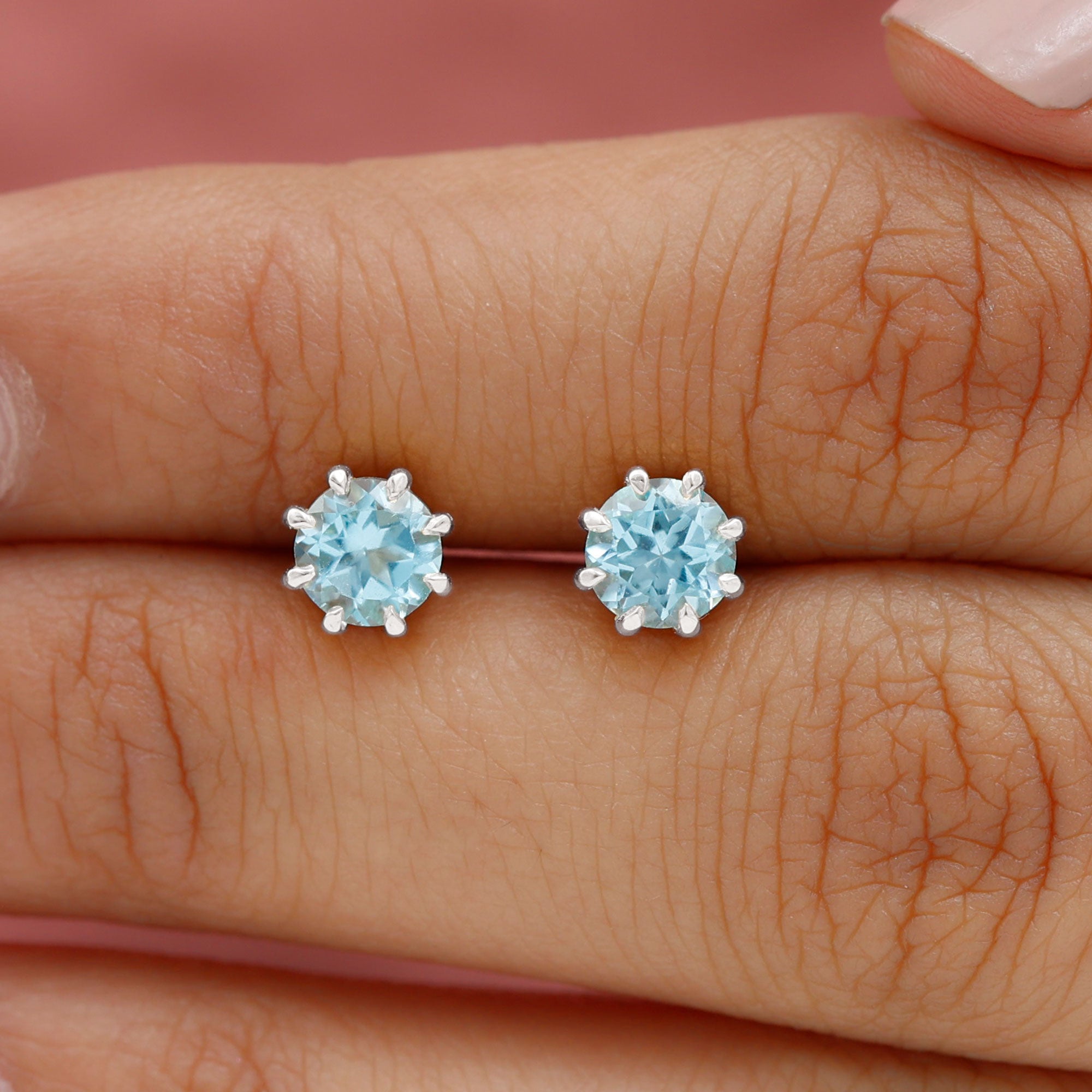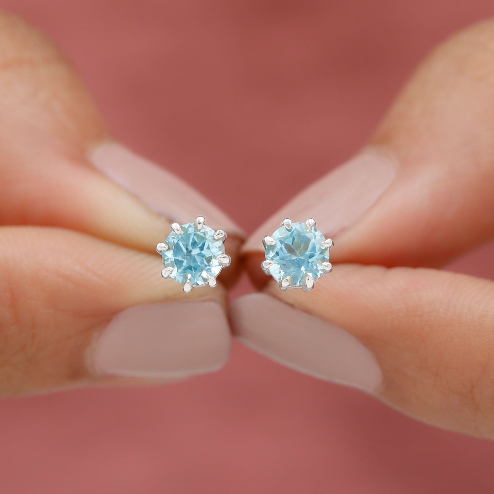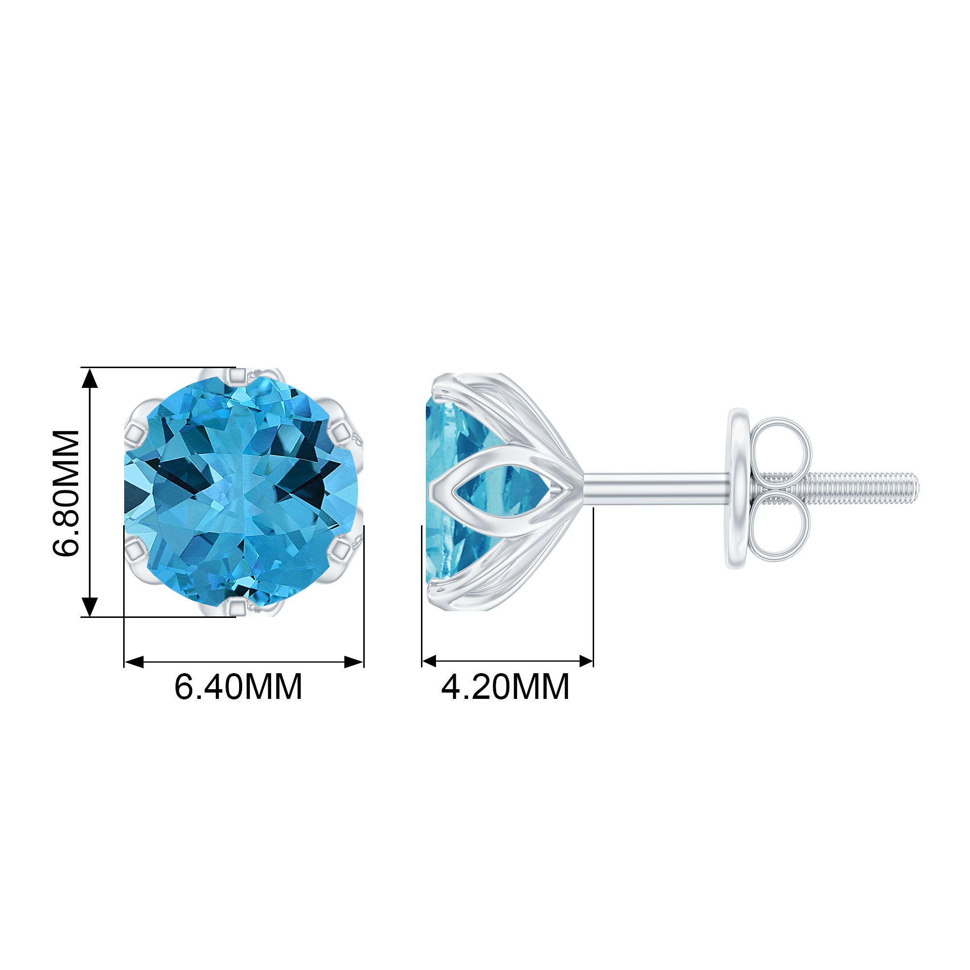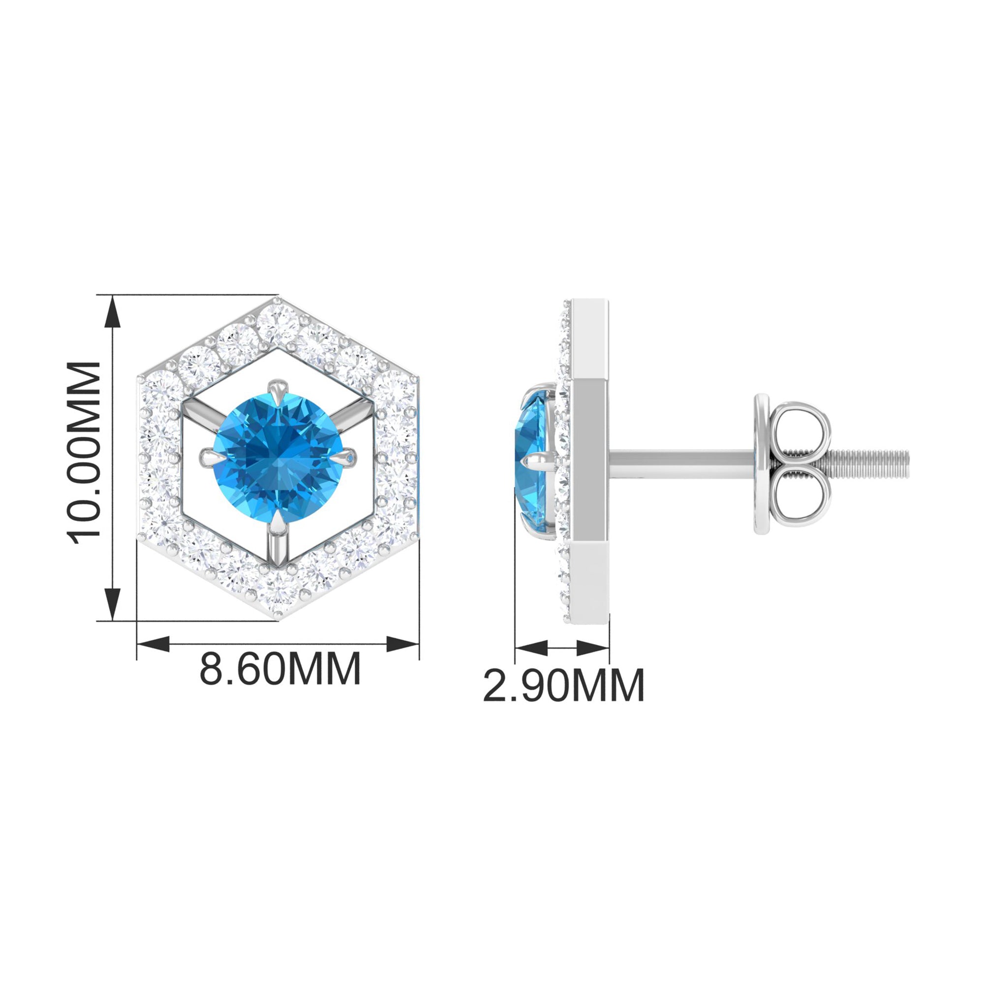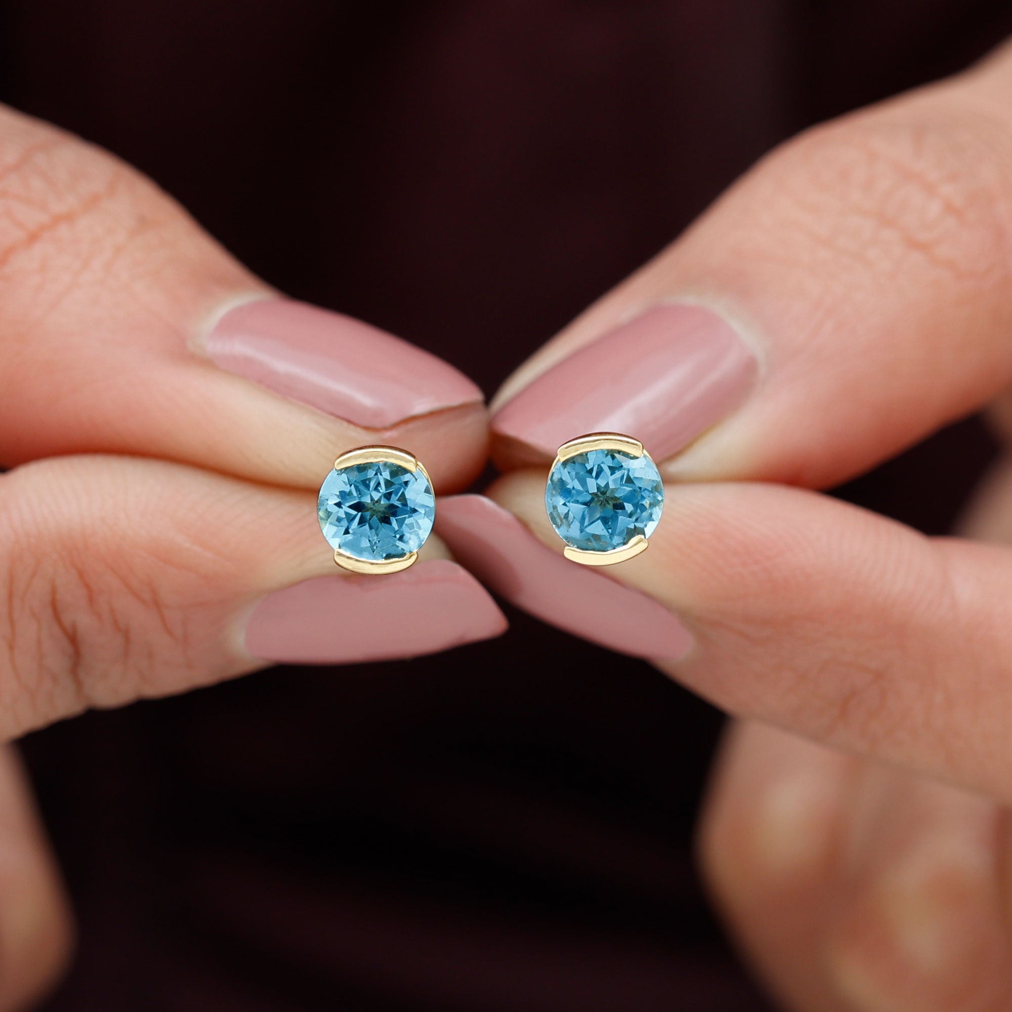 Swiss Blue Topaz Stud Earrings: