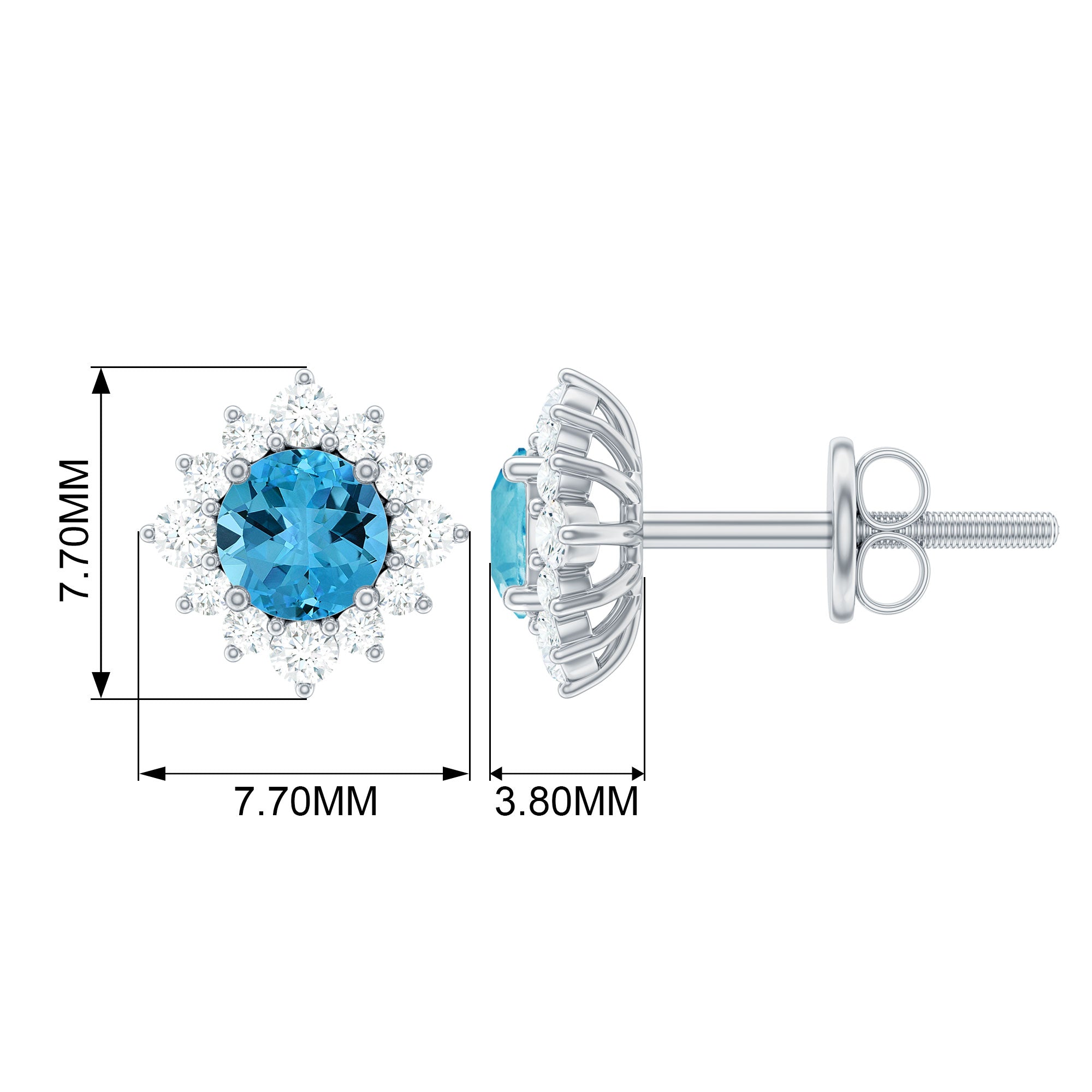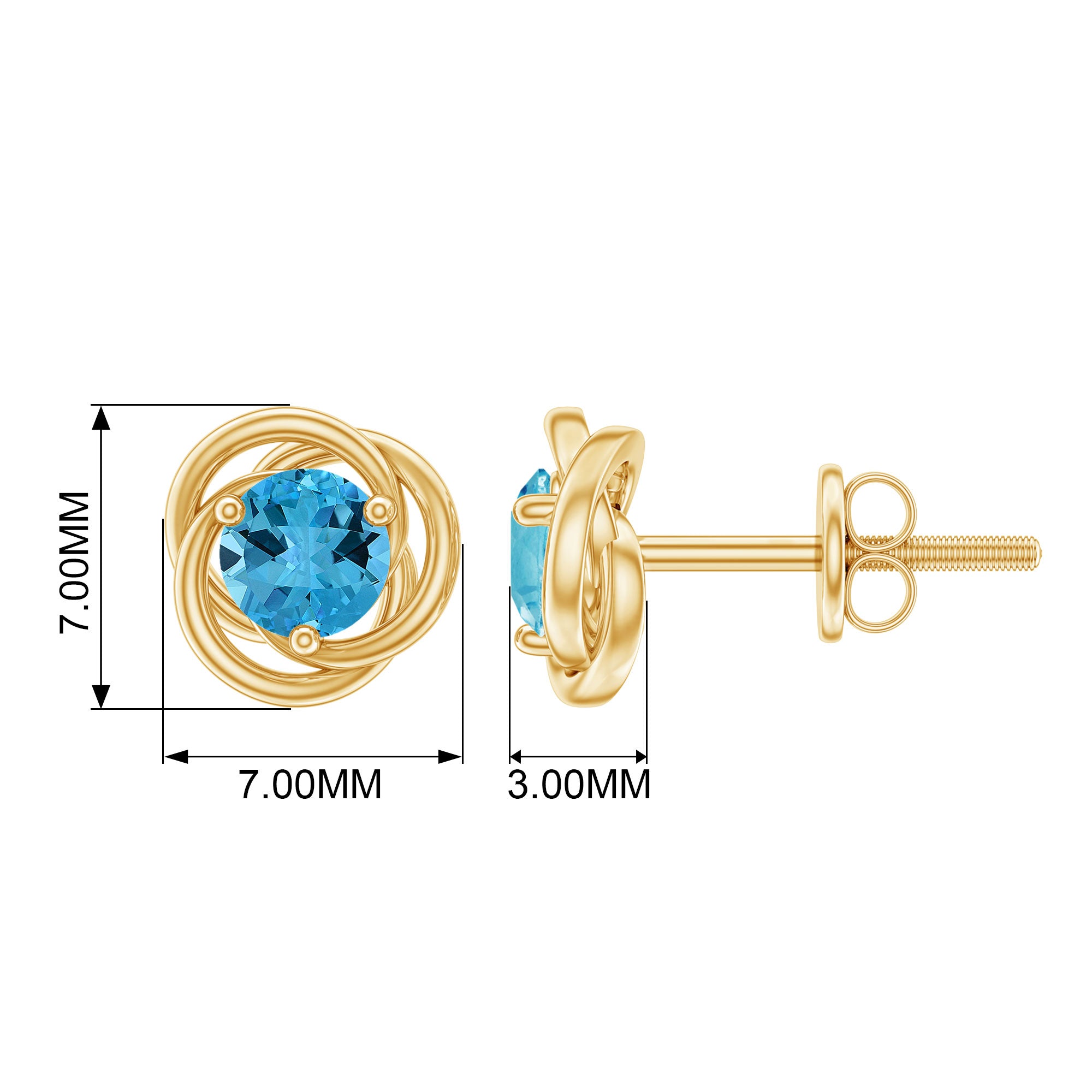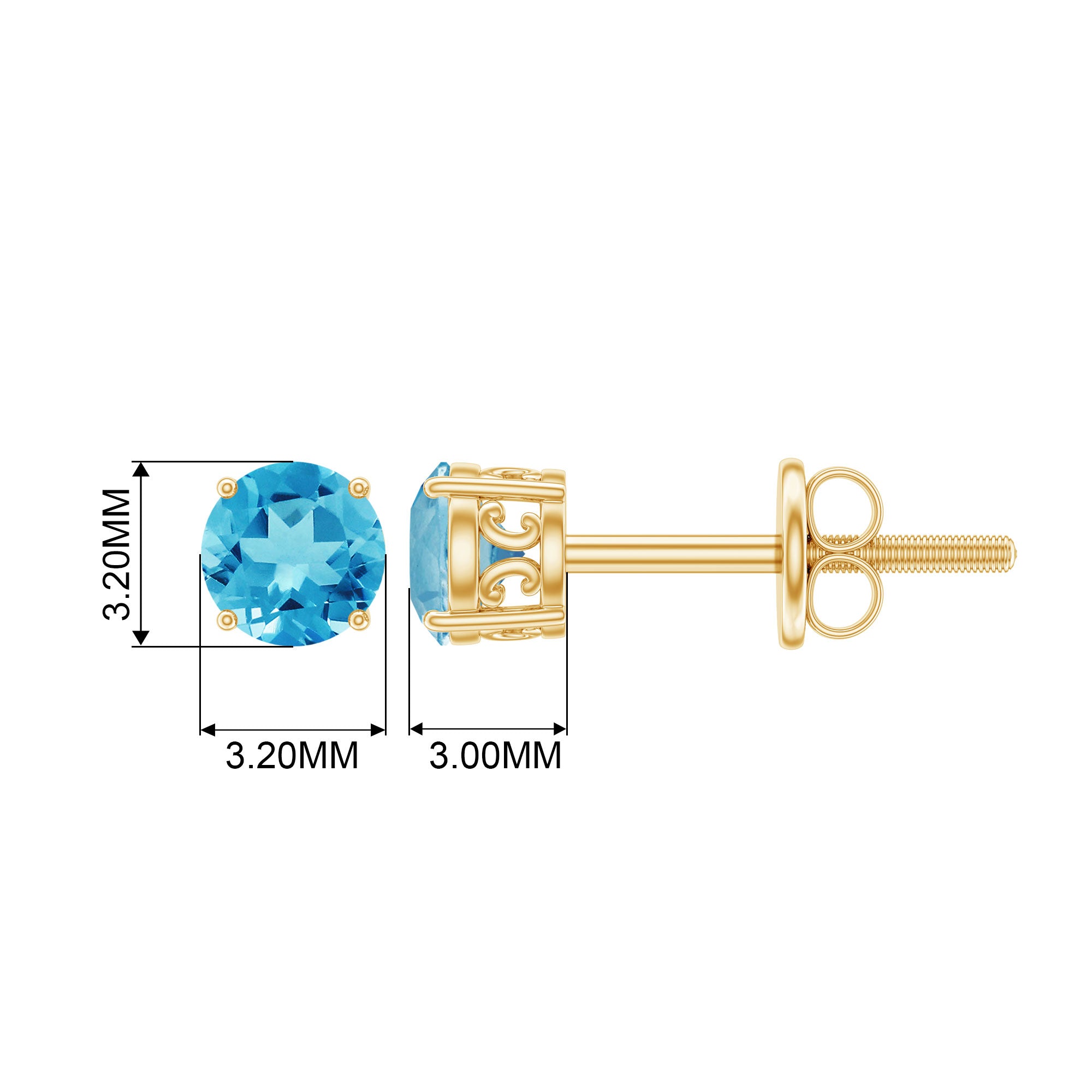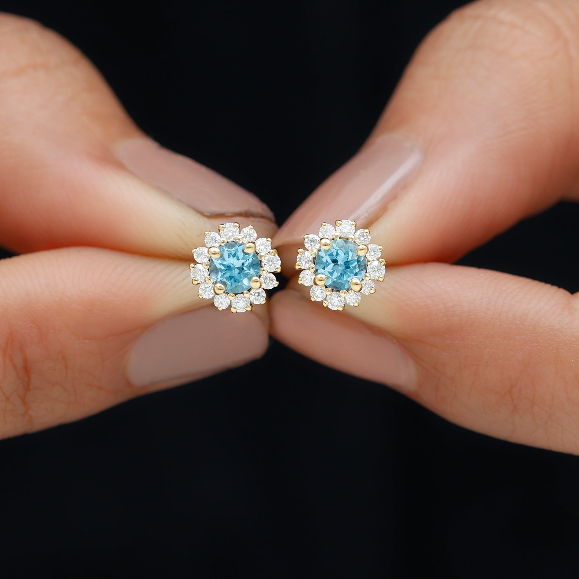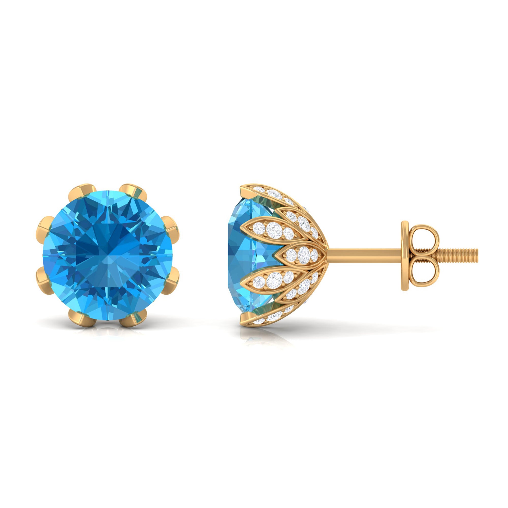Swiss Blue Topaz Stud Earrings: