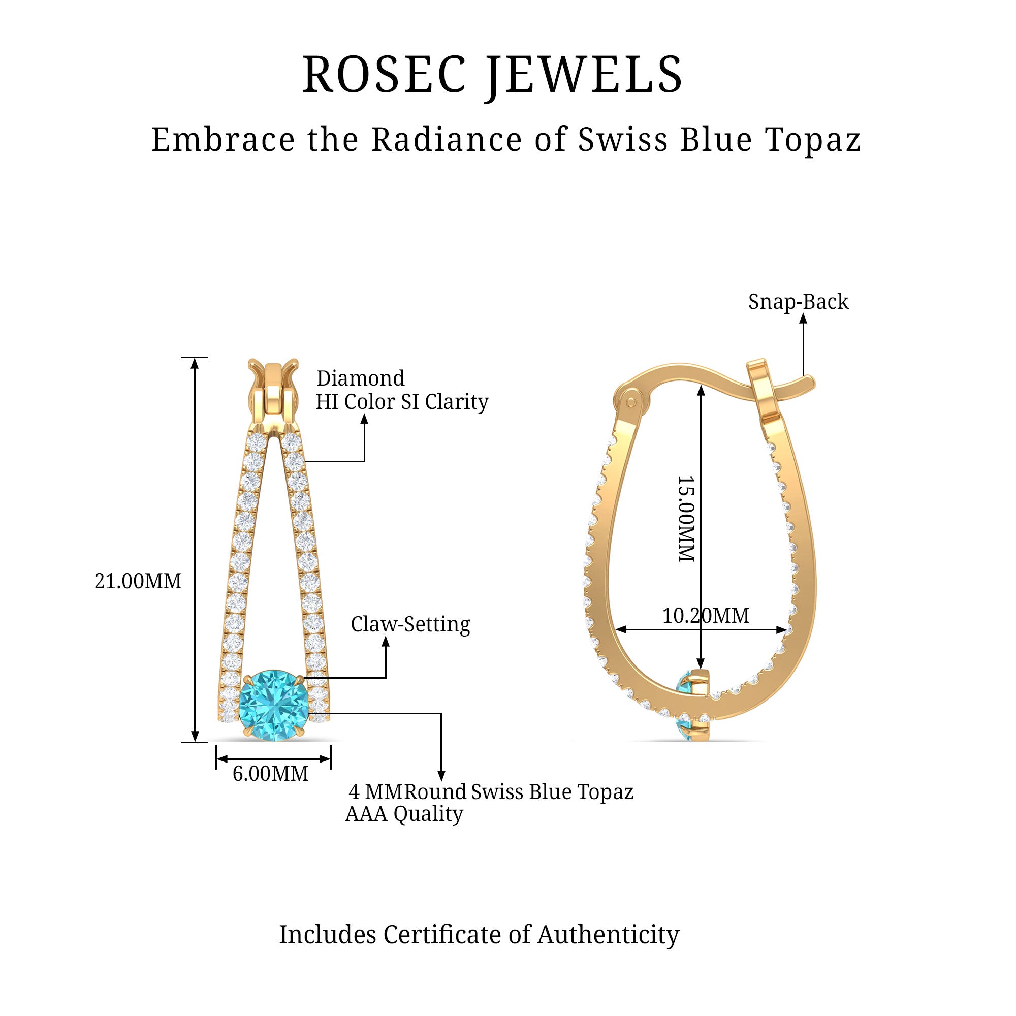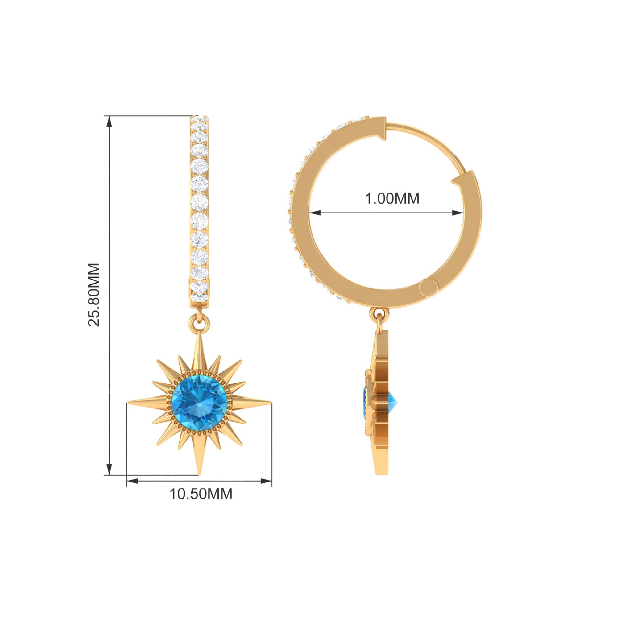 Isn’t white the most timeless colors of all? The timelessness of White Gold is such that Swiss Blue Topaz Earrings Gold look no less stunning!