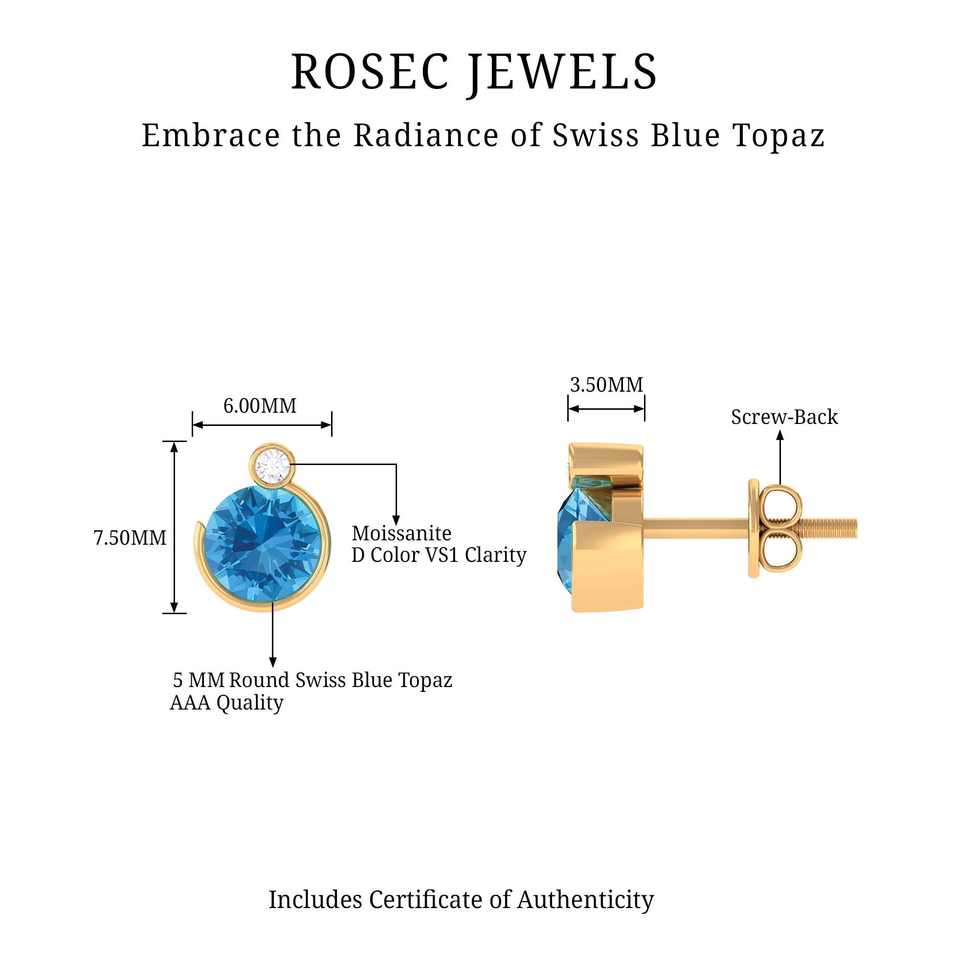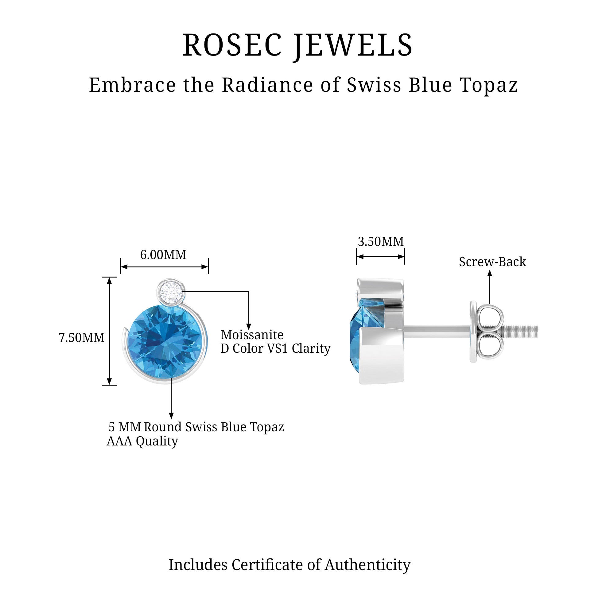Talking about its premium USP: the deep sea blue color of Swiss Blue Topaz Earrings, its color saturation ranges from light to moderate.