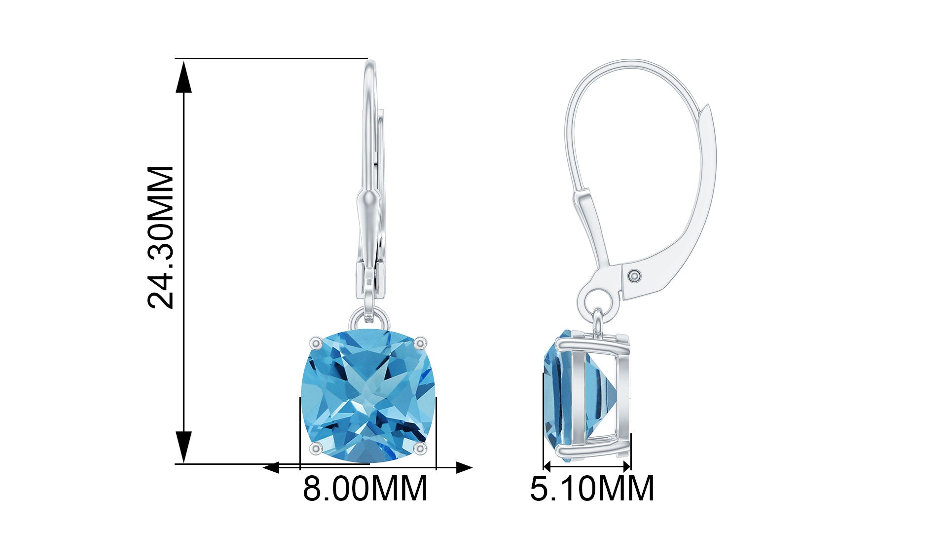 Having a hardness of around 8 on Moh’s scale, Swiss Blue Topaz Earrings can be worn on a regular basis as well, making it one of the most durable gemstones of all times. In fact, an original Swiss Blue topaz is known to scratch glass with its hardness.