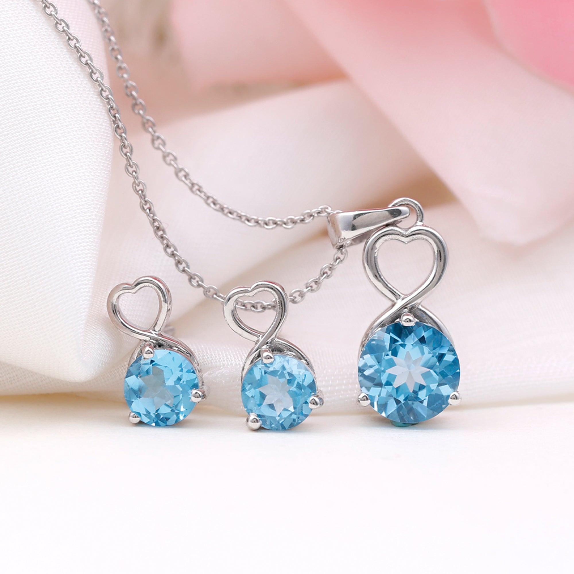 There are multiple ways of wearing Swiss Blue Topaz Jewelry and one of them is adorning yourself with a Swiss Blue Topaz Pendant. The bold and beaming sky blue topaz pendant on your neck will have a mesmerizing affect on everyone around you. The soft shade of blue is winsome in any and every form.
