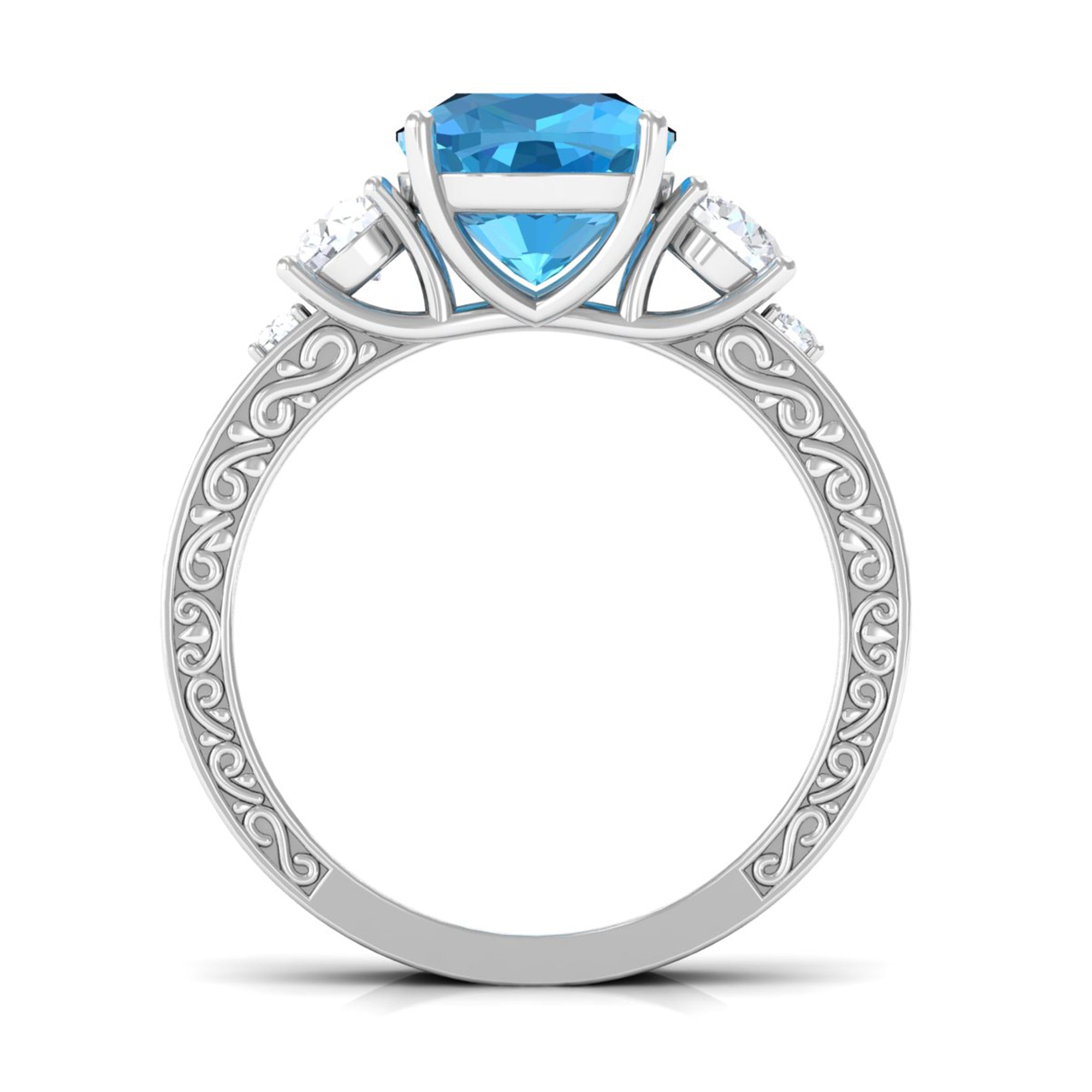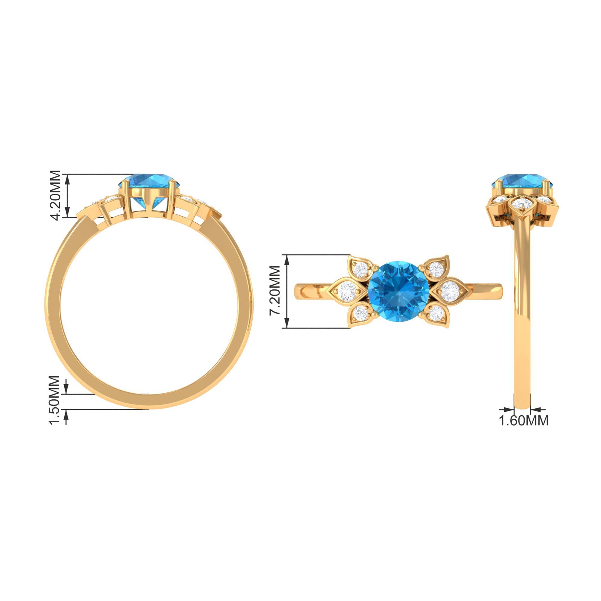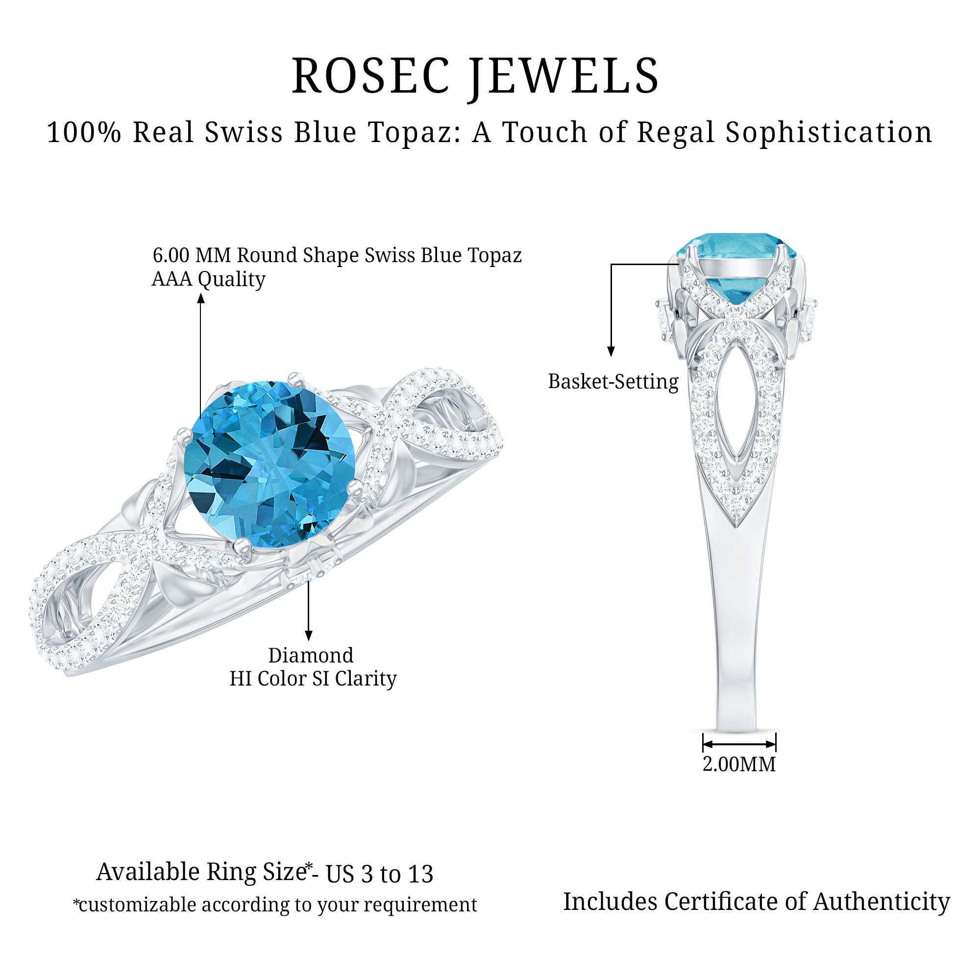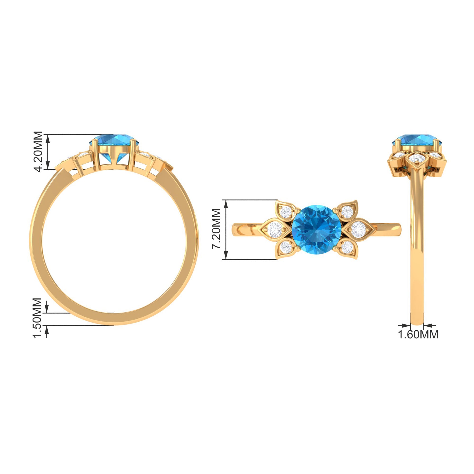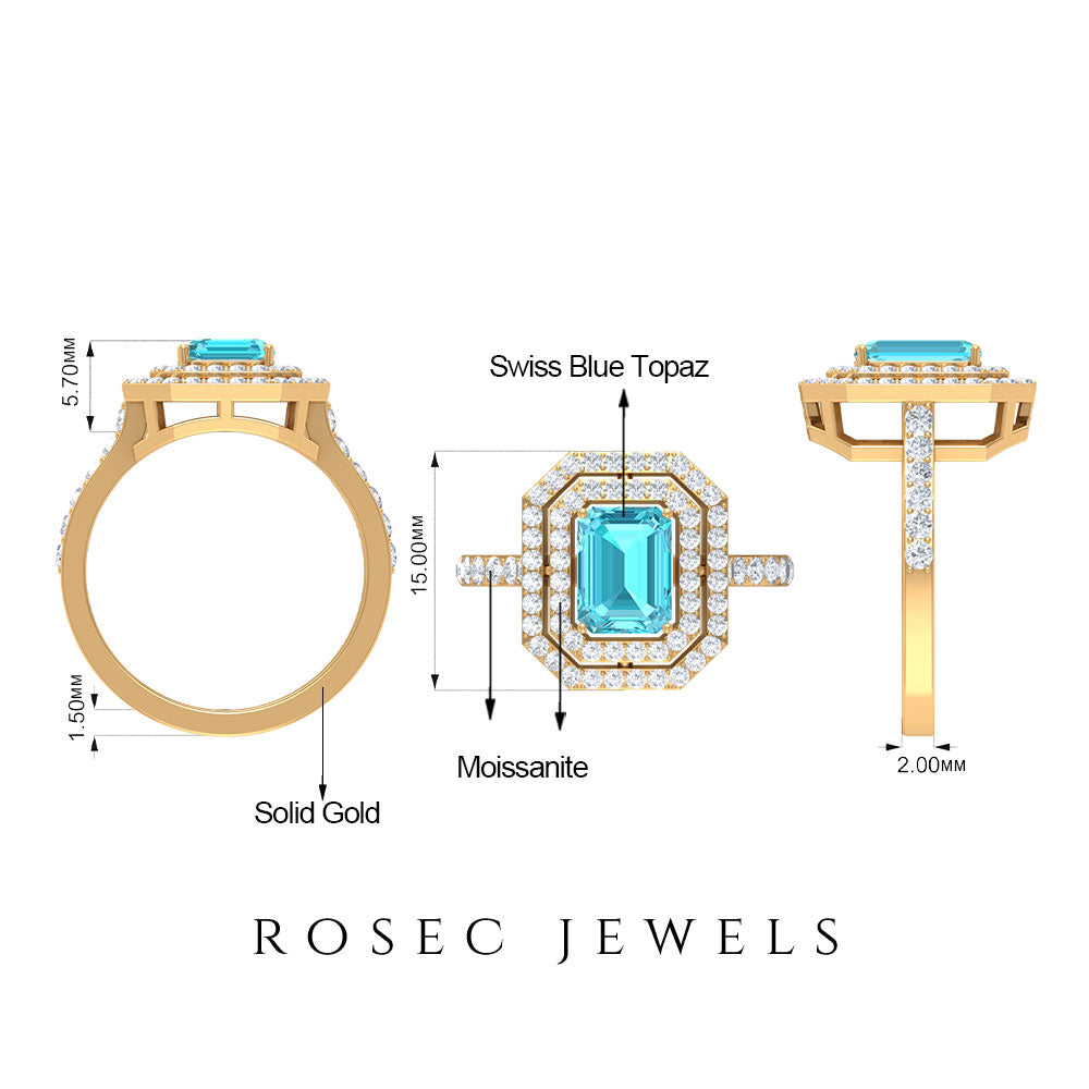 Treasured as one of the most flashy and flamboyant ring styles out there, a Swiss Blue Topaz Cocktail Ring is adorned by an enormous center stone of Swiss Blue Topaz. It is further beautified by eye-striking patterns of side-stones of Diamond/Moissanite under floral, antique, or any other statement-making design.
