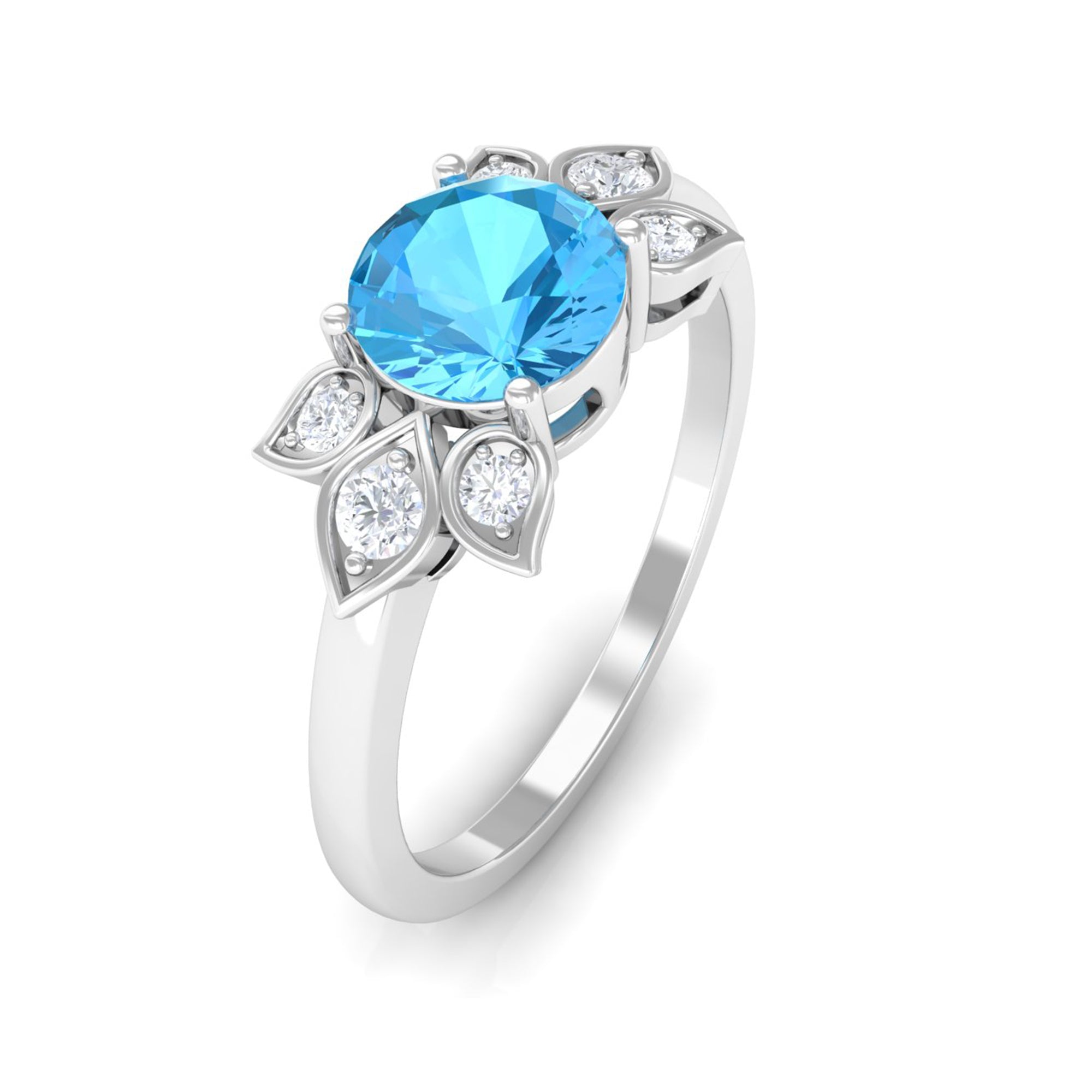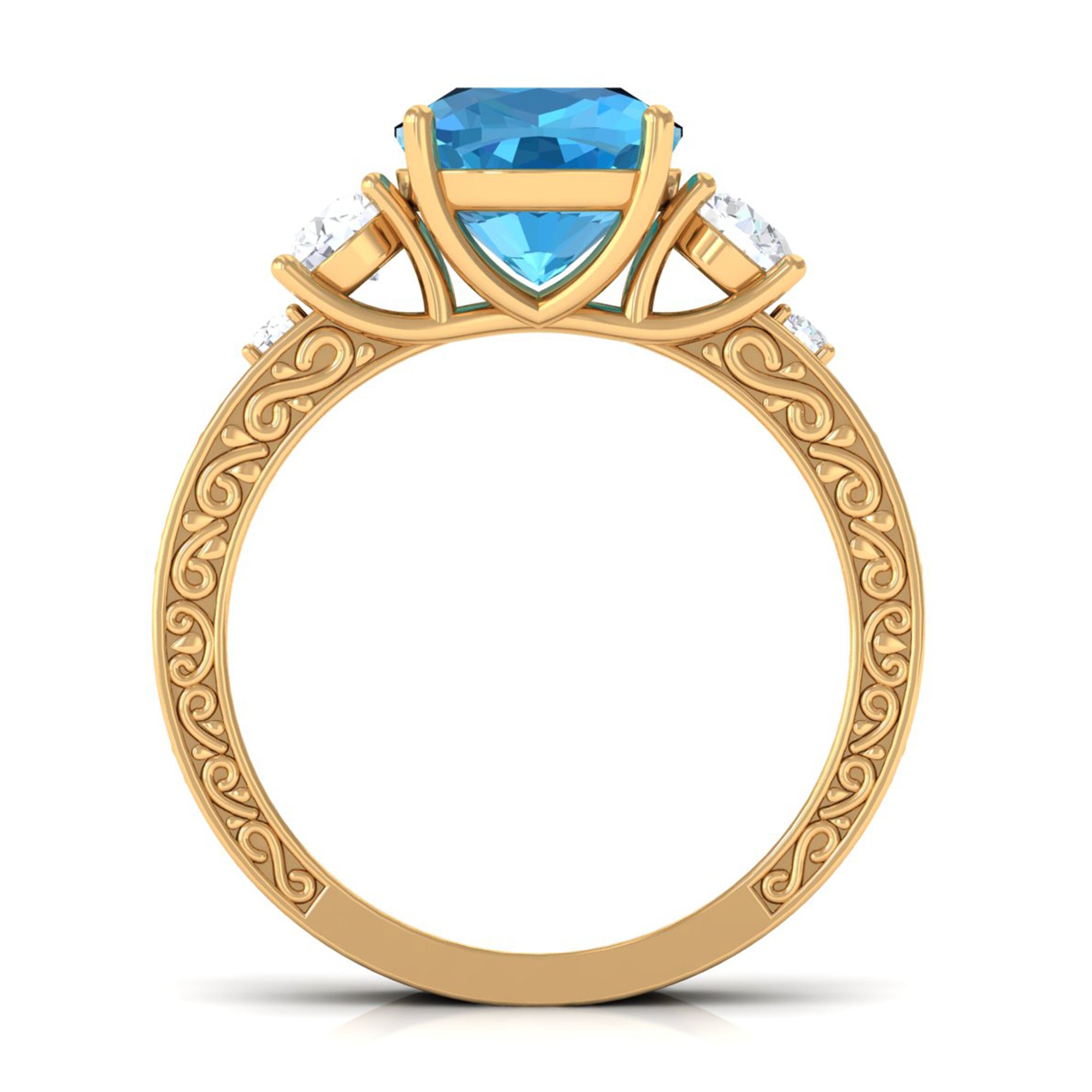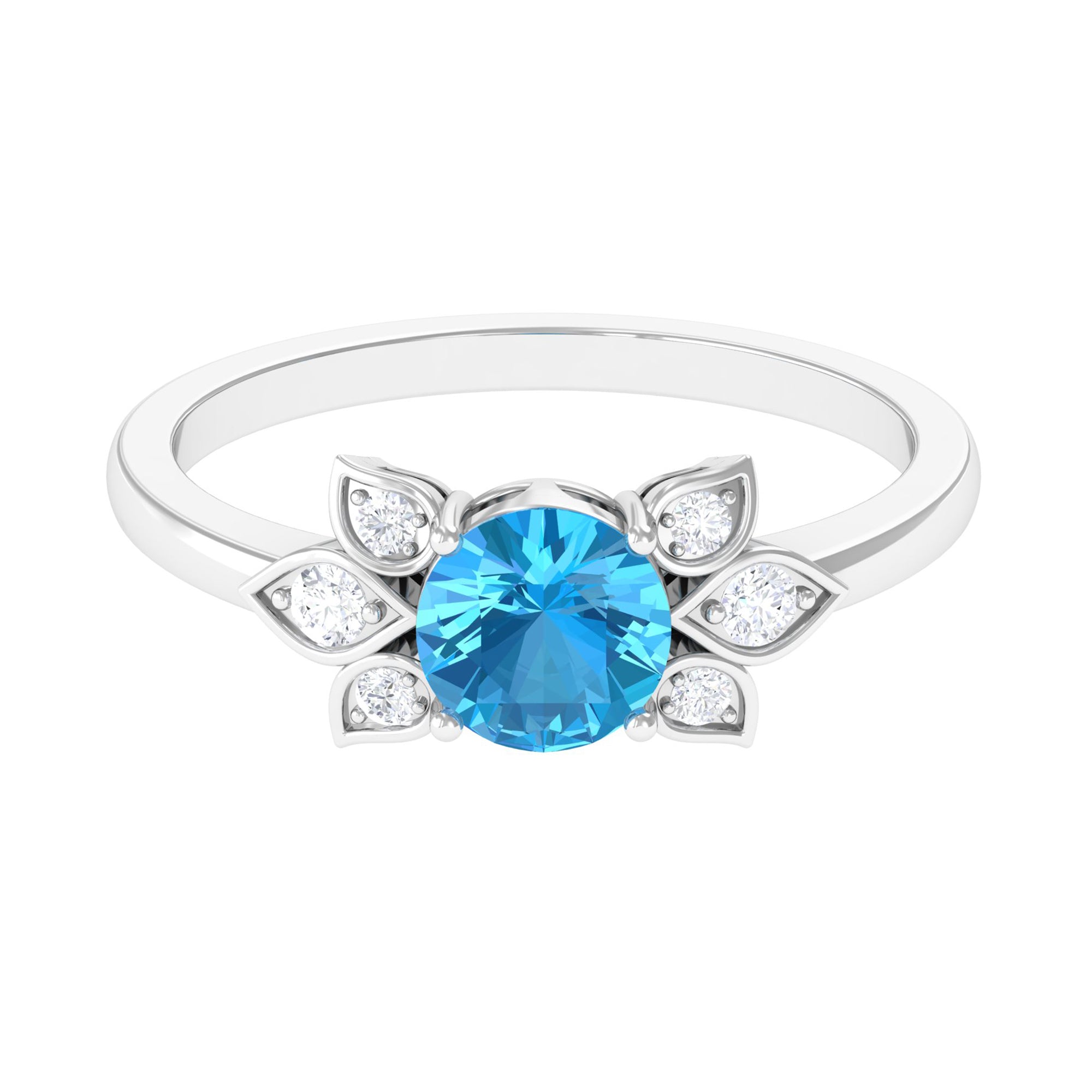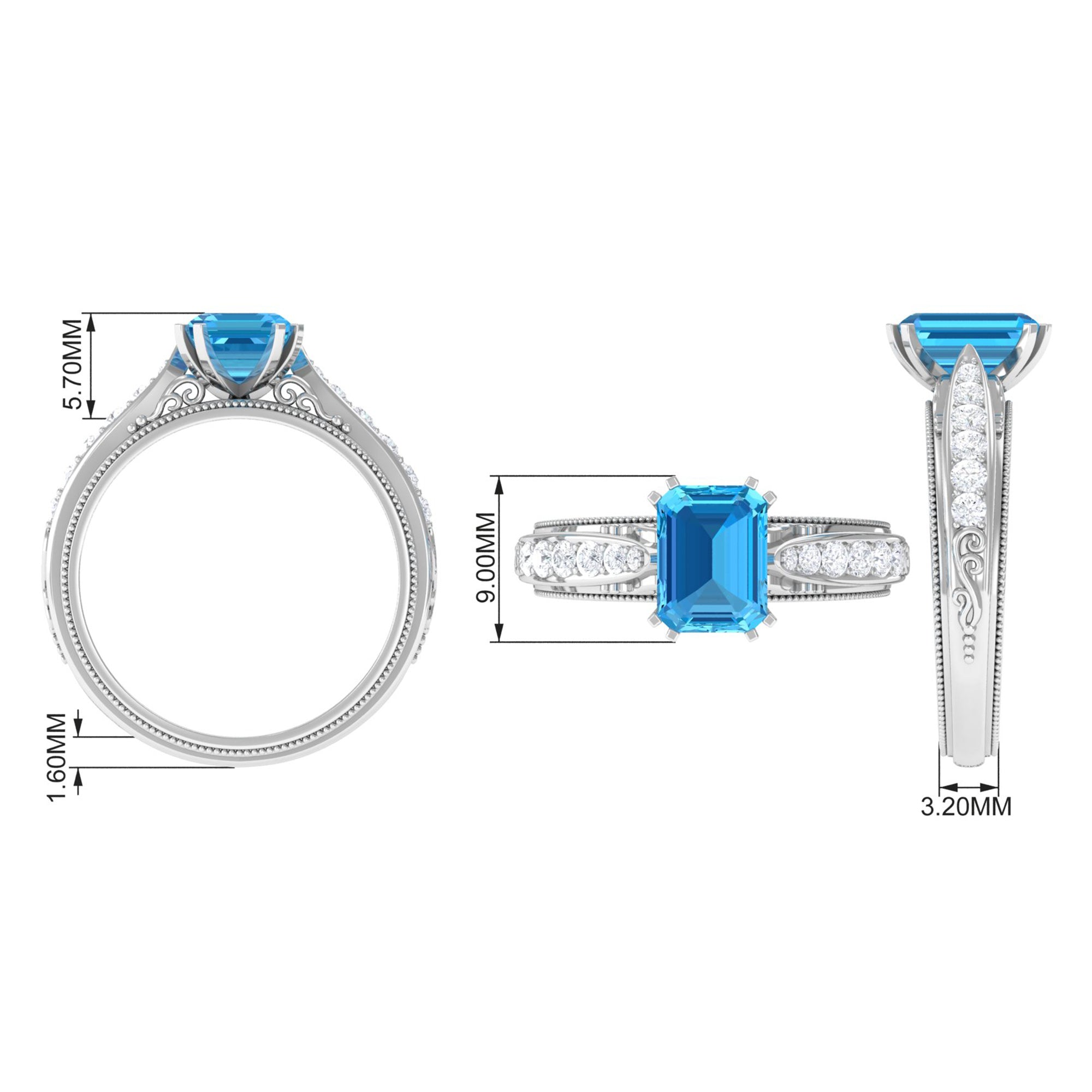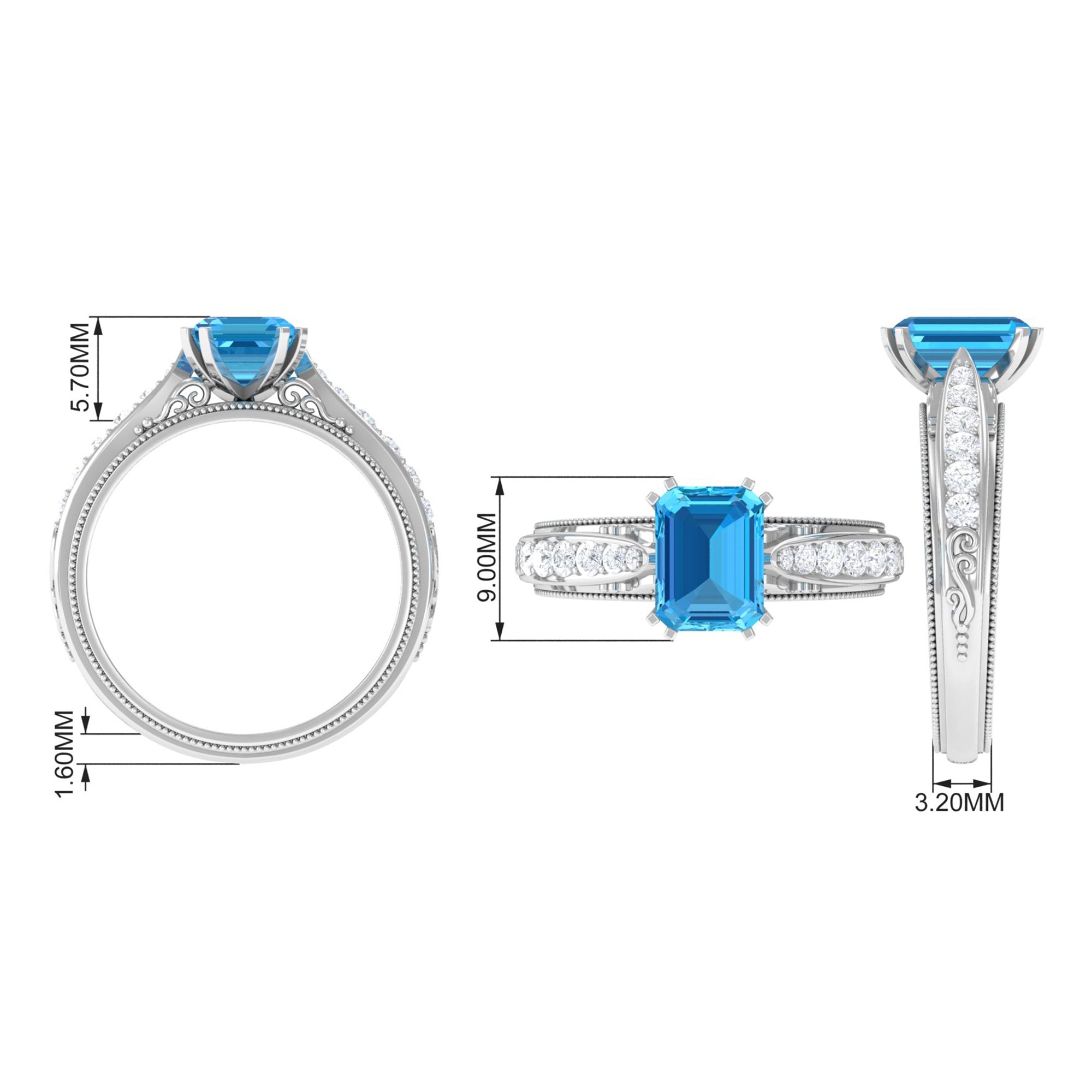 Treasured as one of the most flashy and flamboyant ring styles out there, a Swiss Blue Topaz Cocktail Ring is adorned by an enormous center stone of Swiss Blue Topaz. It is further beautified by eye-striking patterns of side-stones of Diamond/Moissanite under floral, antique, or any other statement-making design.