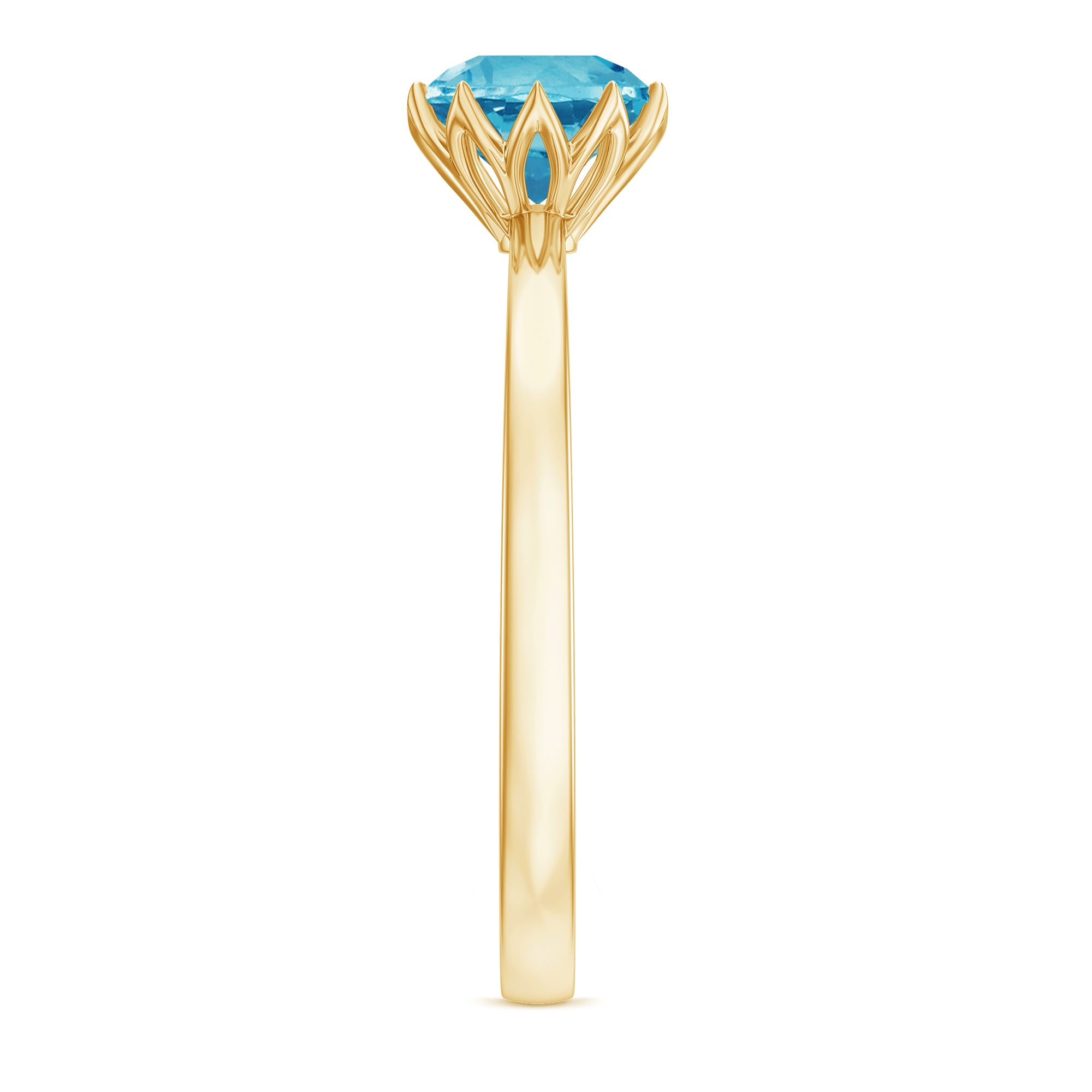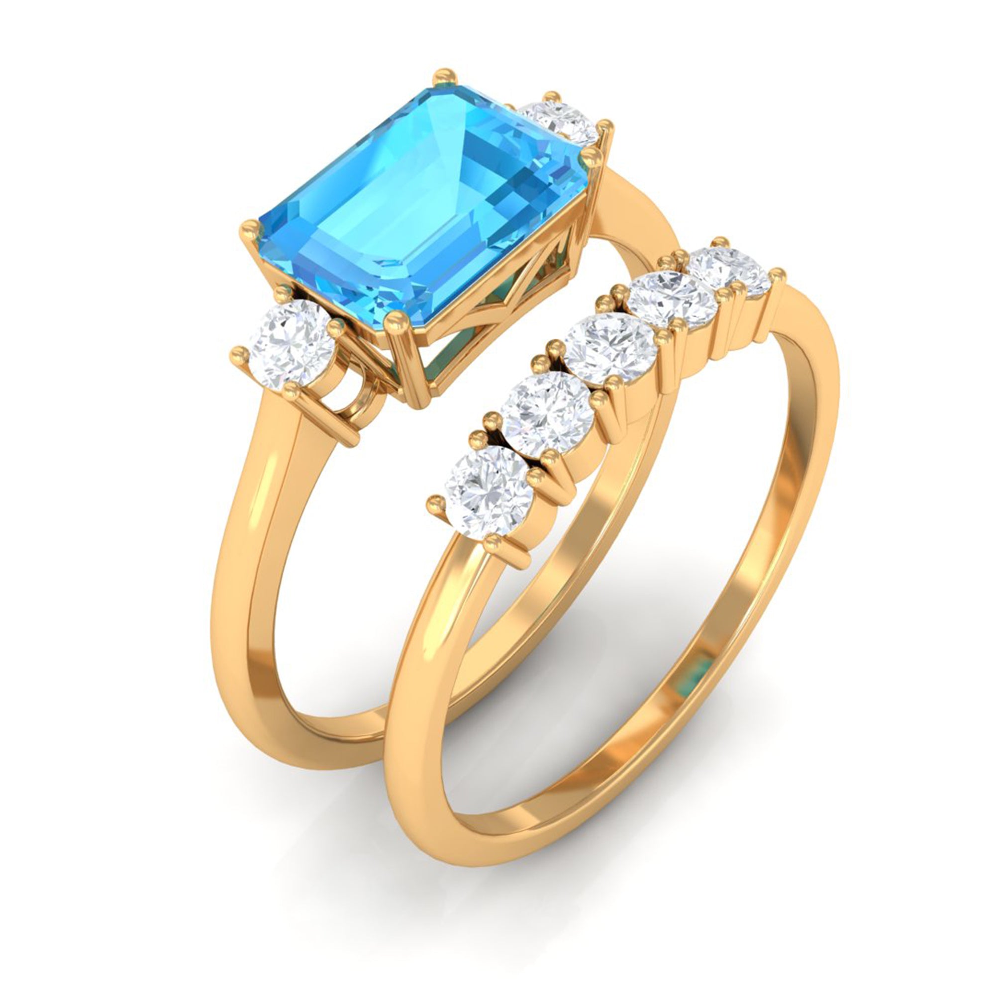 This Wedding Ring is bejeweled by Swiss Blue Topaz all over the band. It could be a classic band that is meant to fit with your Swiss Blue Topaz Engagement Ring or be more ornate by featuring a floating halo, old-world designs, or even a triple-row band. Thanks to its conventional aesthetics, a Yellow Gold Swiss Blue Topaz Ring is considered most appealing in this category. Symbolically, it commemorates the lifelong union of two souls as one and is thus, exchanged along with the wedding vows.