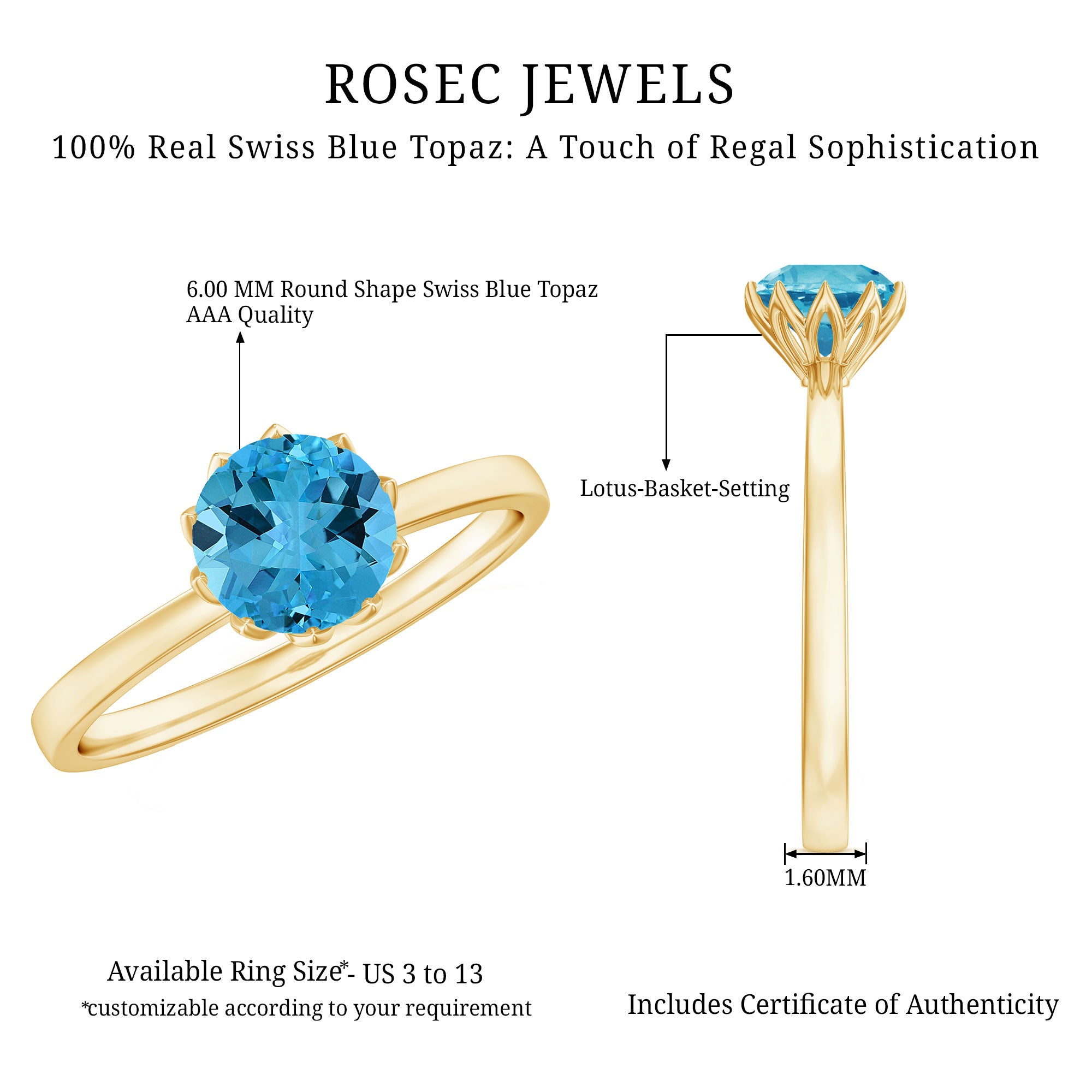 Wearing a Swiss Blue Topaz Ring is often believed to signify loyalty, true love, clear-sightedness, and righteousness. True to its serene hue, it works miraculously for enhancing creativity, honesty, and clarity of feelings. And interestingly, Blue Topaz is considered a wonderful gemstone for expressing love which makes a Swiss Blue Topaz Engagement Ring such a meaningful pick.