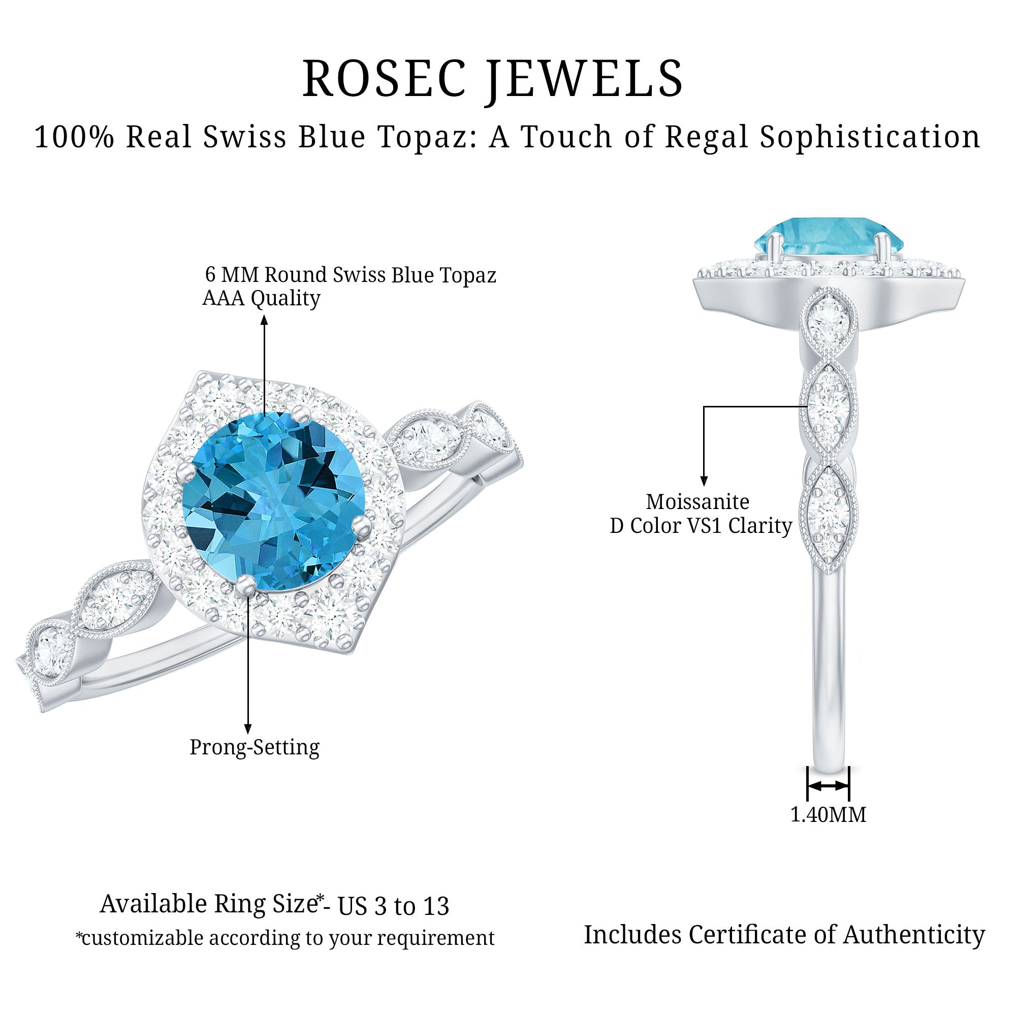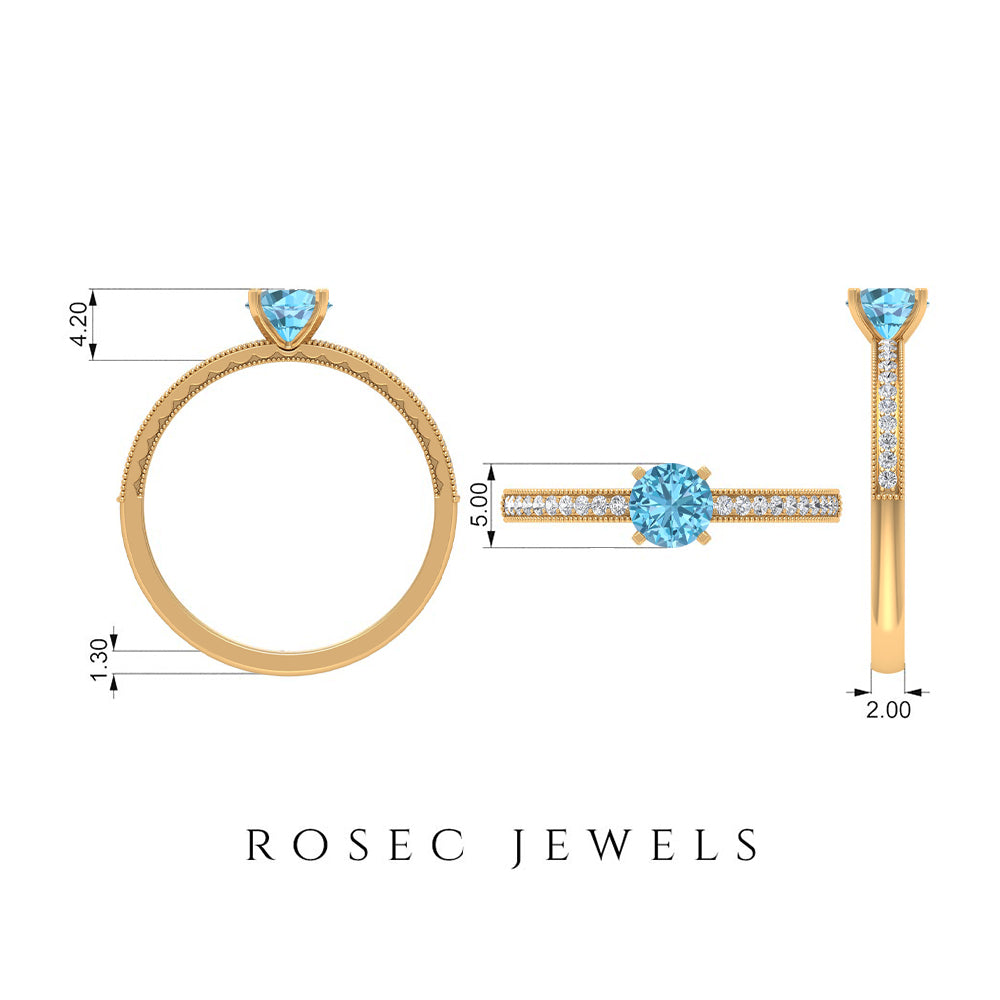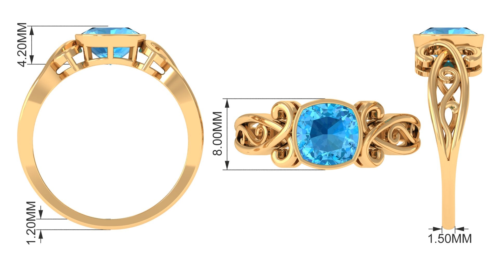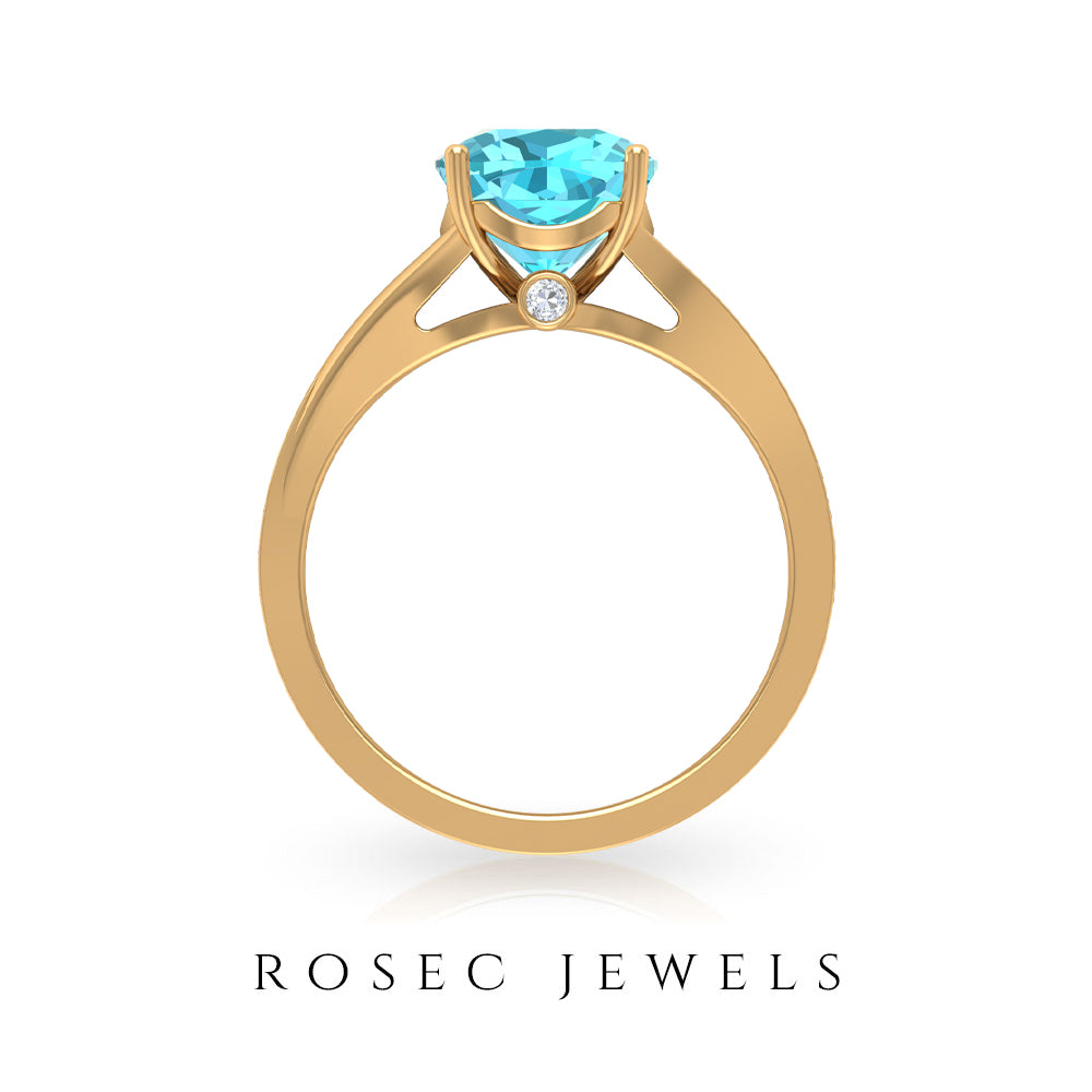 Wearing a Swiss Blue Topaz Ring is often believed to signify loyalty, true love, clear-sightedness, and righteousness. True to its serene hue, it works miraculously for enhancing creativity, honesty, and clarity of feelings. And interestingly, Blue Topaz is considered a wonderful gemstone for expressing love which makes a Swiss Blue Topaz Engagement Ring such a meaningful pick.