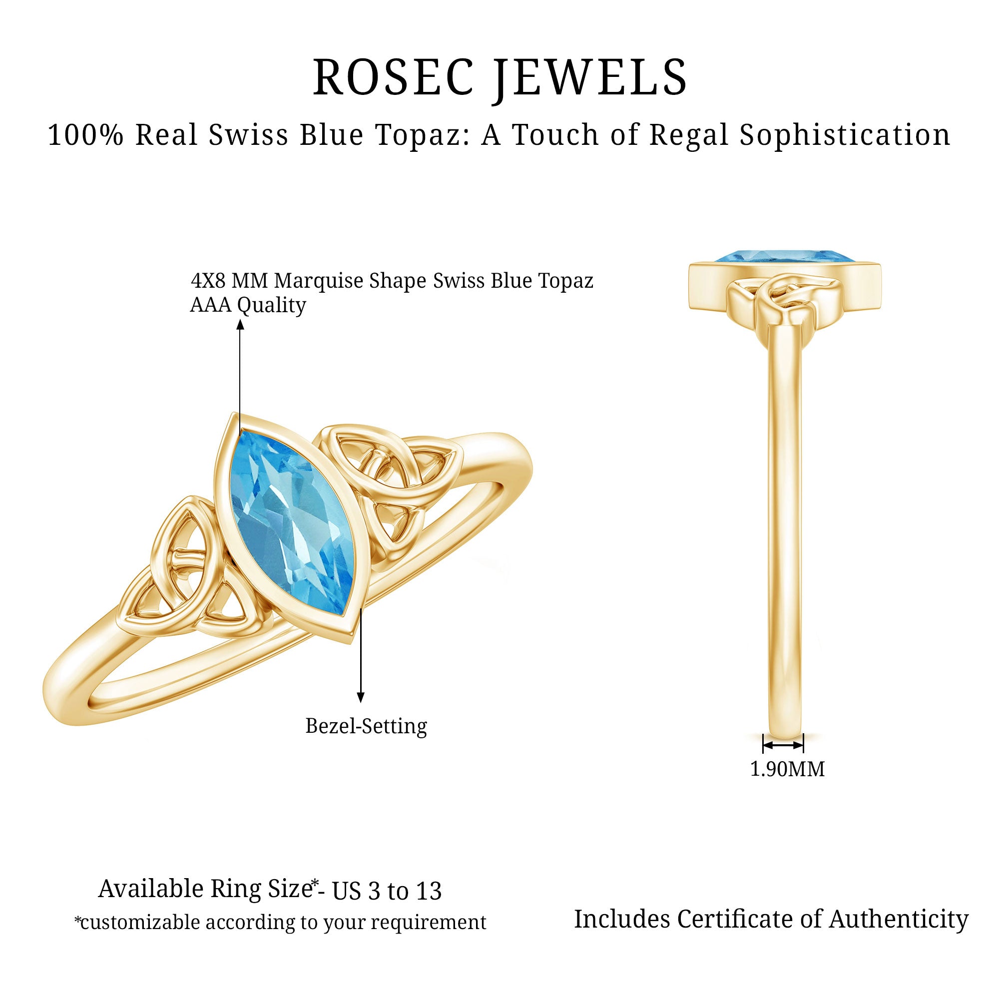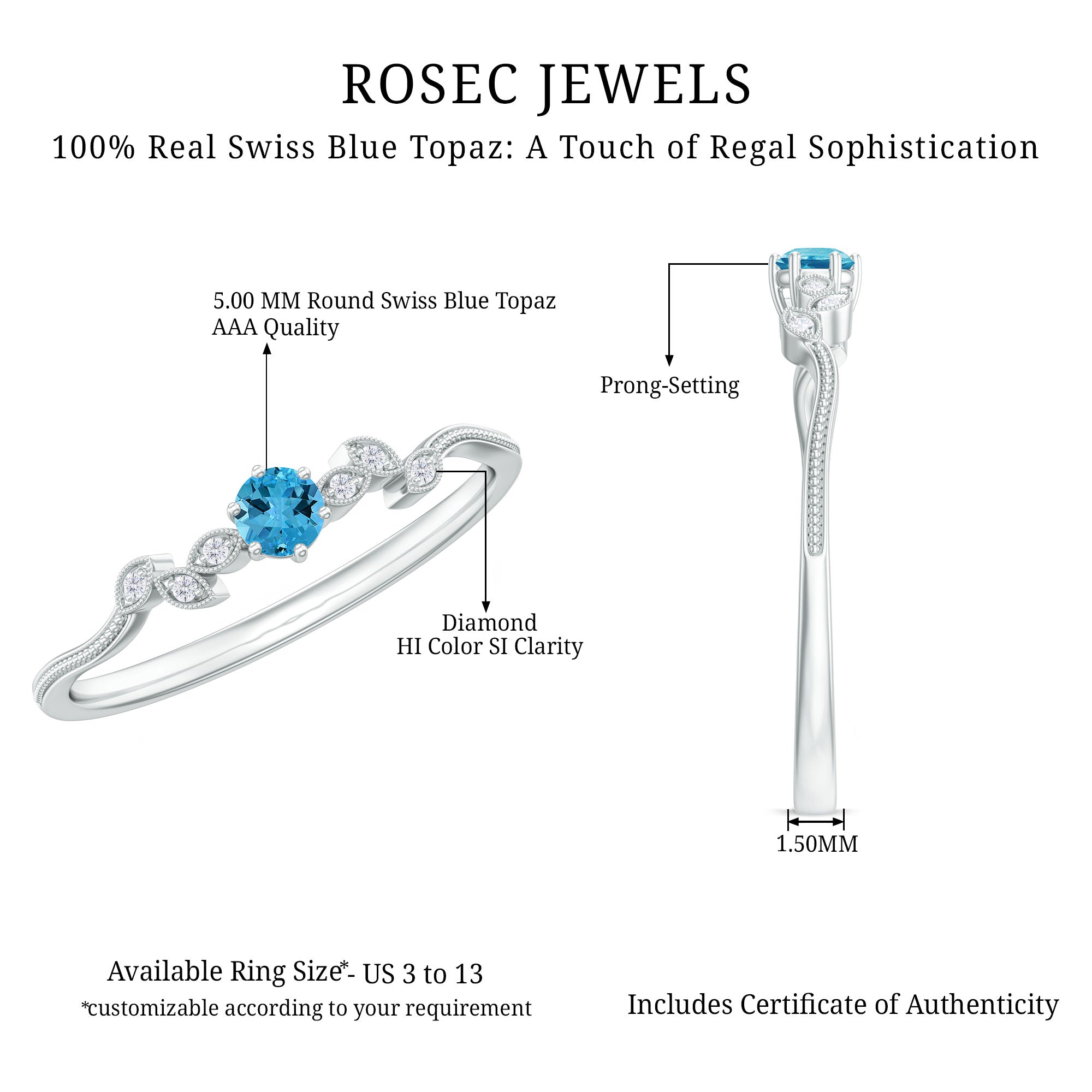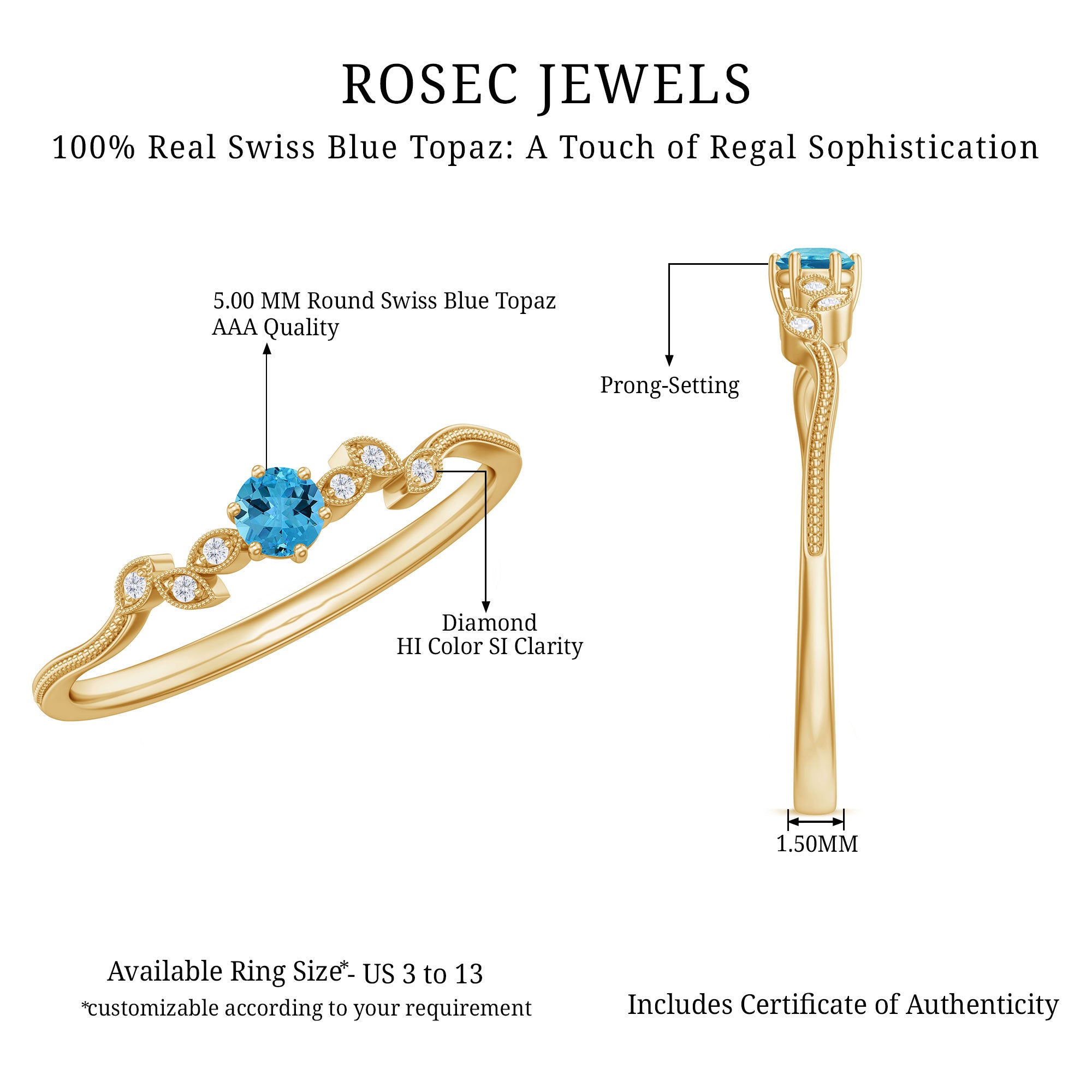 Wearing a Swiss Blue Topaz Ring is often believed to signify loyalty, true love, clear-sightedness, and righteousness. True to its serene hue, it works miraculously for enhancing creativity, honesty, and clarity of feelings. And interestingly, Blue Topaz is considered a wonderful gemstone for expressing love which makes a Swiss Blue Topaz Engagement Ring such a meaningful pick.