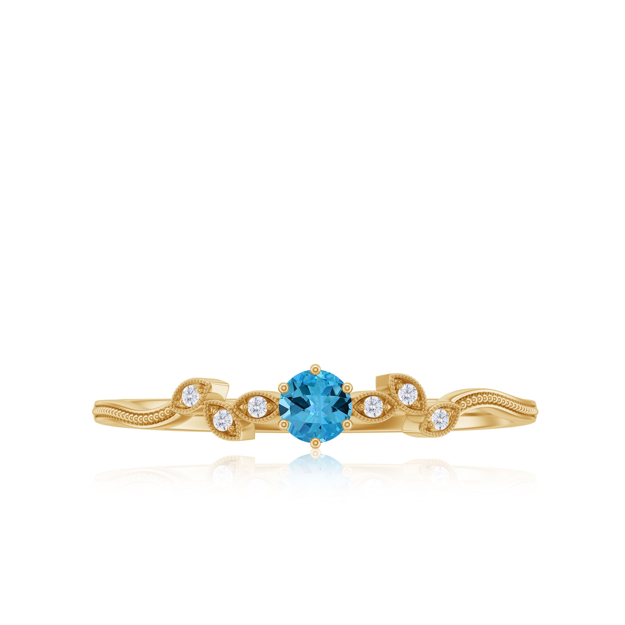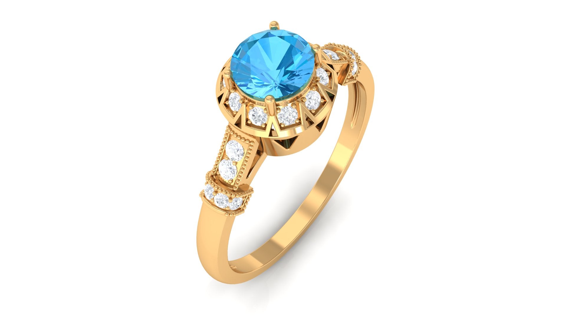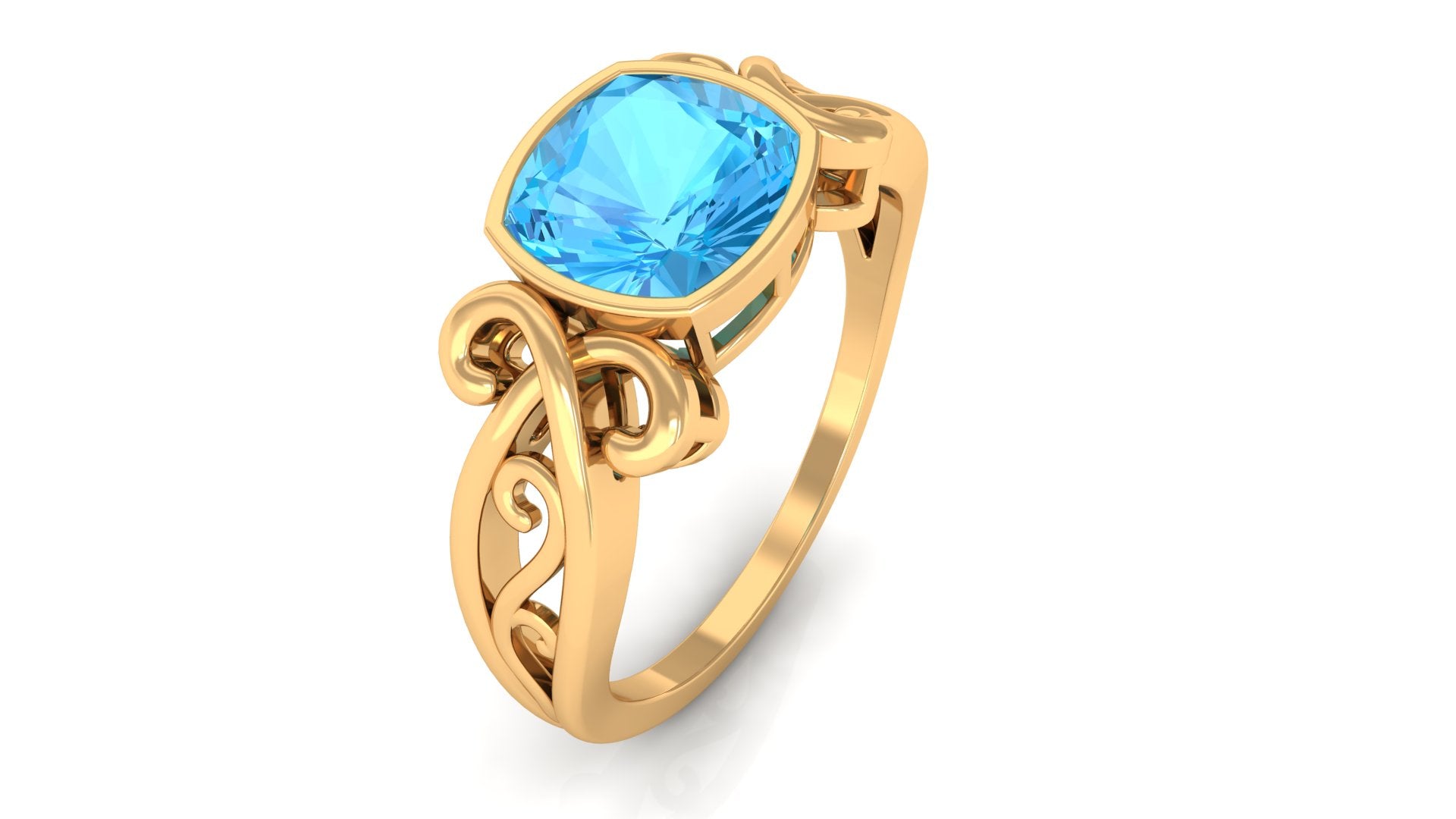 A Vintage Swiss Blue Topaz Ring is reminiscent of the iconic styles that were popular back in the art-forward Edwardian, Victorian, and Art Deco Eras. It features ornate designs that breathe life into abstract patterns, heavy migraine and filigree detailing, and other retro engravings. Needless to mention, it makes your Swiss Blue Topaz Ring look nothing short of a wearable piece of art.