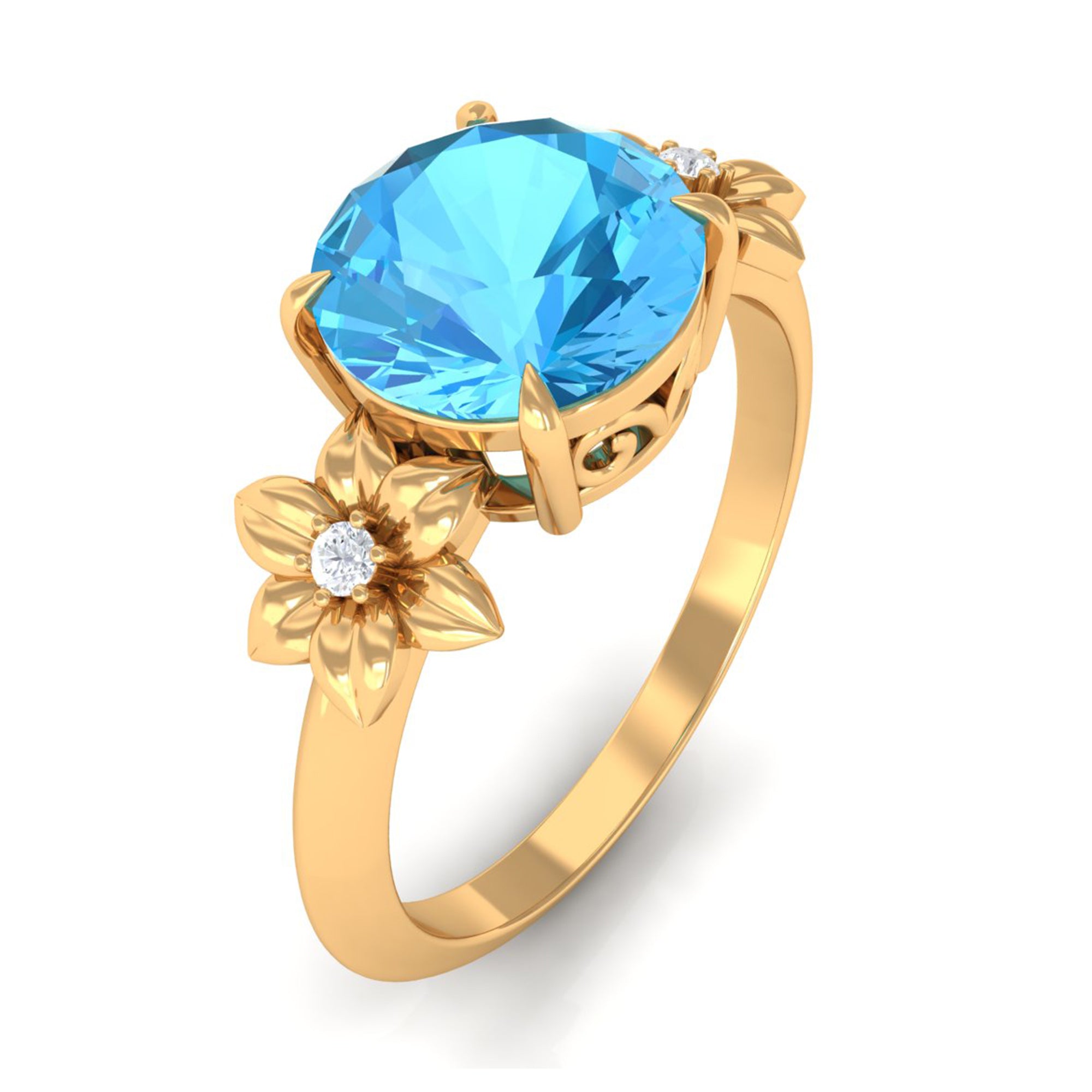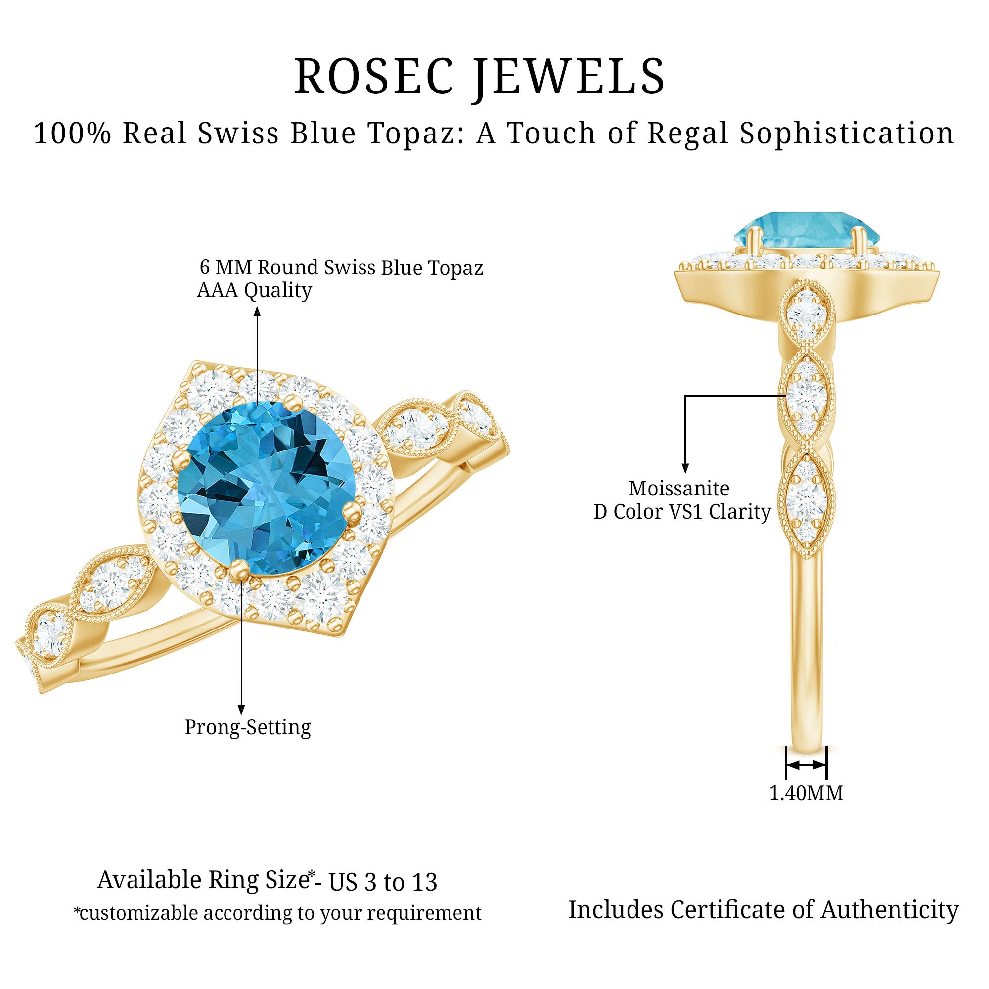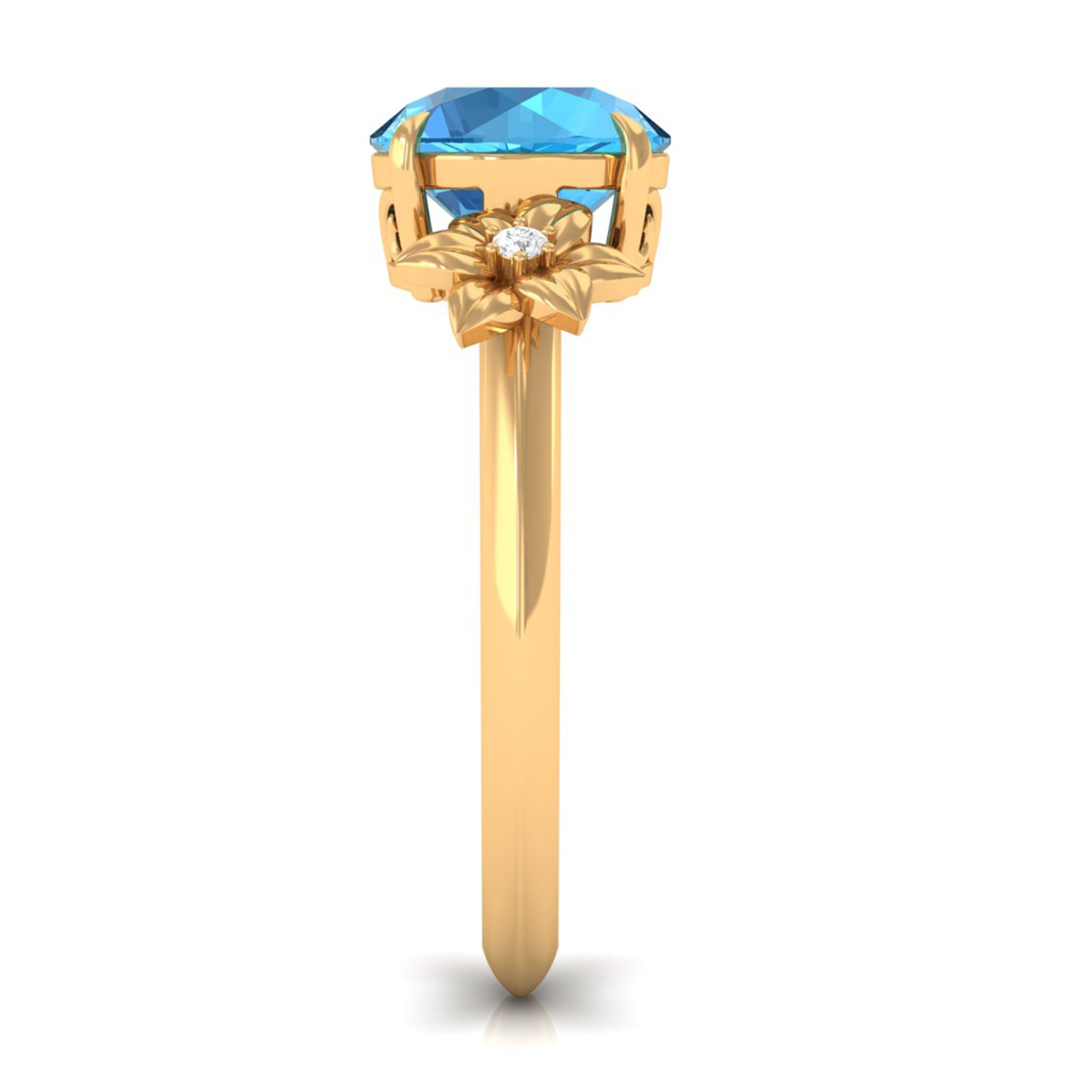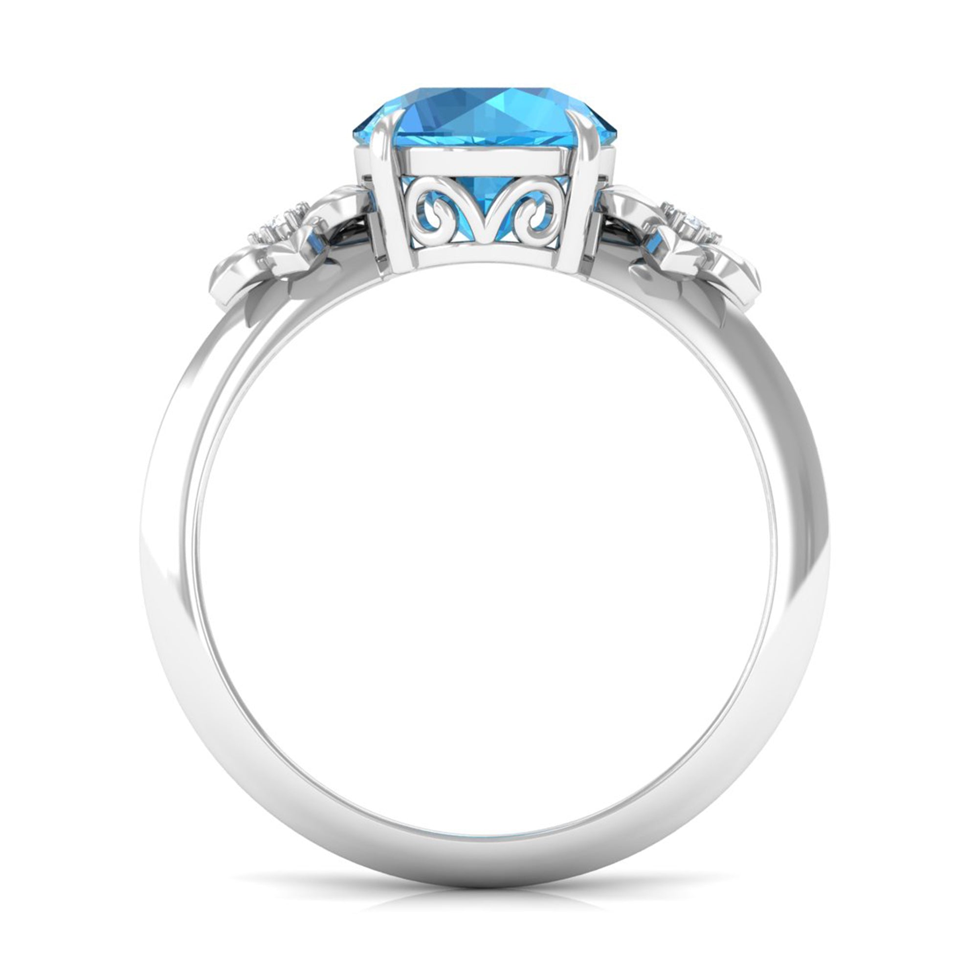 Treasured as one of the most flashy and flamboyant ring styles out there, a Swiss Blue Topaz Cocktail Ring is adorned by an enormous center stone of Swiss Blue Topaz. It is further beautified by eye-striking patterns of side-stones of Diamond/Moissanite under floral, antique, or any other statement-making design.