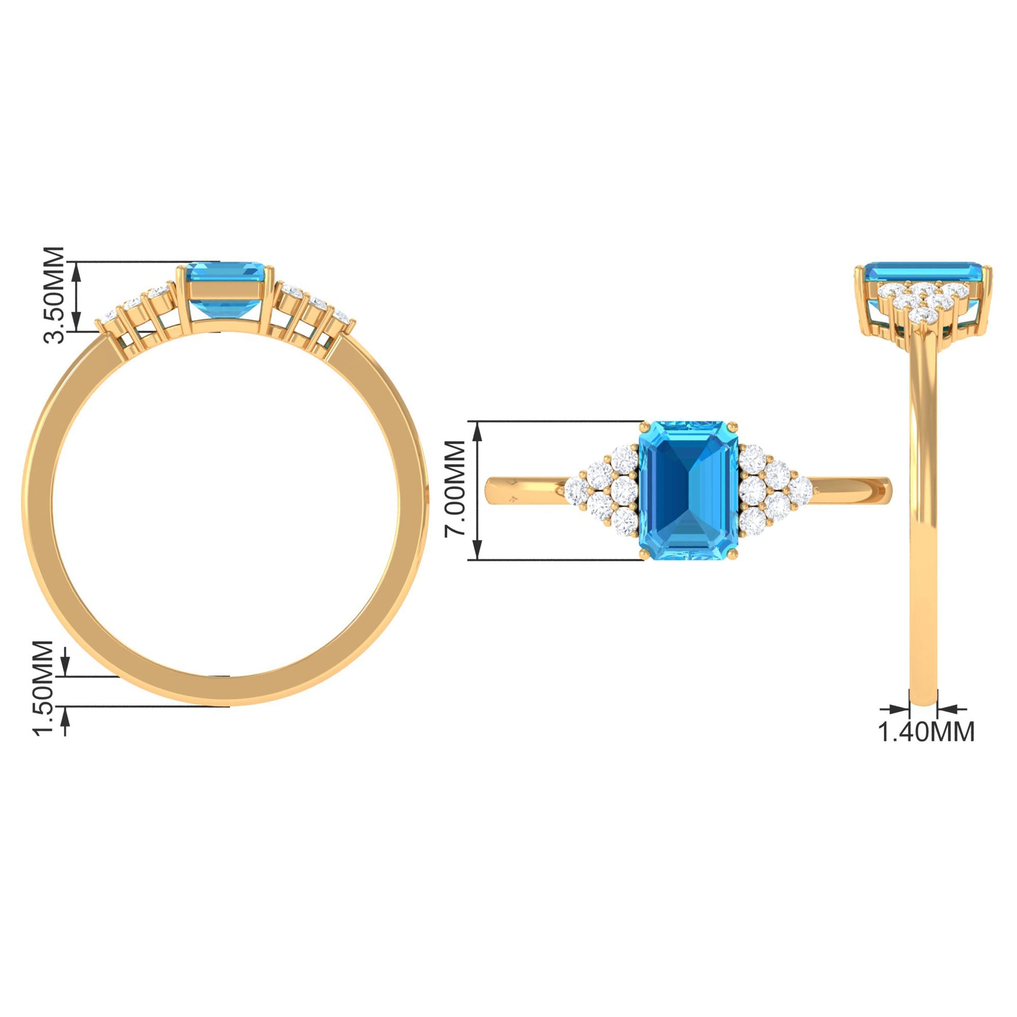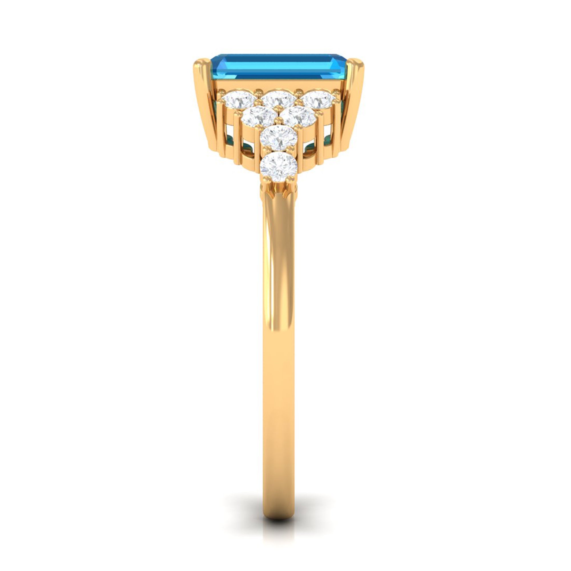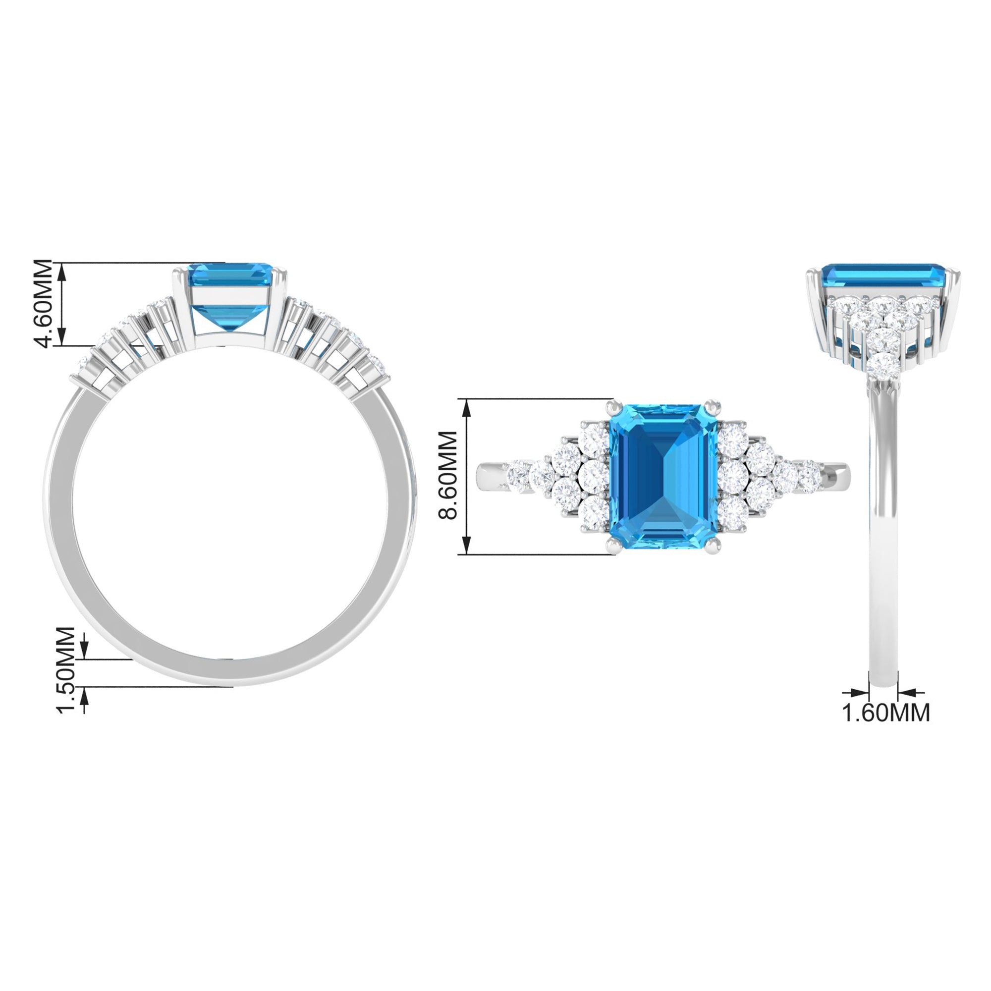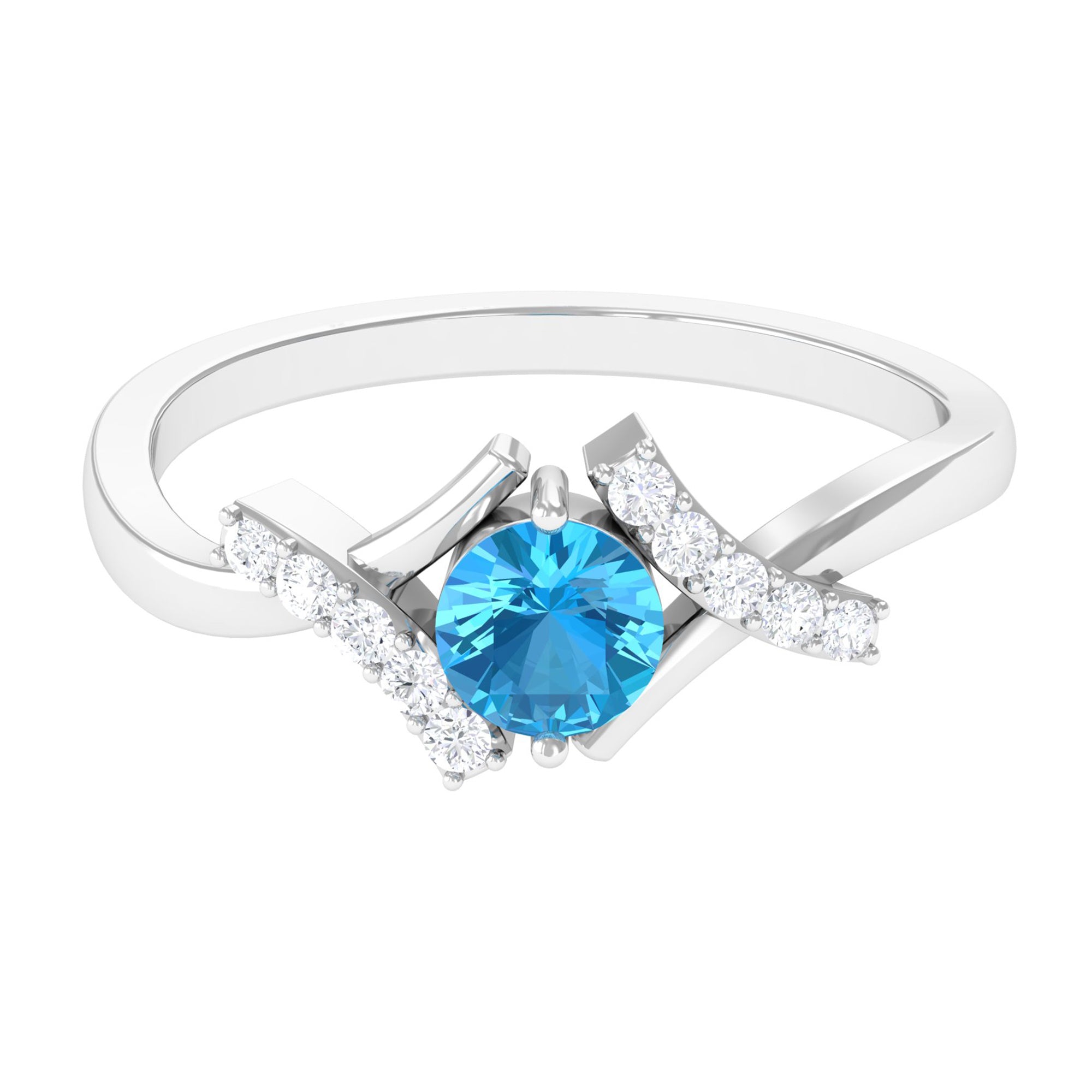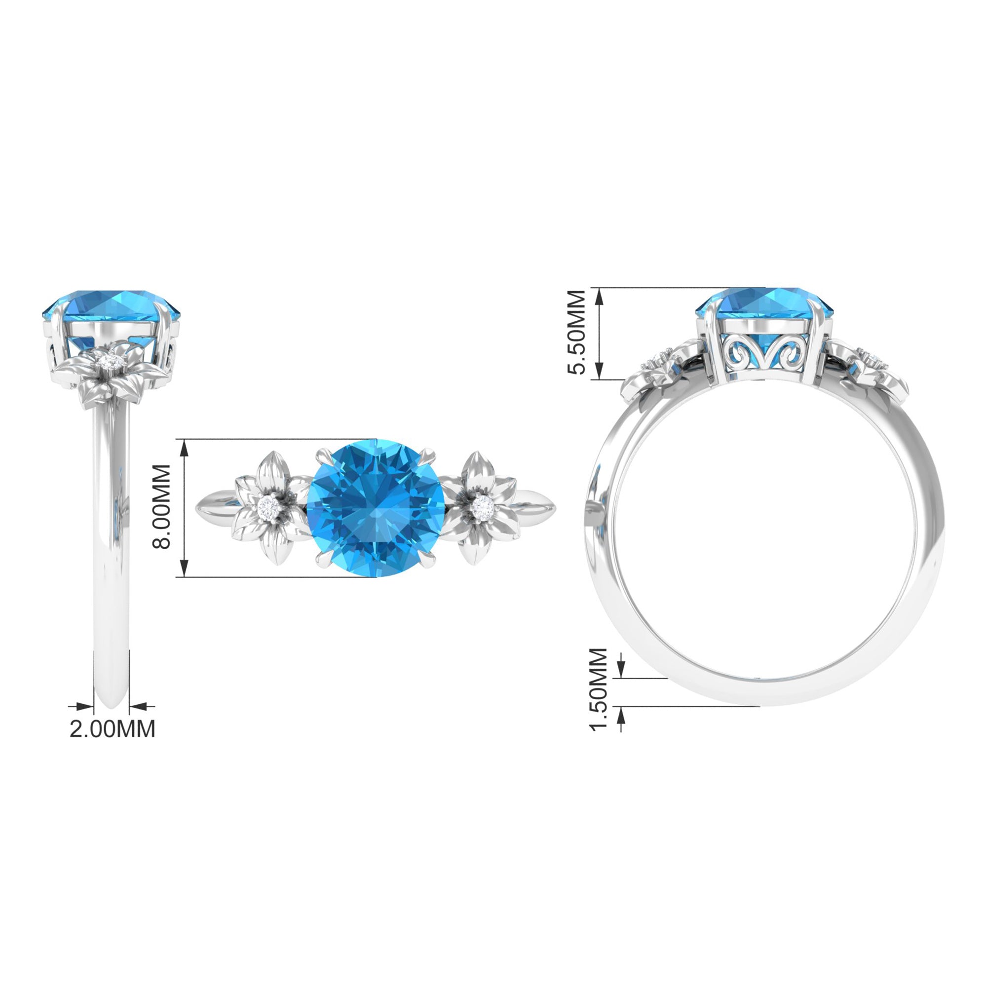 Treasured as one of the most flashy and flamboyant ring styles out there, a Swiss Blue Topaz Cocktail Ring is adorned by an enormous center stone of Swiss Blue Topaz. It is further beautified by eye-striking patterns of side-stones of Diamond/Moissanite under floral, antique, or any other statement-making design.