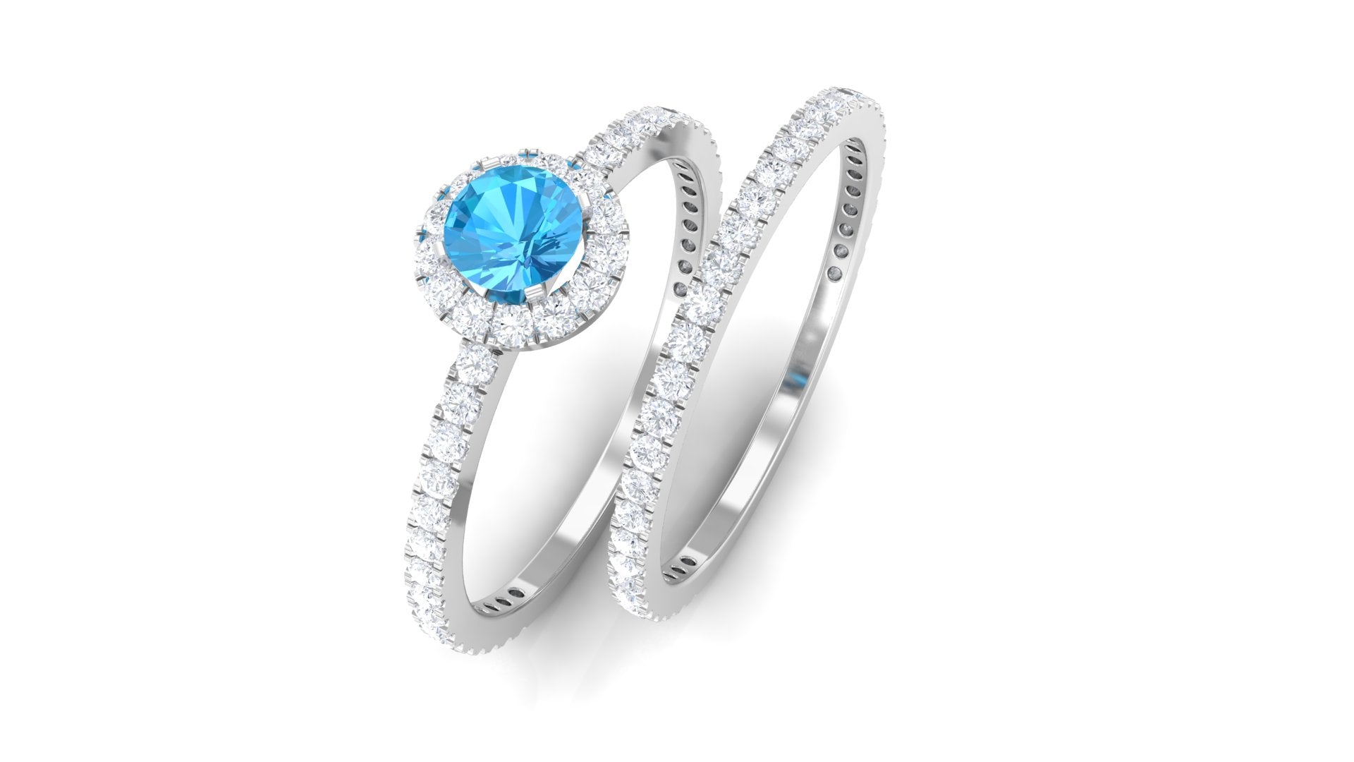 A Swiss Blue Topaz Eternity Ring is adorned with an endless row of Swiss Blue Topaz all over the band (i.e., eternity). The Swiss Blue Topaz here takes all the center stage that it wants. It makes for the most classic yet versatile ring styles out there that you can easily stack with your favorite rings. It is meant to reflect the kind of bond that is meant to last a lifetime, which makes it a highly treasured Swiss Blue Topaz Wedding Ring.