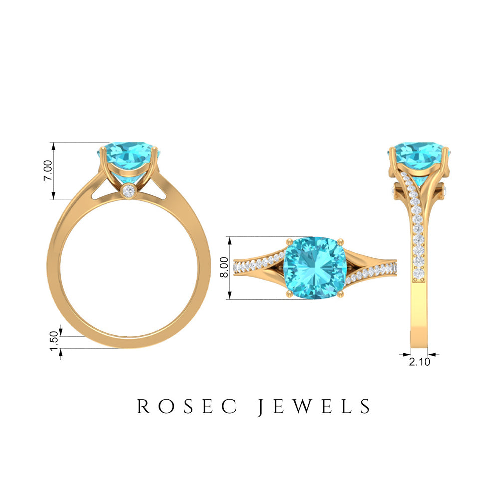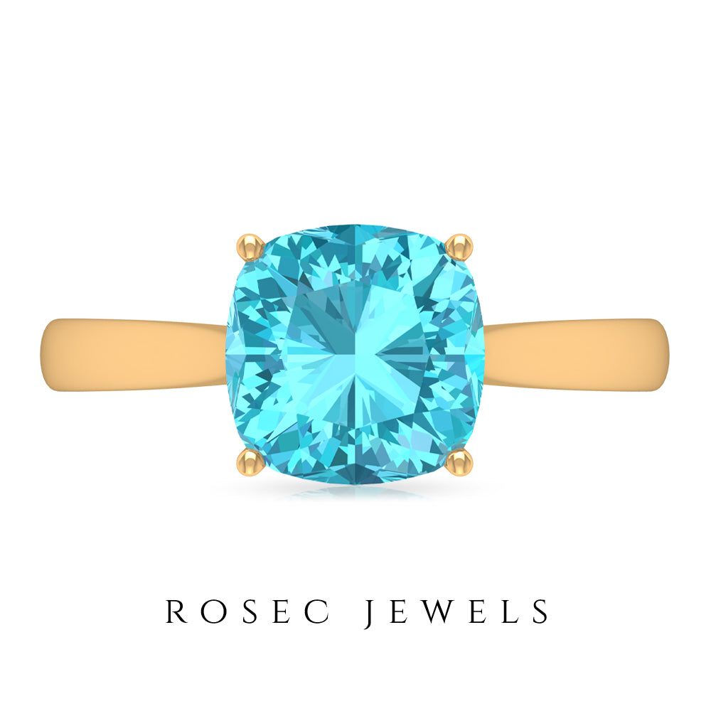 Apart from that, make sure to store it away from any harder gemstones that hold the potential of scratching it. Remember, products loaded with harmful chemicals can cause substantial damage to your gemstone. So, whether you wear a white, rose, or yellow gold Swiss Blue Topaz Ring, make sure to put it off while applying makeup, before hopping in the shower, etc.