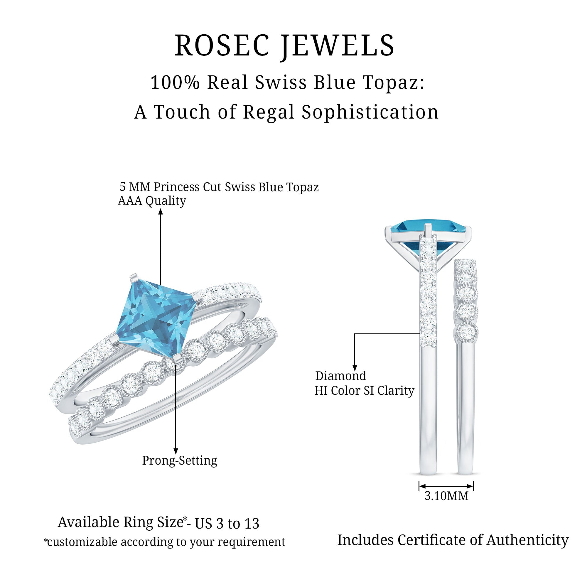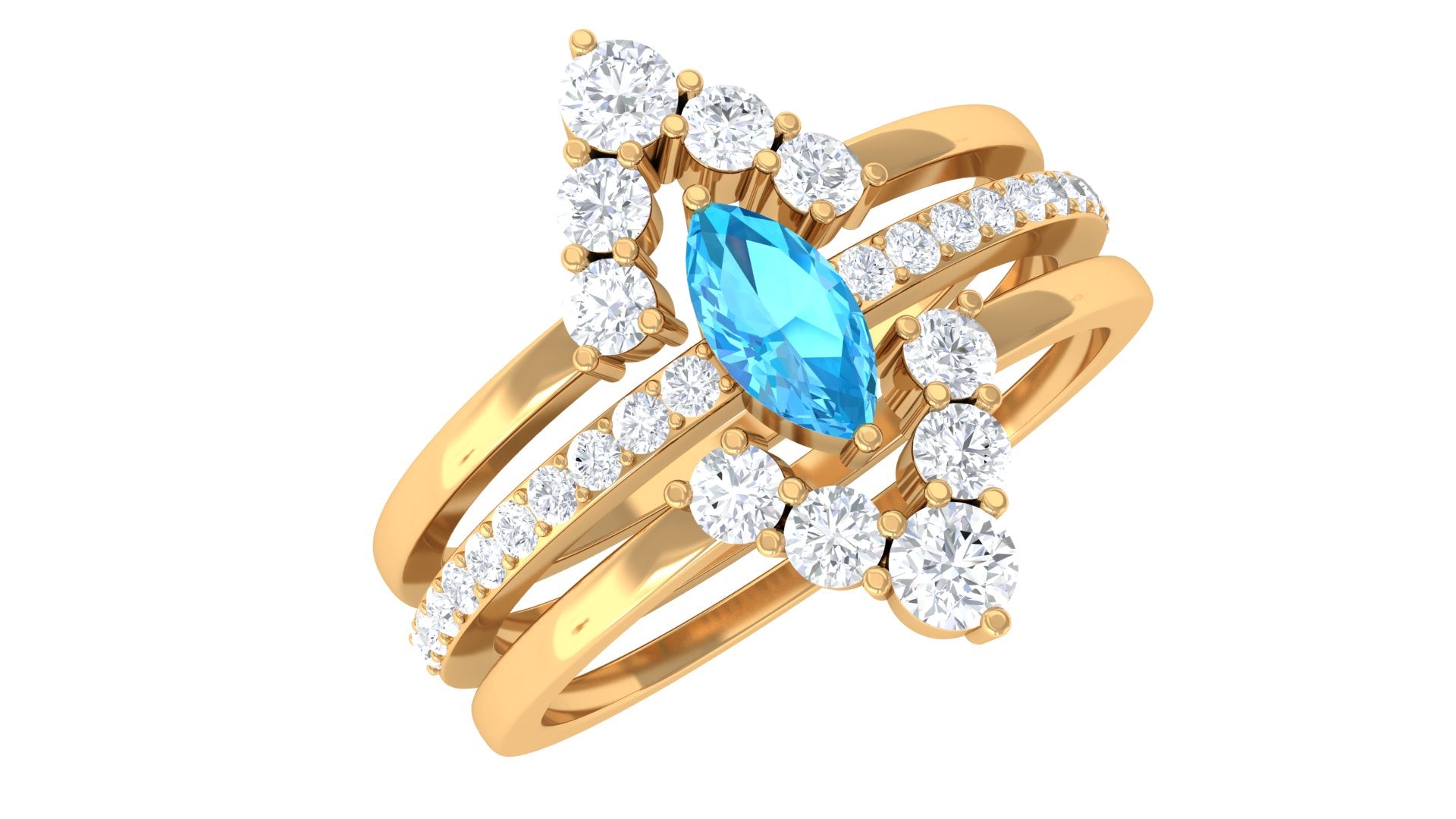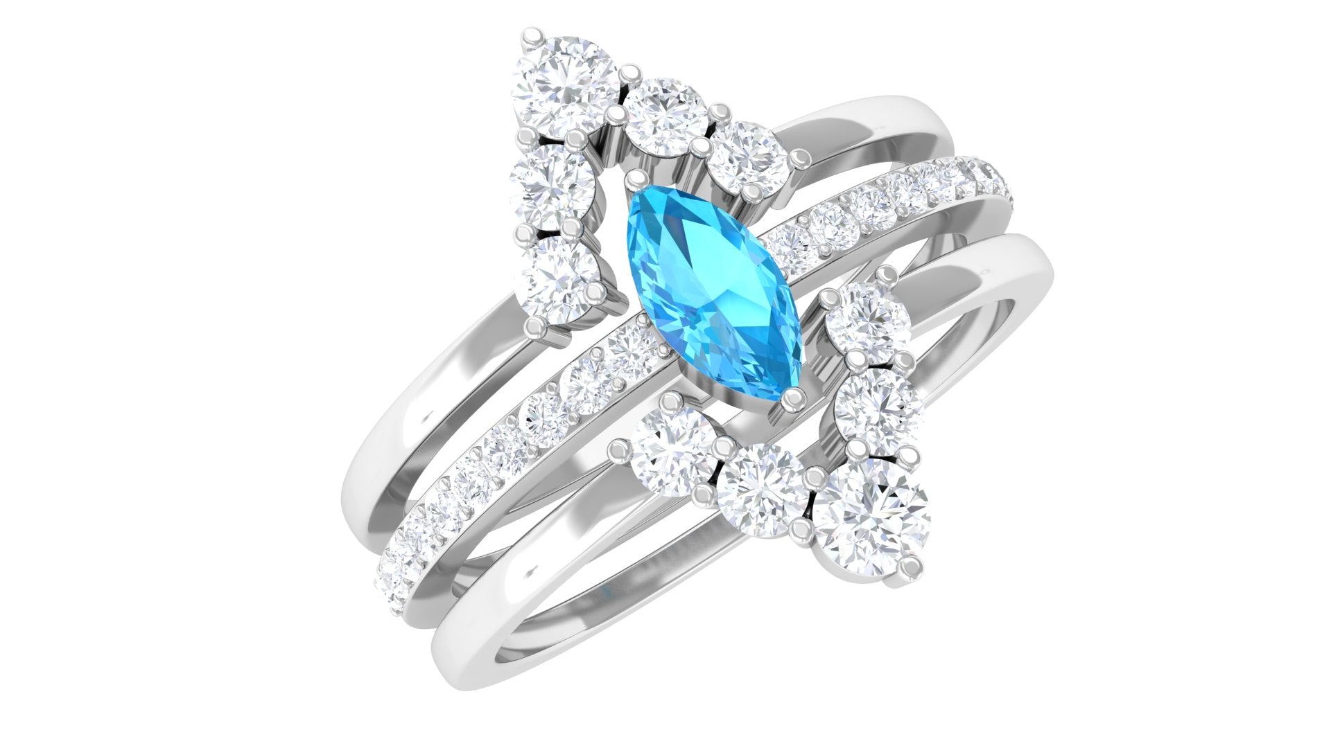 An amazing collection of Swiss blue topaz wedding rings for the love of your life. The bright blue colors of this silicate mineral are an utmost desirable characteristic for crafting charming wedding jewelry. The sparkling radiance of the Swiss blue topaz rings is owed to the fine craftsmanship of our artisans. We, at Rosec Jewels ensure that only after quality assurance, our Swiss topaz rings find their way into the lives of women with a taste for latest jewelry trends.