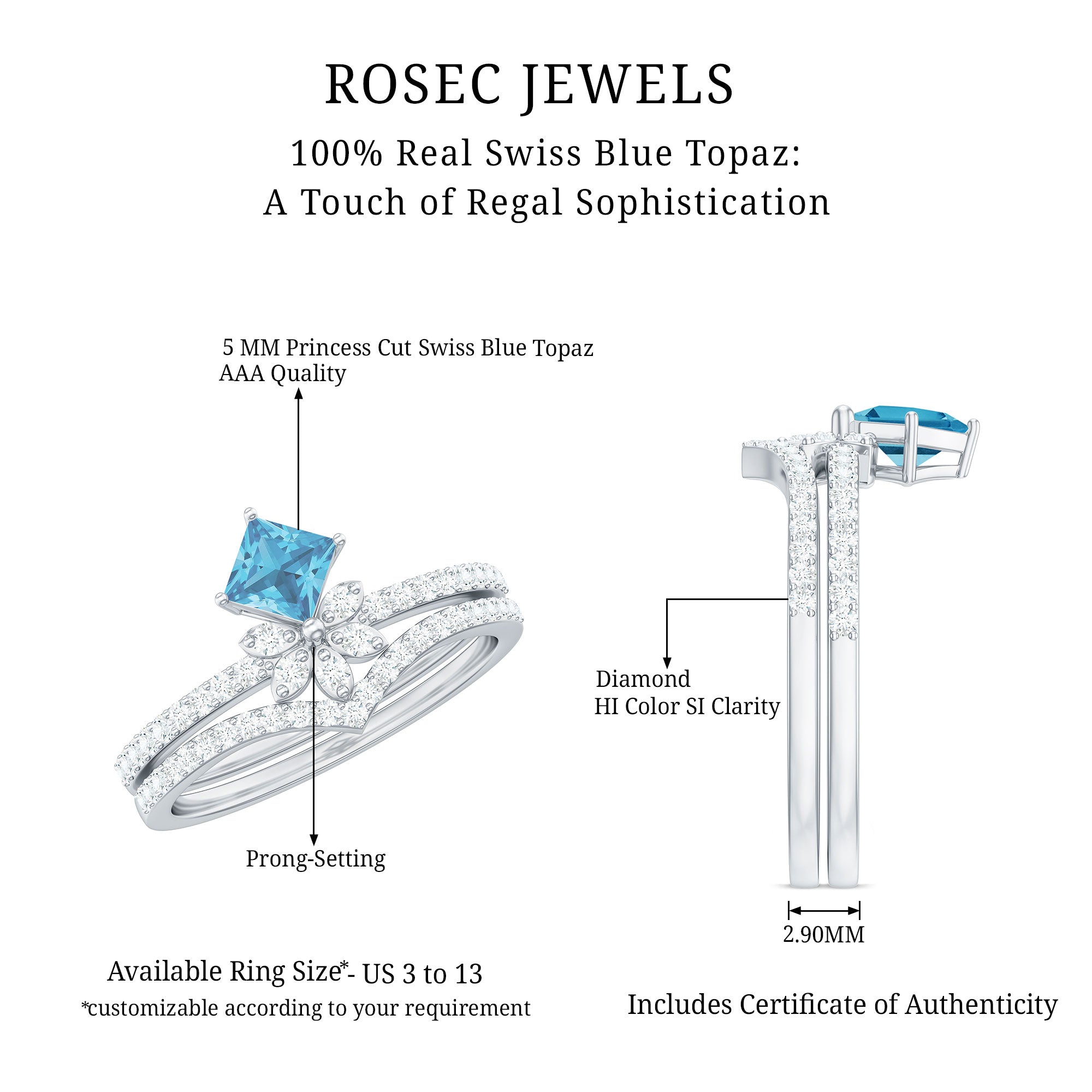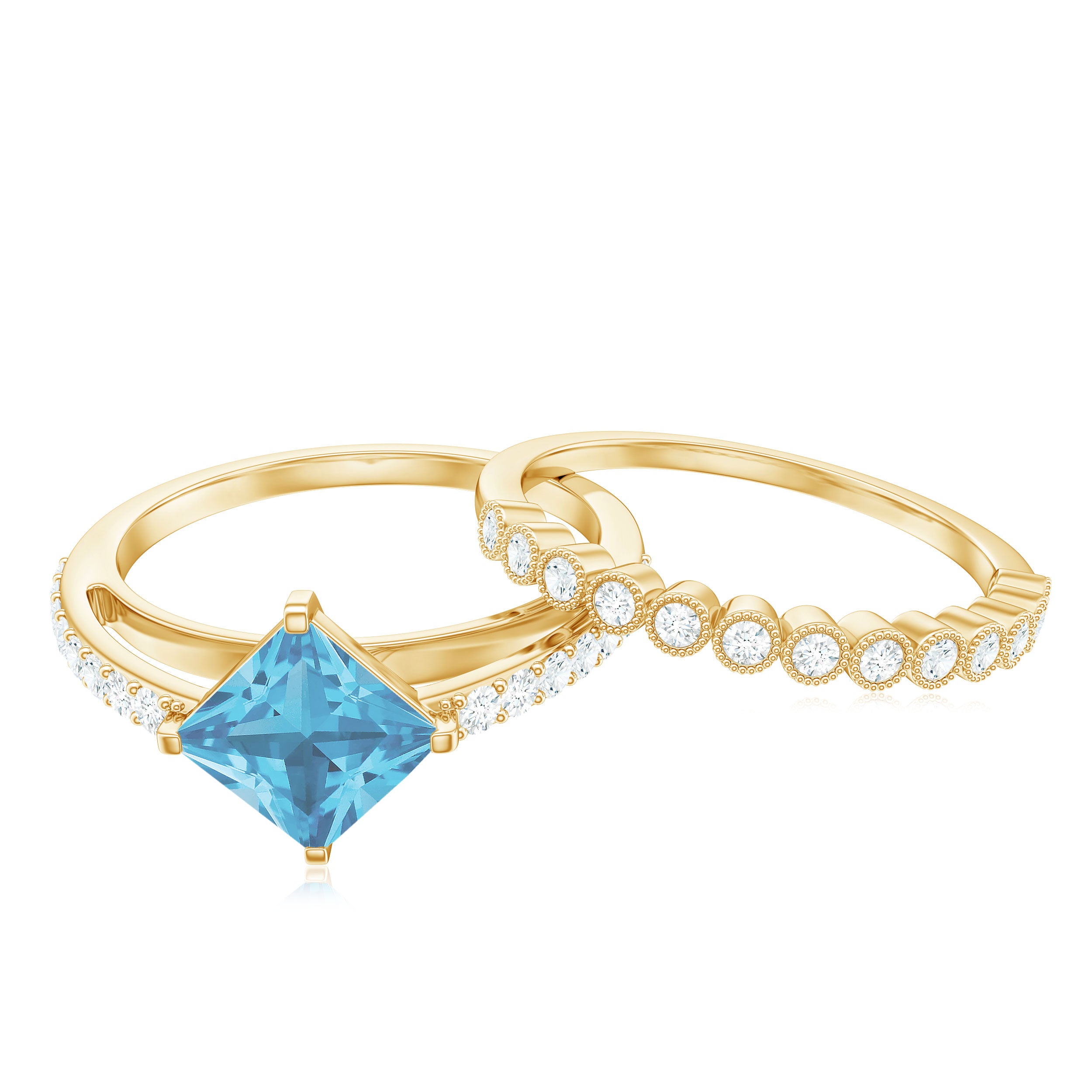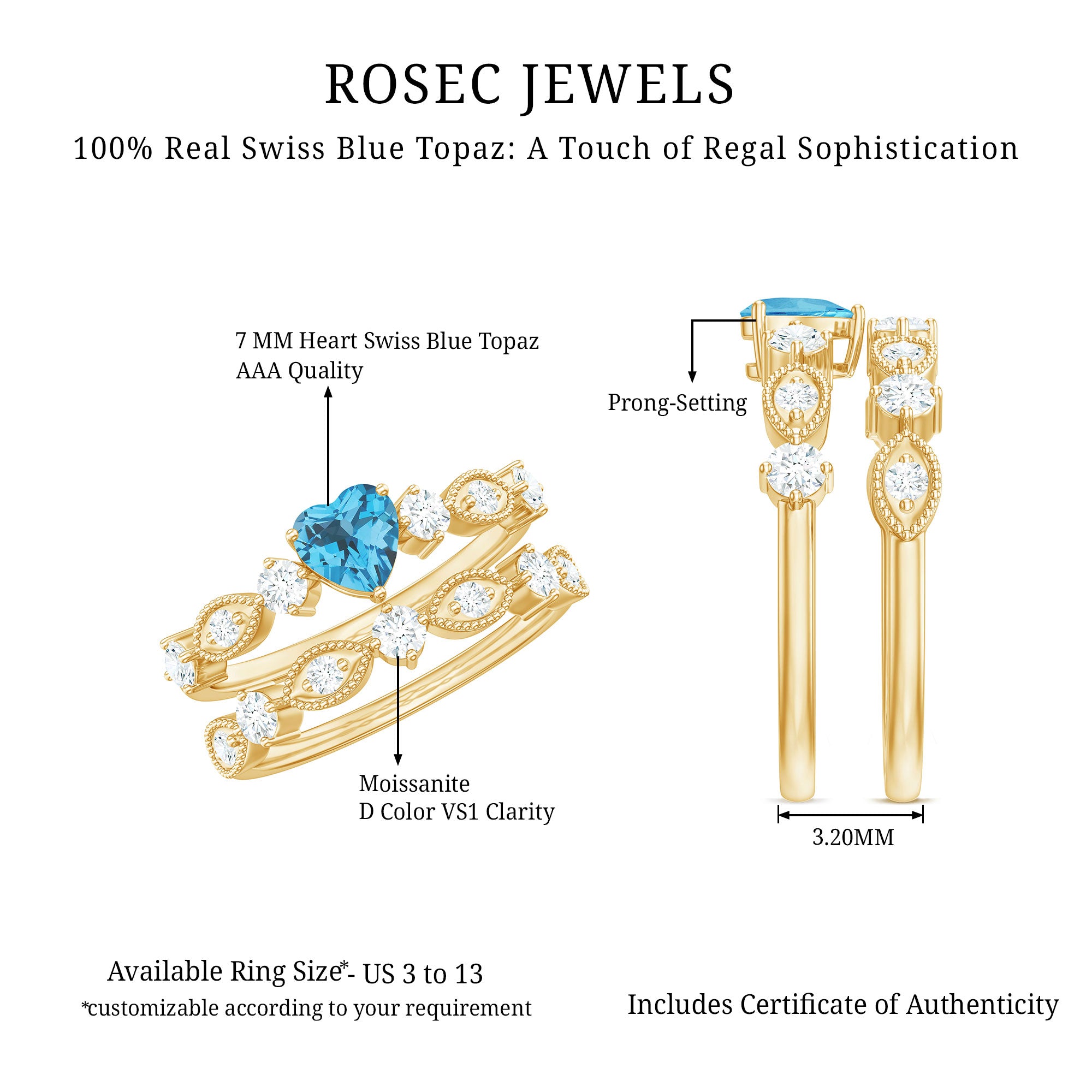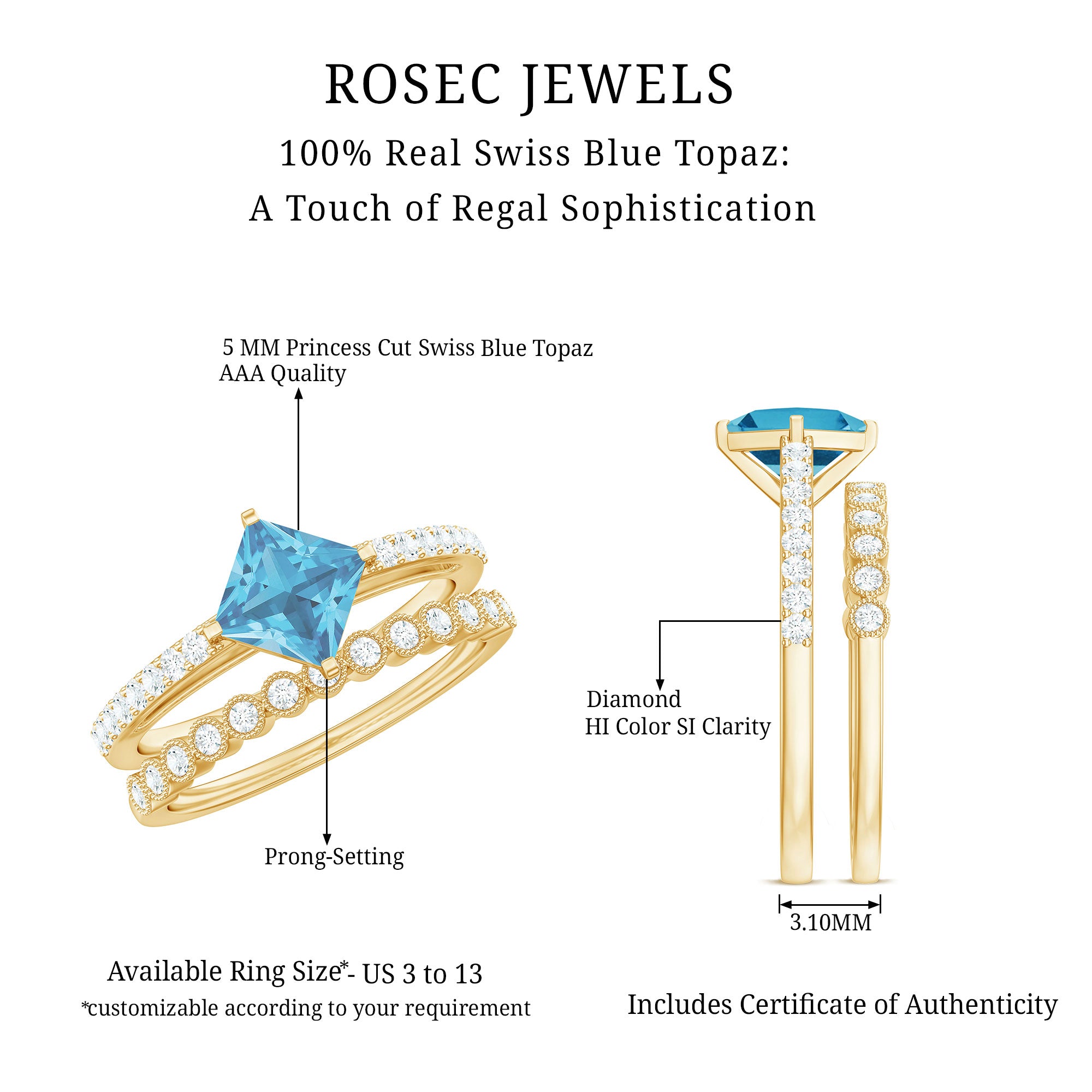 An amazing collection of Swiss blue topaz wedding rings for the love of your life. The bright blue colors of this silicate mineral are an utmost desirable characteristic for crafting charming wedding jewelry. The sparkling radiance of the Swiss blue topaz rings is owed to the fine craftsmanship of our artisans. We, at Rosec Jewels ensure that only after quality assurance, our Swiss topaz rings find their way into the lives of women with a taste for latest jewelry trends.