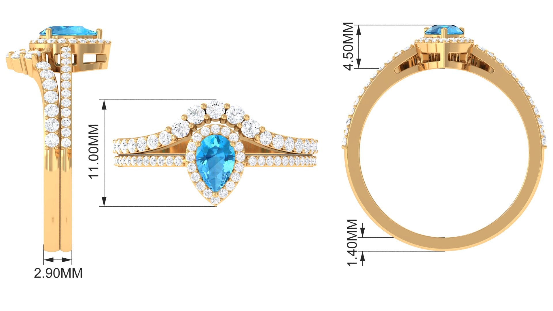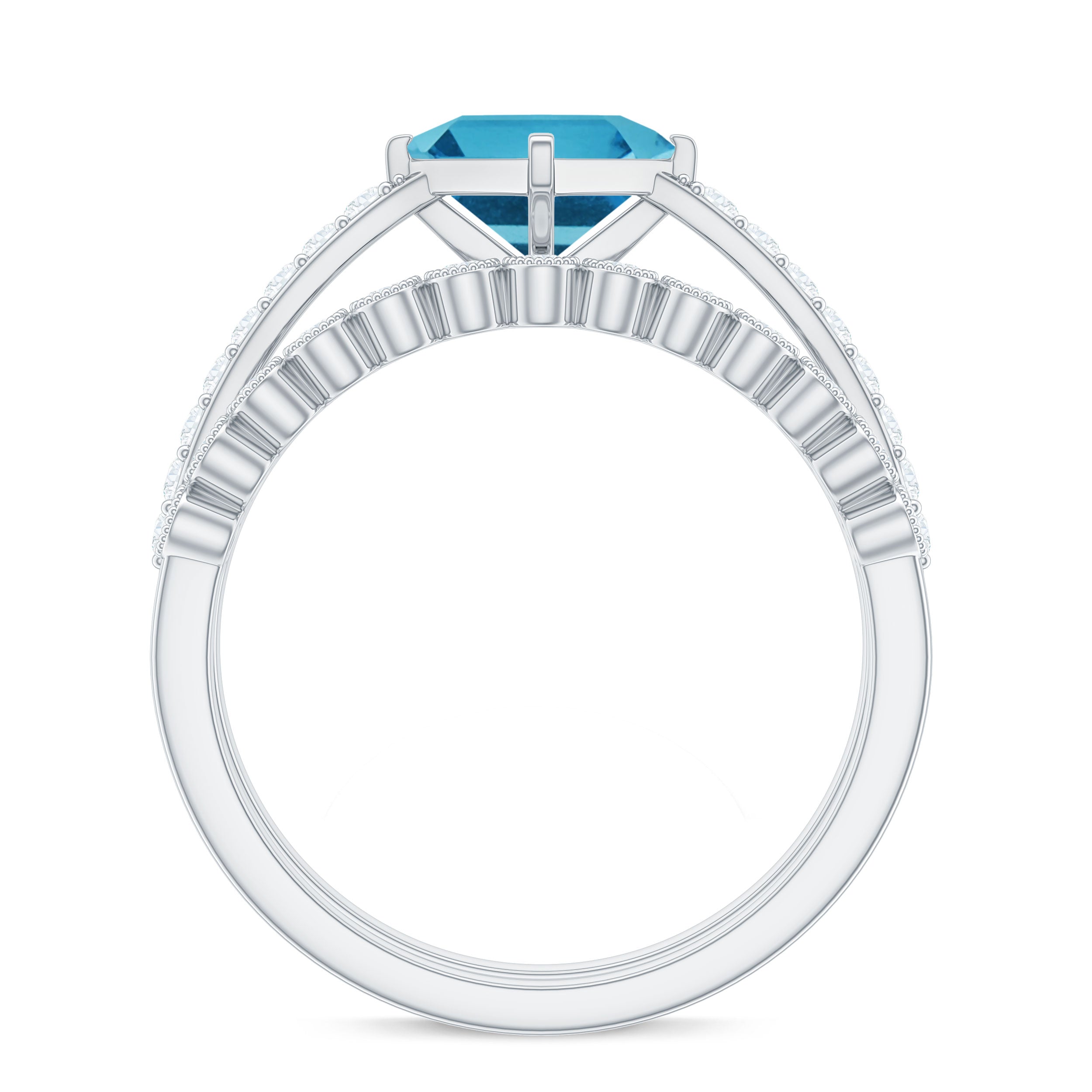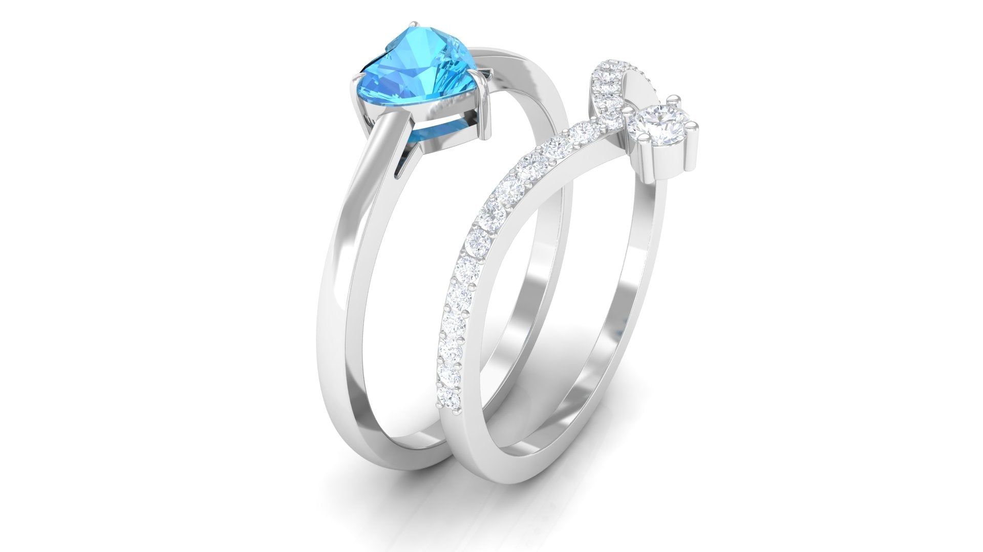 - Color: The signature color of Swiss blue topaz wedding rings is characterized by bright to light shades falling mid-range in colors of London Blue to Sky Blue Topaz.
