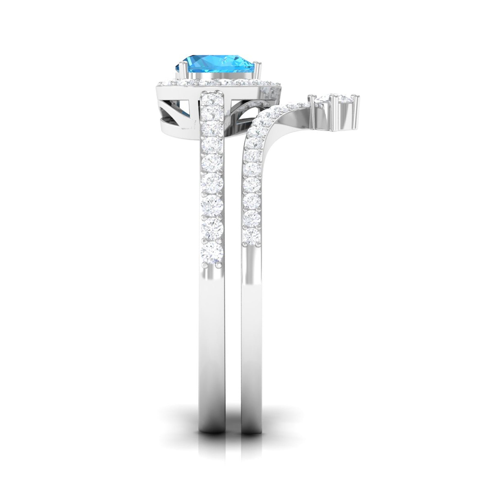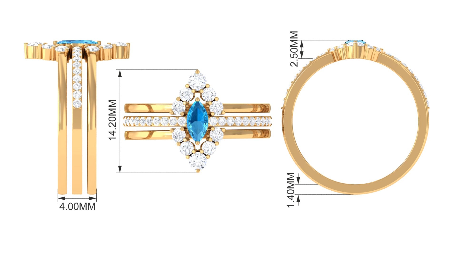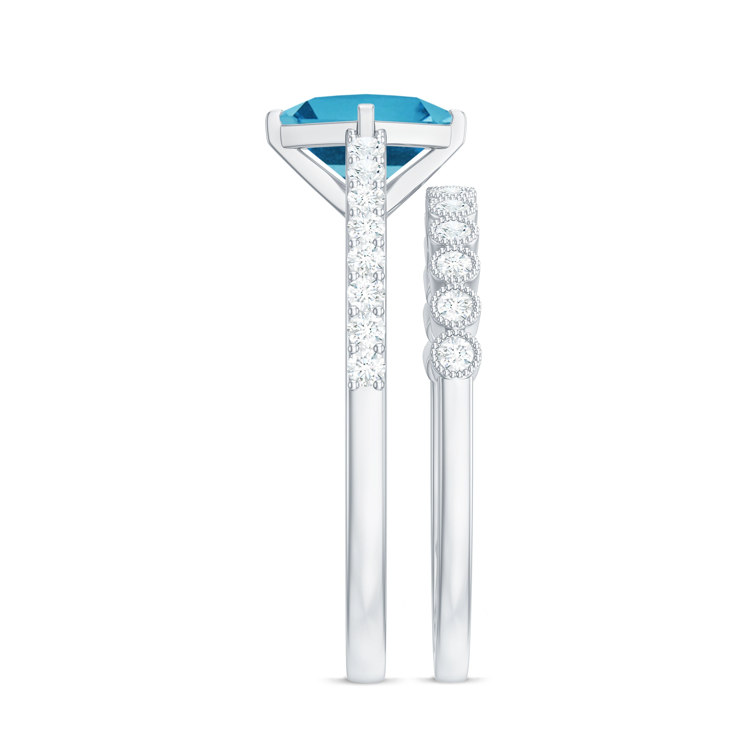 - Color: The signature color of Swiss blue topaz wedding rings is characterized by bright to light shades falling mid-range in colors of London Blue to Sky Blue Topaz.