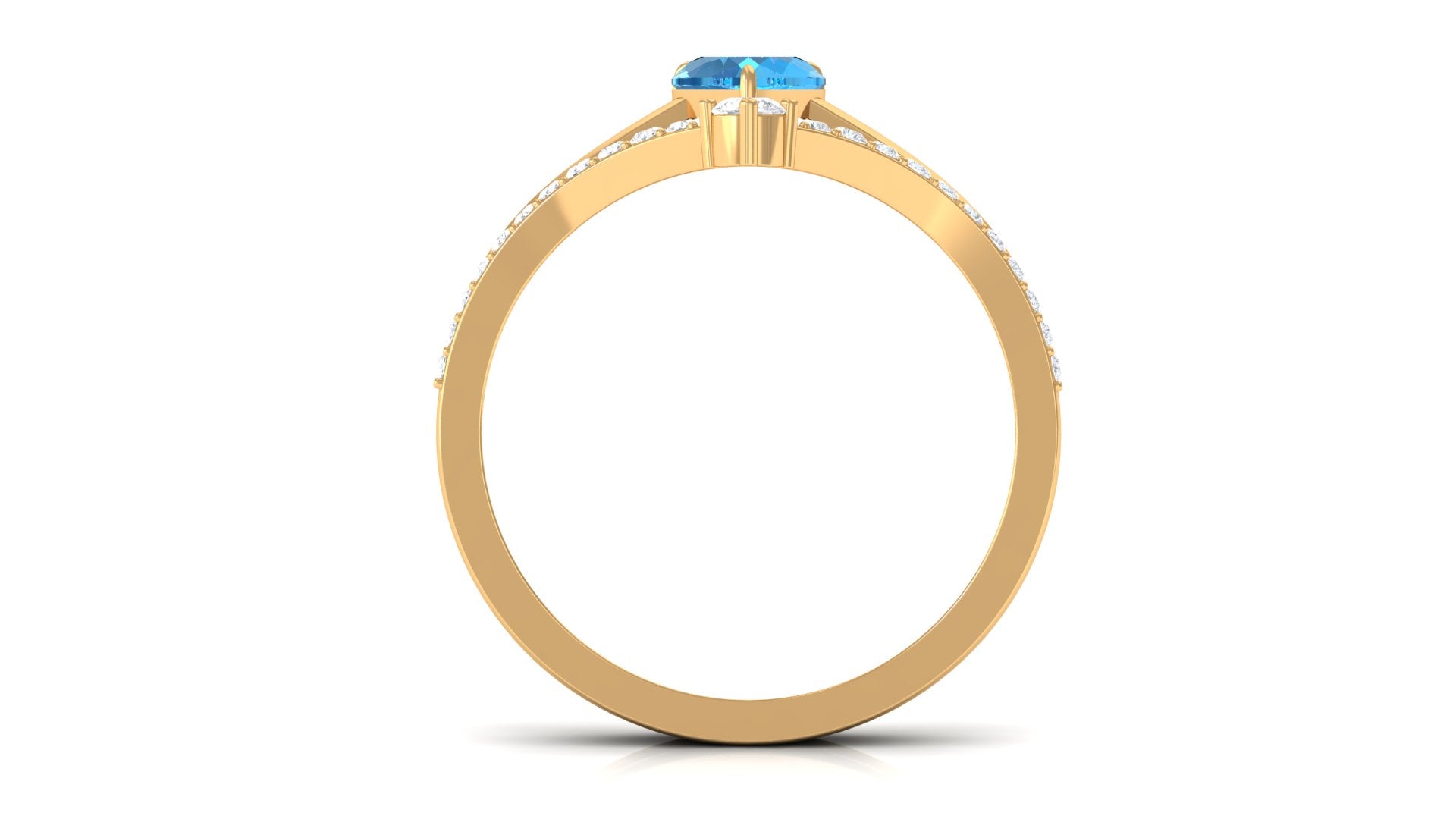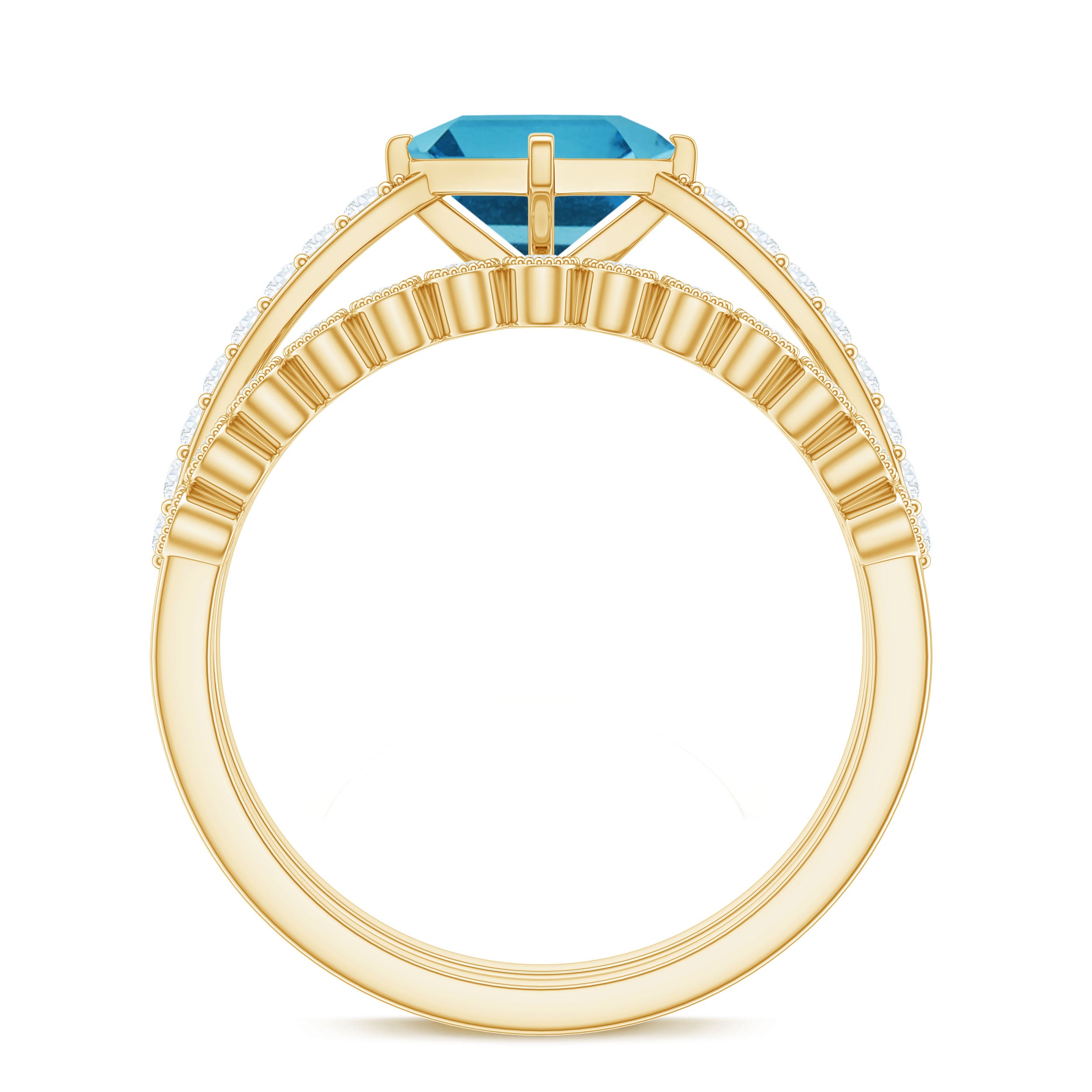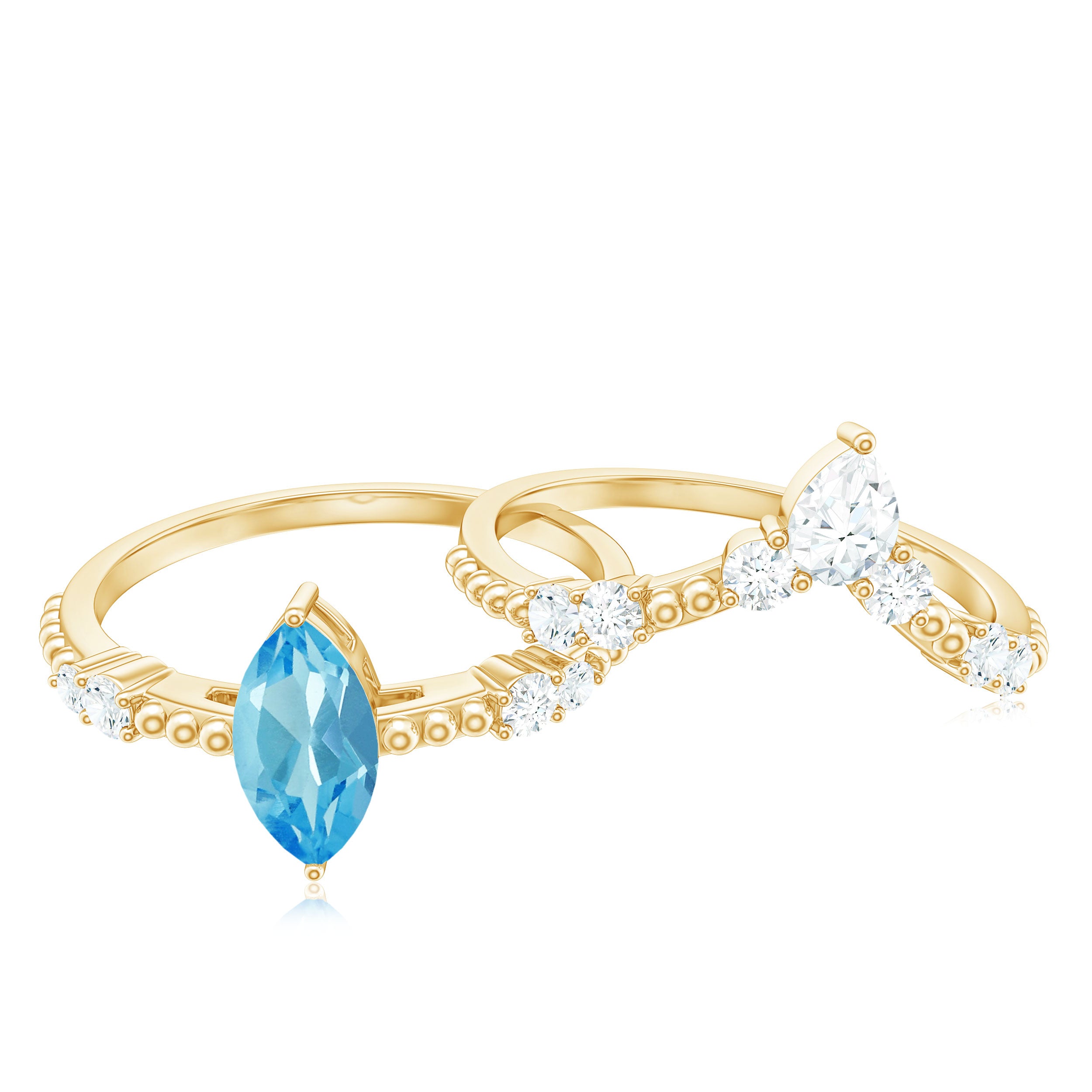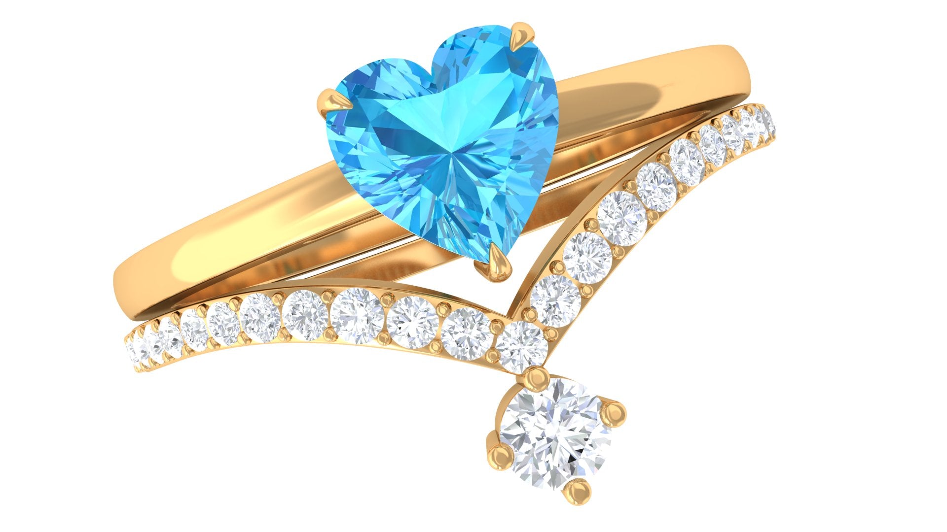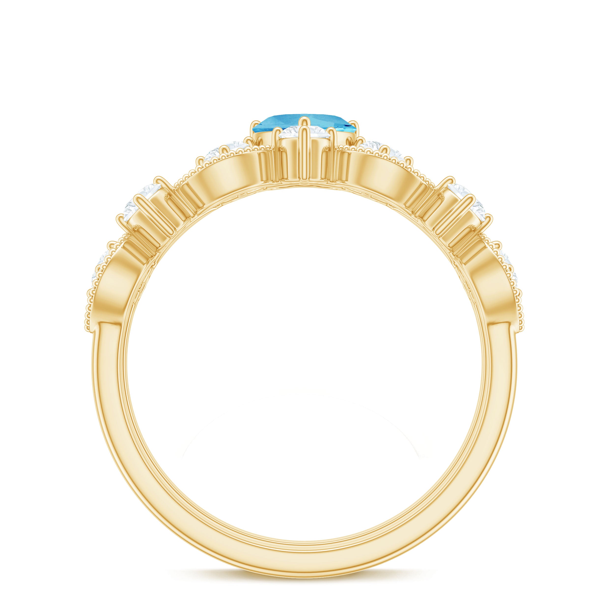 For diversification in ring designs, we experiment with variety of colorful gold and Swiss blue topaz shapes to curate out of the box designs of Swiss blue topaz ring in yellow gold, white gold and rose gold. Also, fine metal detailing and embellishments helps us in crafting vintage style blue topaz rings and many more to best suit your personal style.