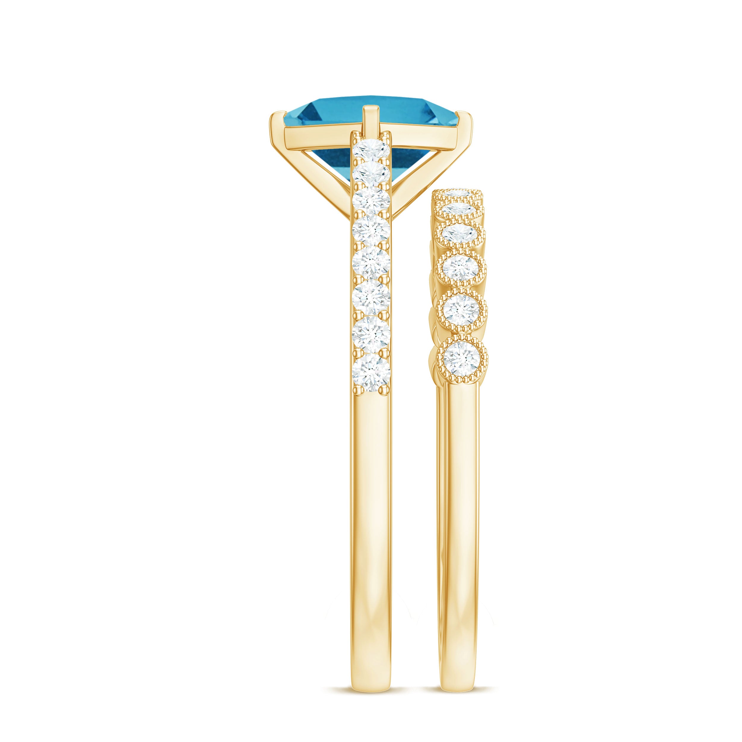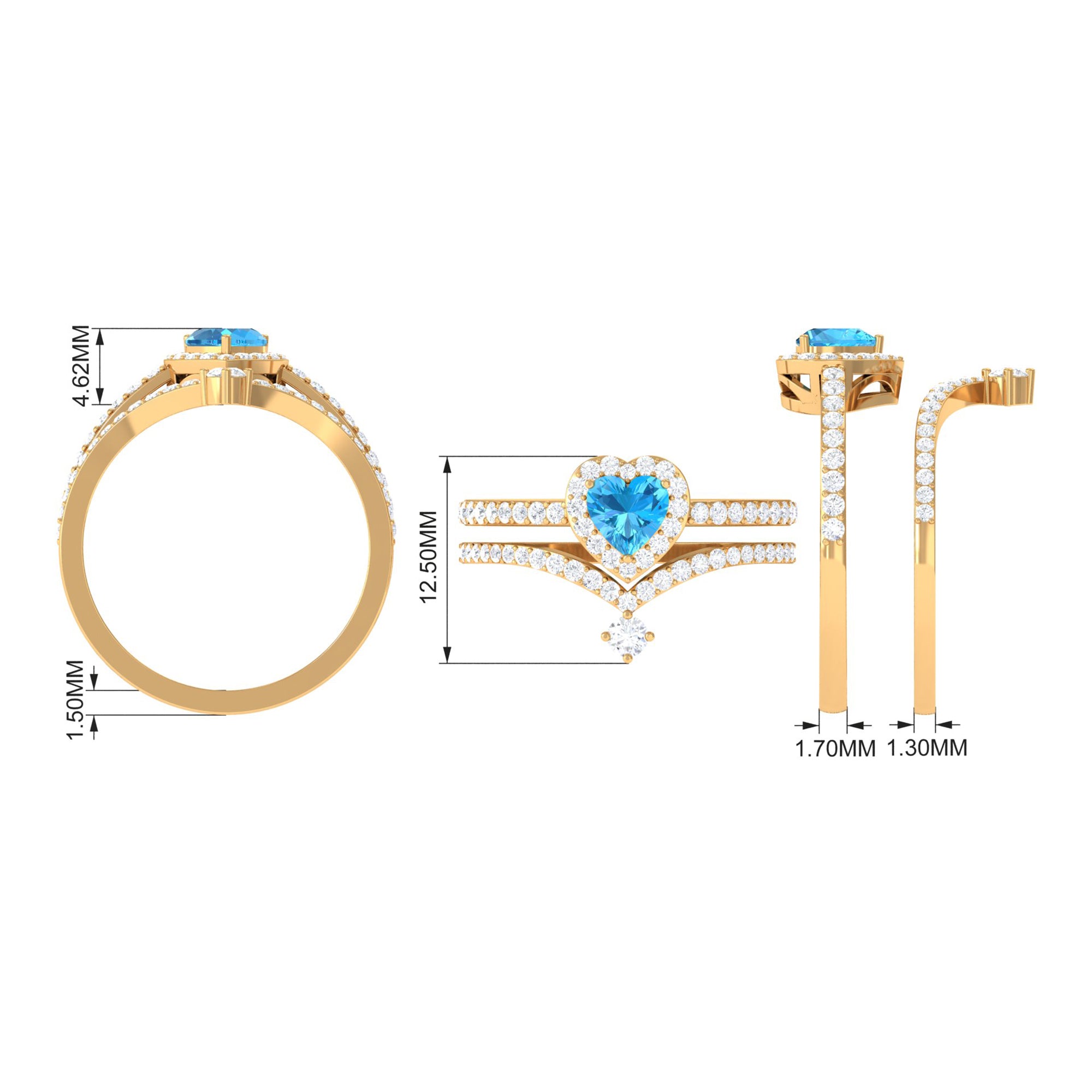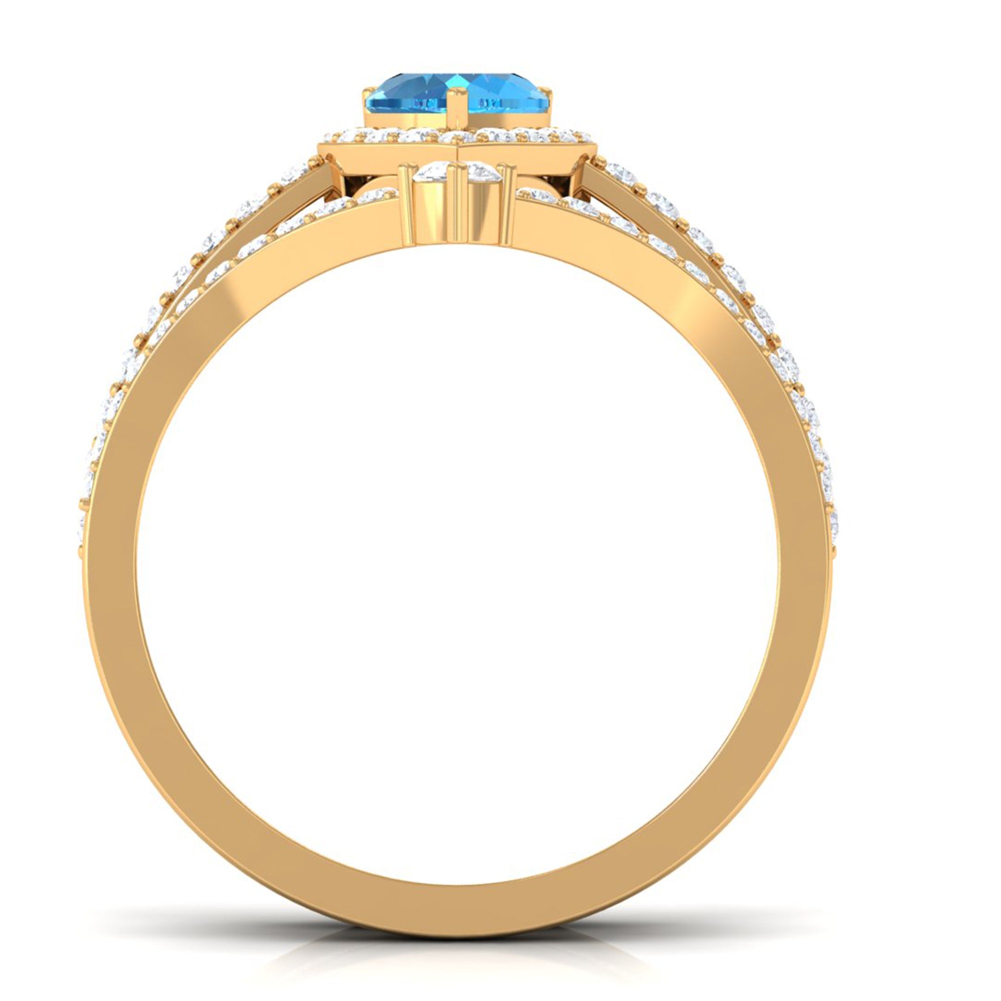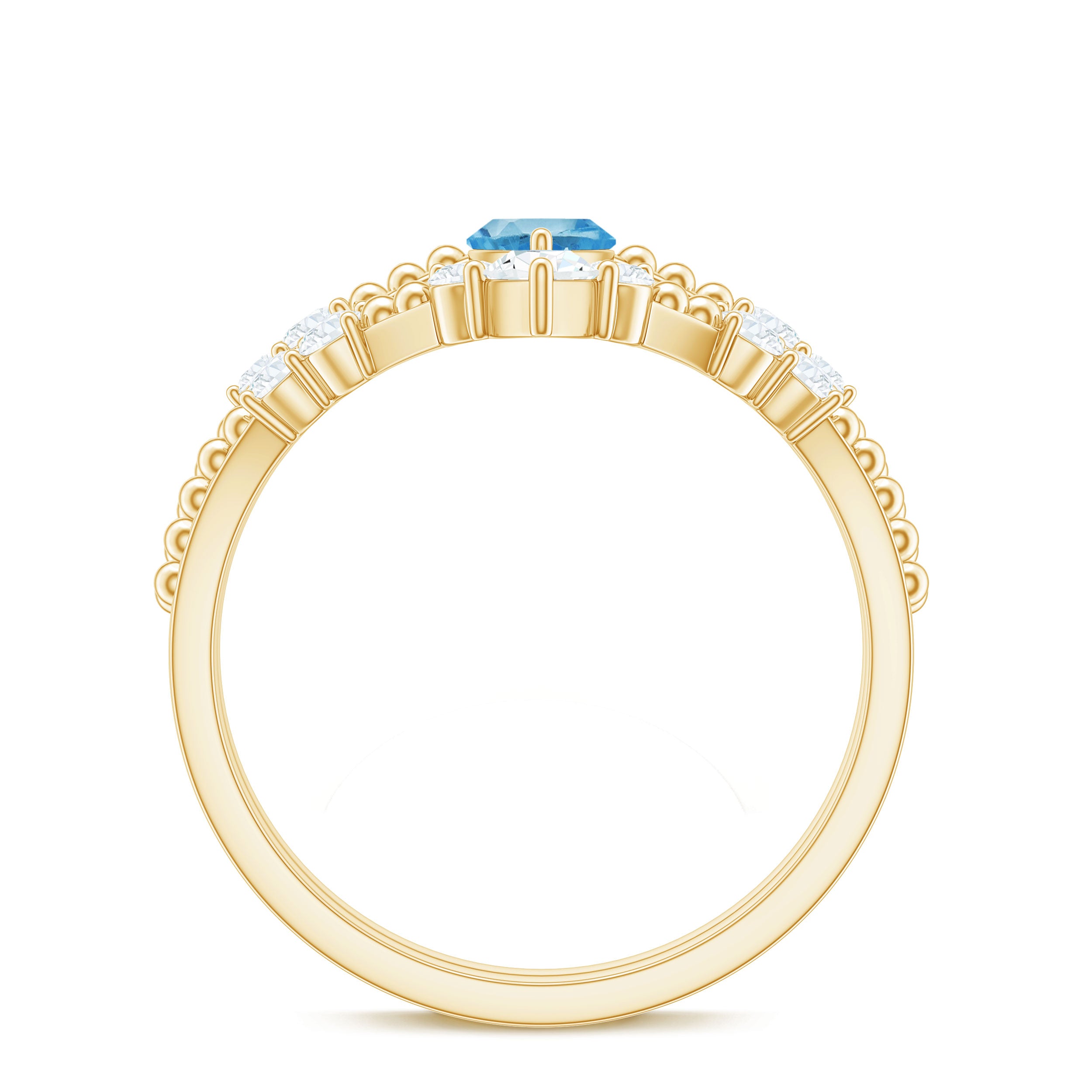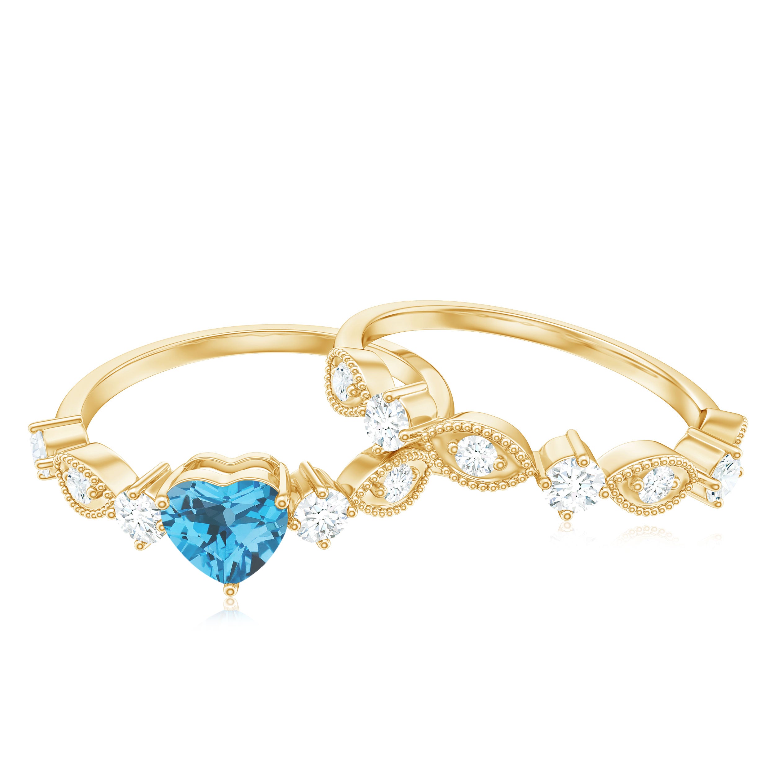 For diversification in ring designs, we experiment with variety of colorful gold and Swiss blue topaz shapes to curate out of the box designs of Swiss blue topaz ring in yellow gold, white gold and rose gold. Also, fine metal detailing and embellishments helps us in crafting vintage style blue topaz rings and many more to best suit your personal style.
