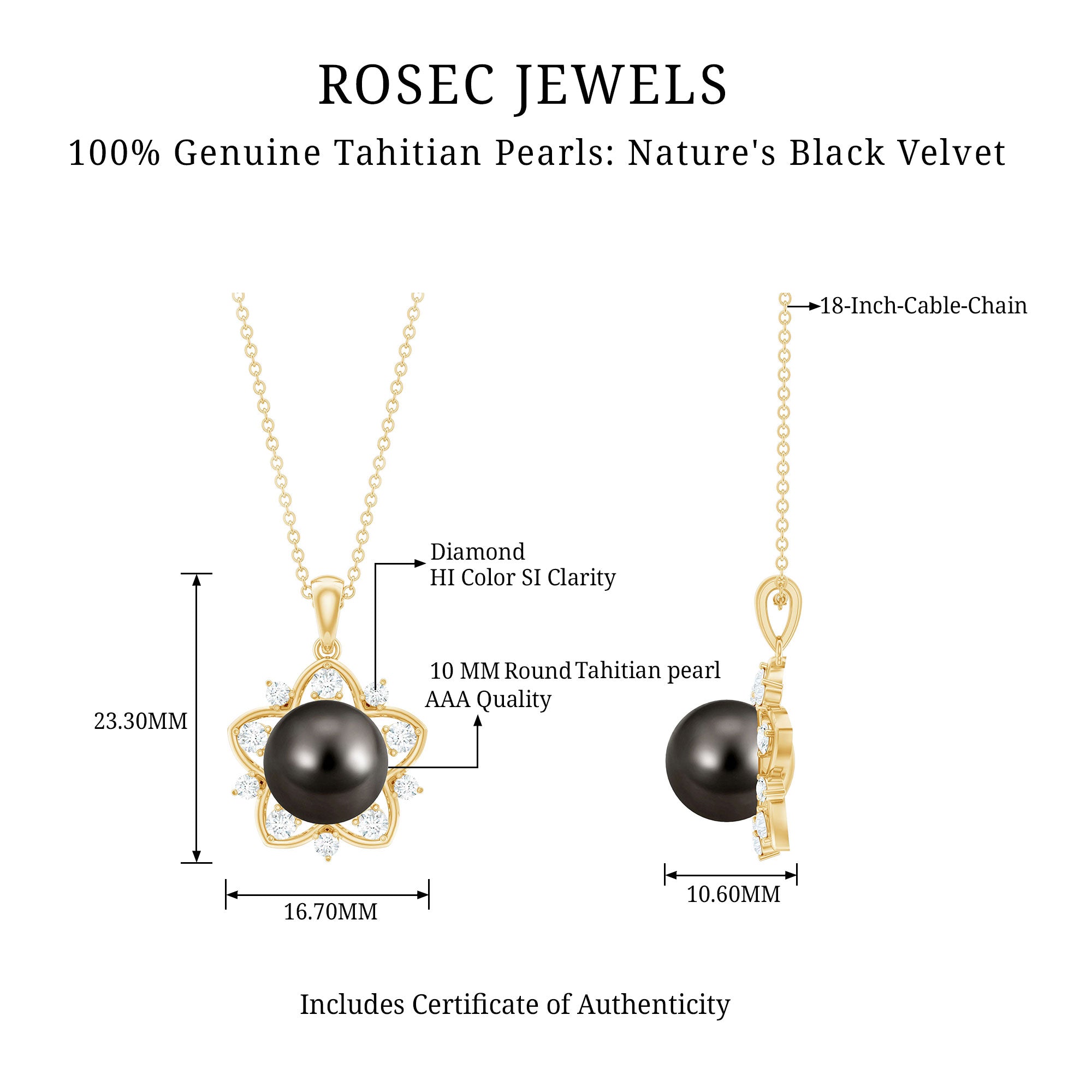 At Rosec Jewels, you will see only AAA grade Tahitian pearl pendant necklaces.