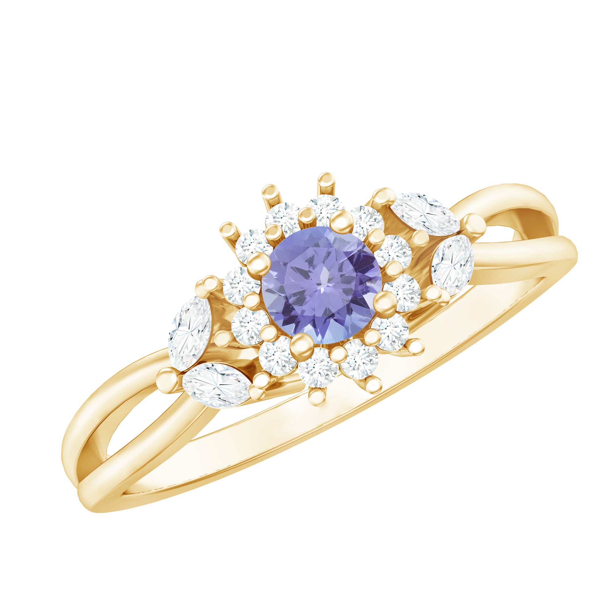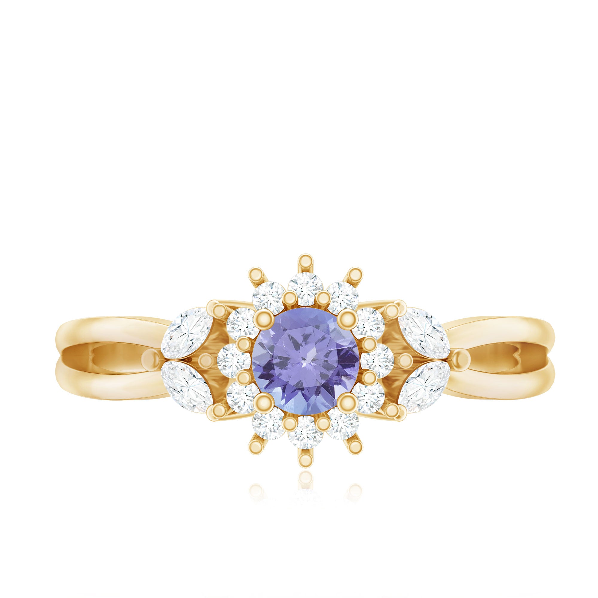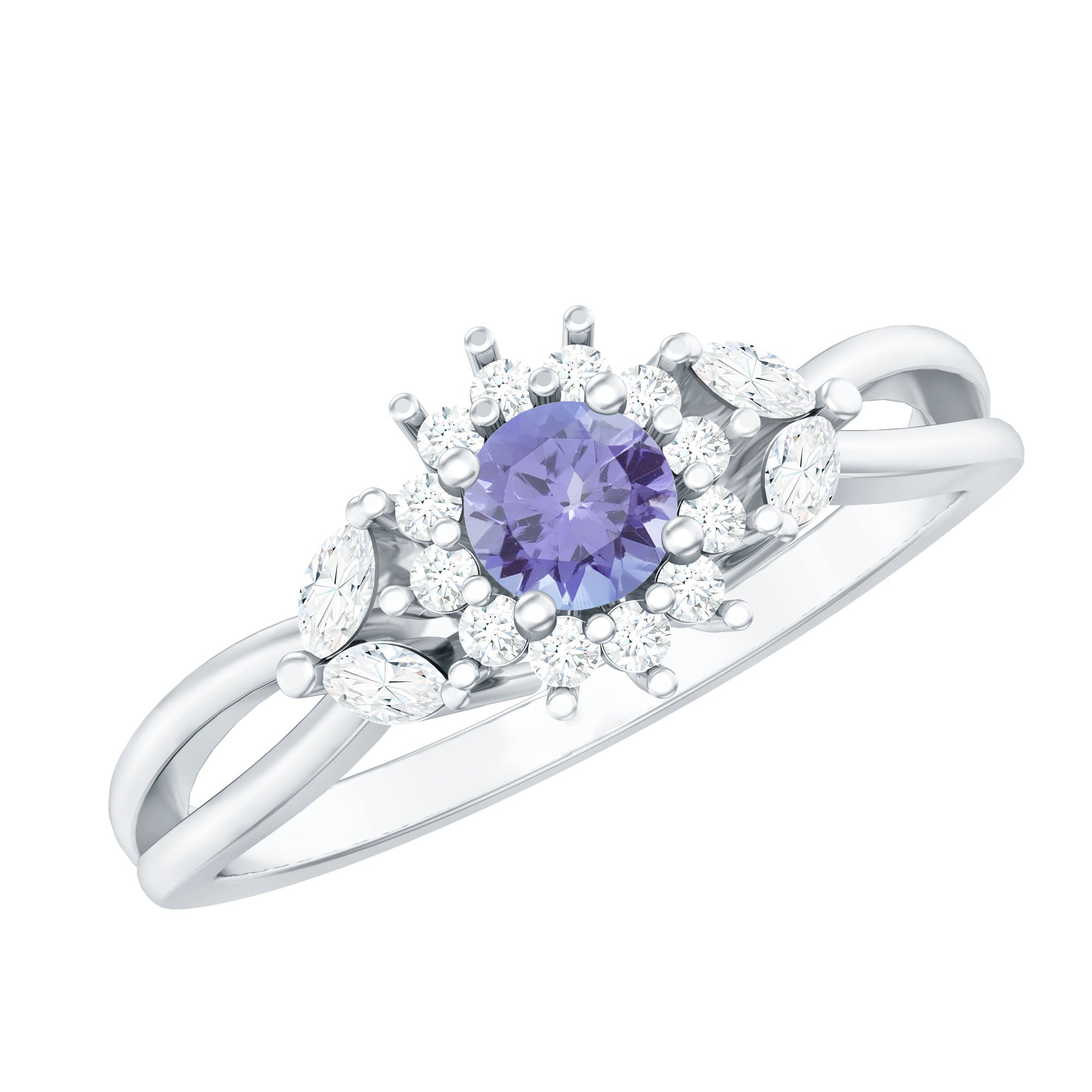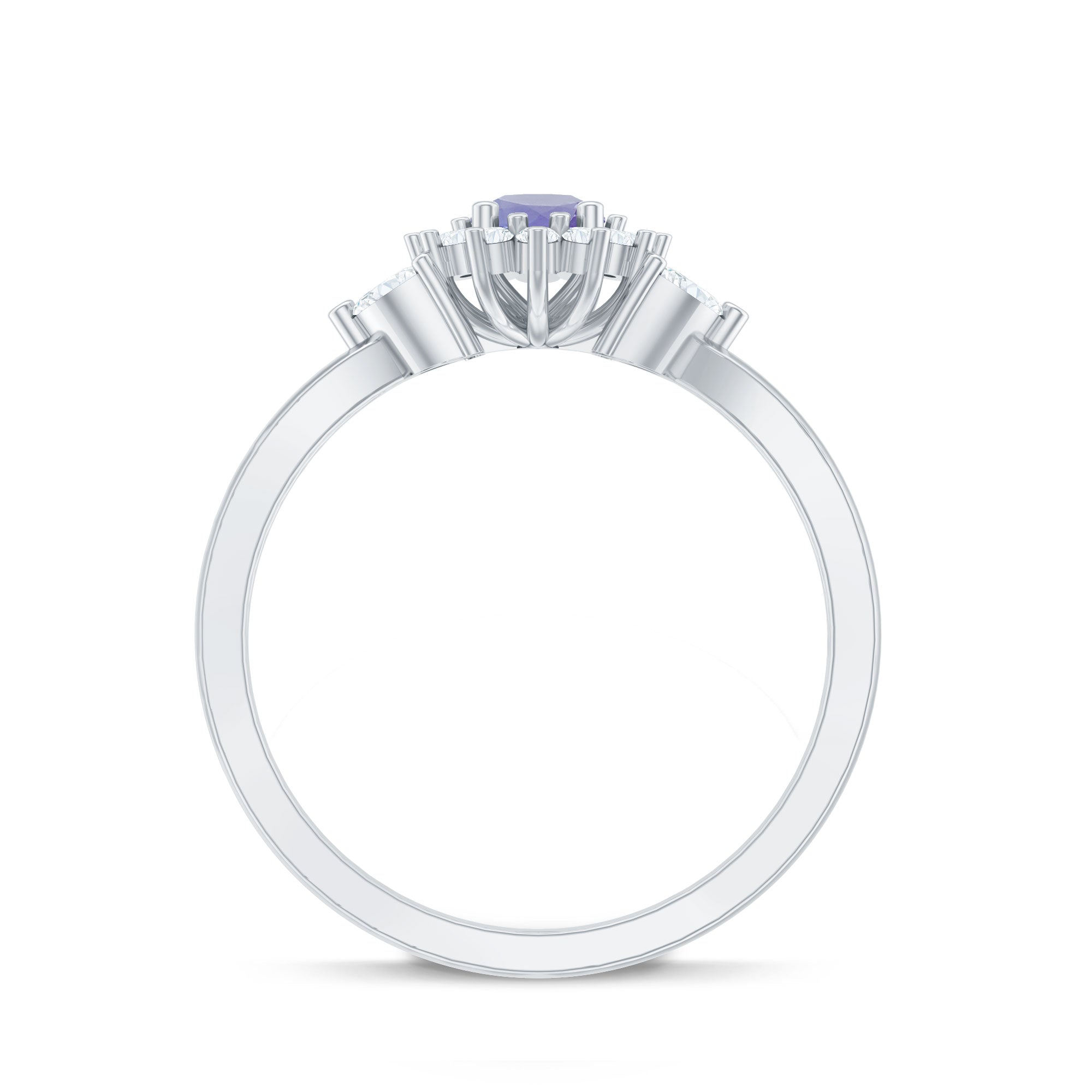 • Tanzanite Halo Engagement Rings: - The halo design, adds an extra layer of sparkle to the ring. These styles of rings embellished with tanzanite stone appear as a focal point of the ring. The solitaire stone is encircled by a shimmery diamond accent, making the center gemstone a bit larger. Diamond and tanzanite engagement rings are some of the best halo engagement rings.