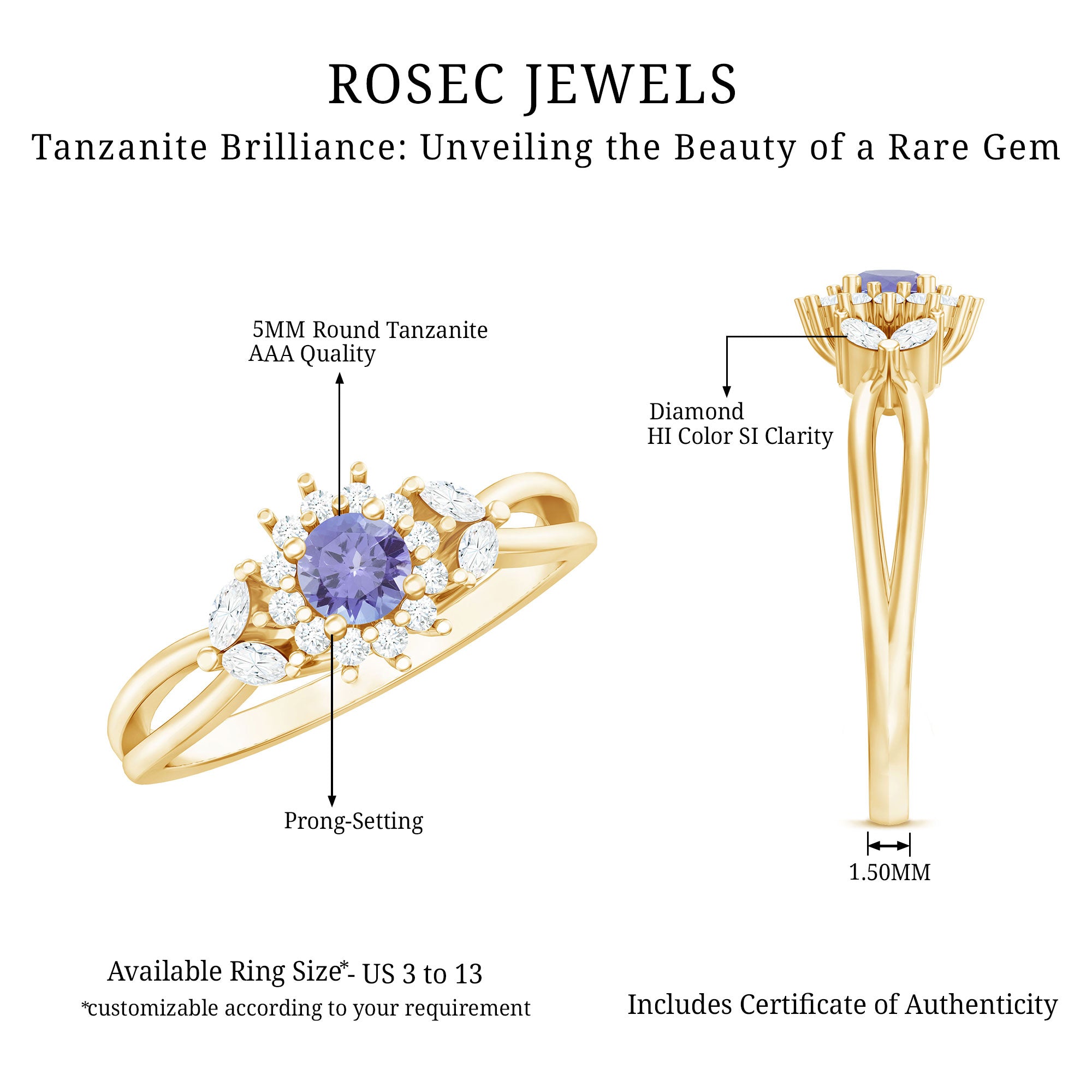 The exquisite collection of unique tanzanite engagement rings includes simple solitaire, halo, vintage-inspired, nature-inspired, and classic styles. We design each ring to cater to your needs and budget.