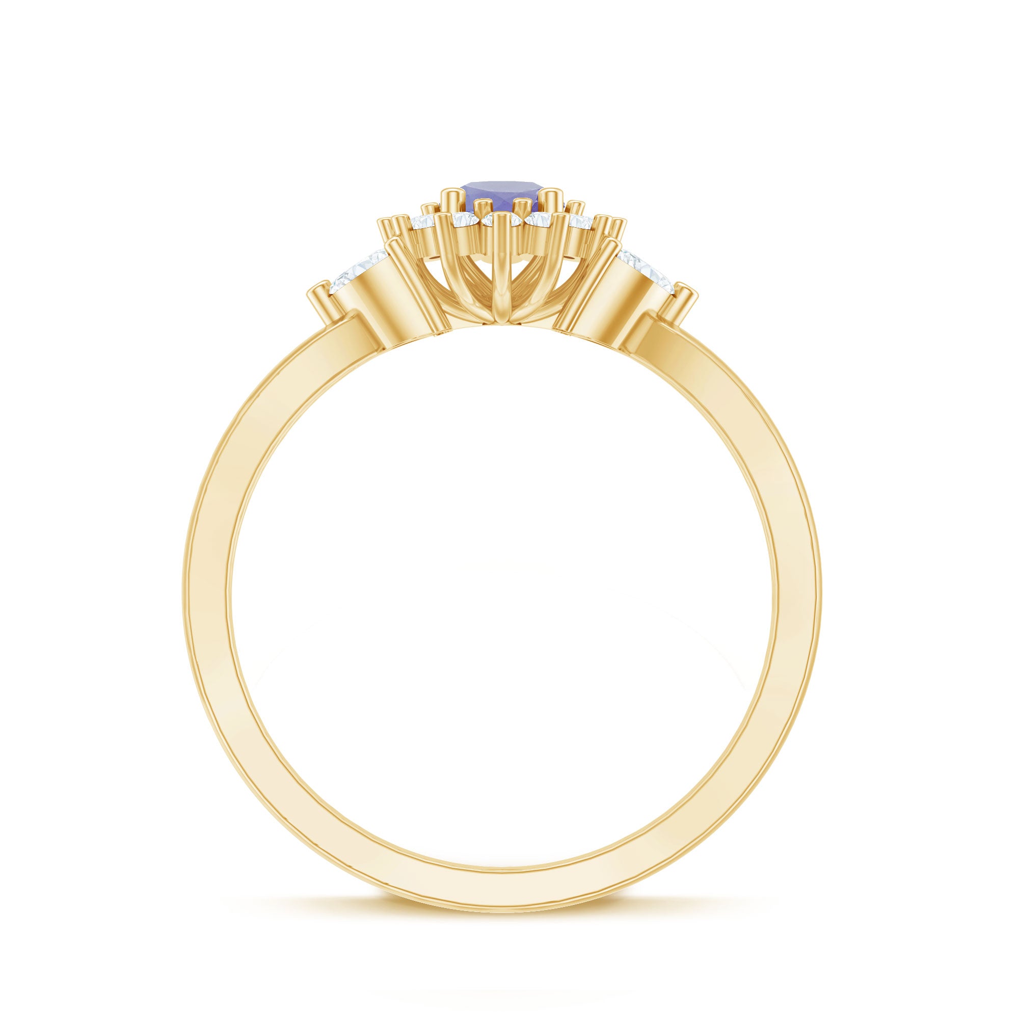• Tanzanite Vintage Inspired Engagement Rings: - Vintage Tanzanite diamond engagement ring styles are often inspired by multiple eras, merging into something unique. The antique tanzanite engagement ring is a modern ring crafted in yellow gold or white gold to give an antique appeal. Each ring showcases its beauty, and the intricate design makes the perfect vintage engagement ring.