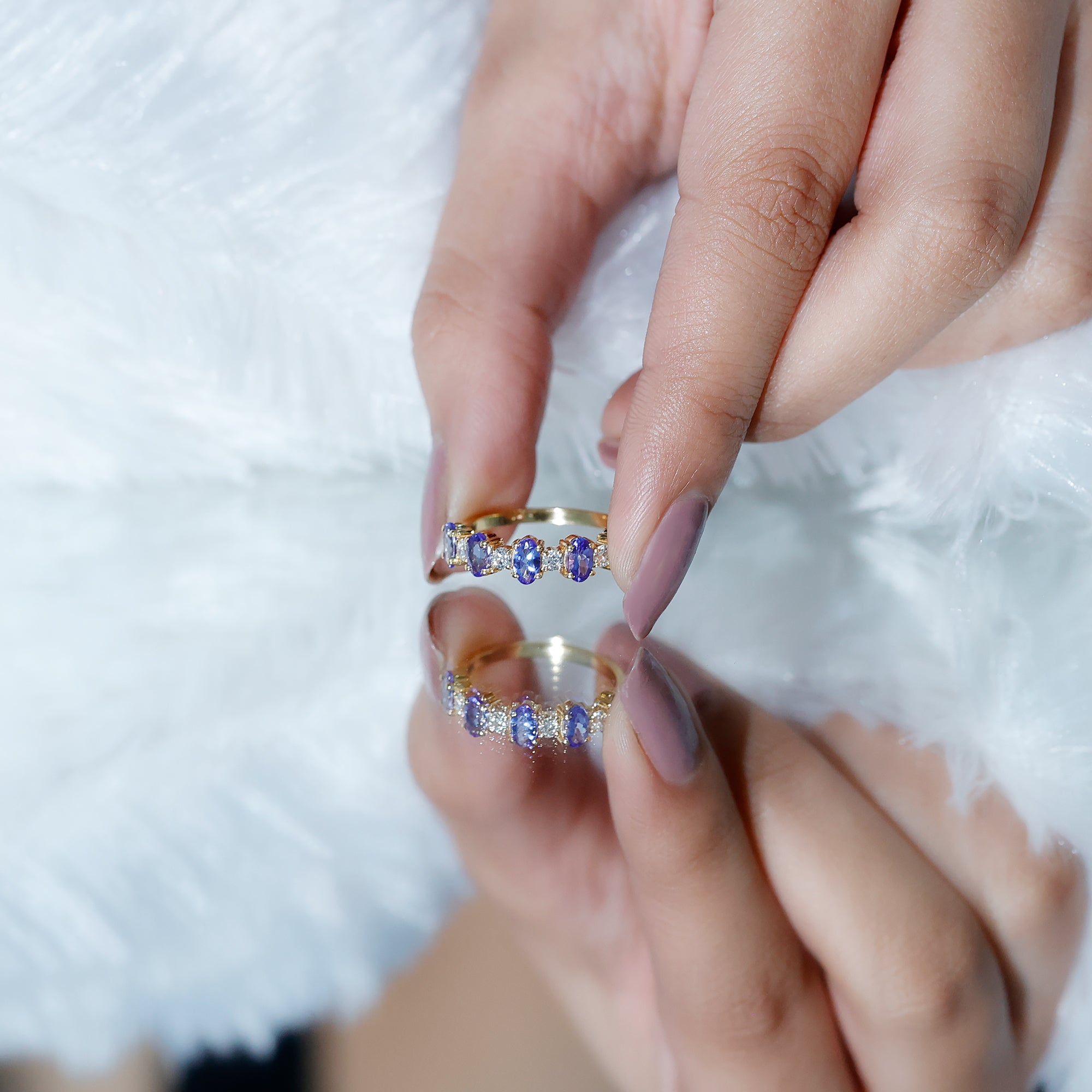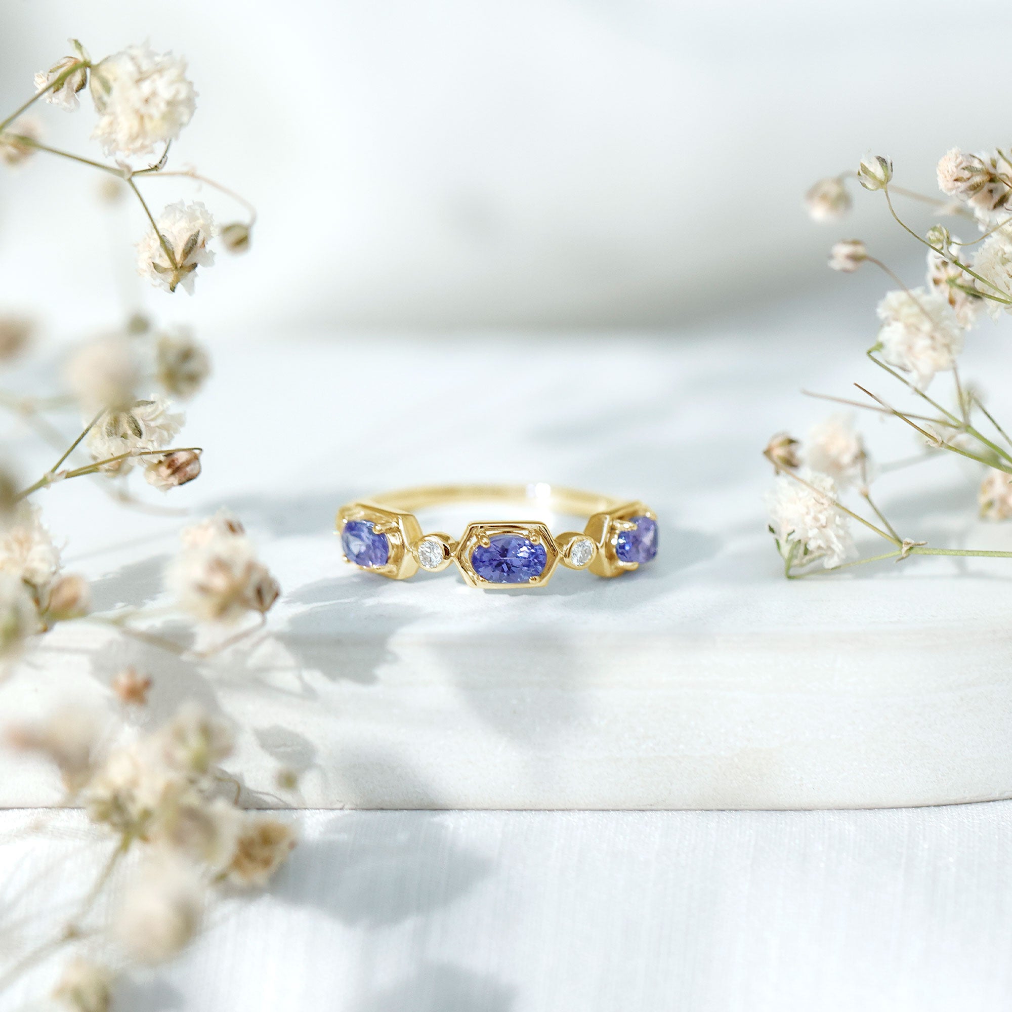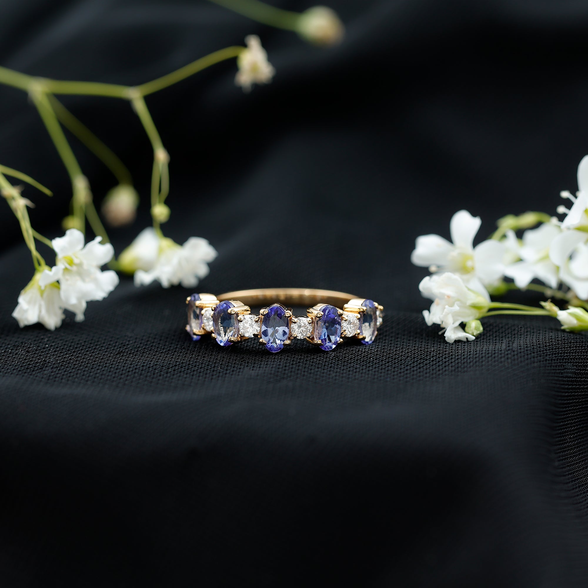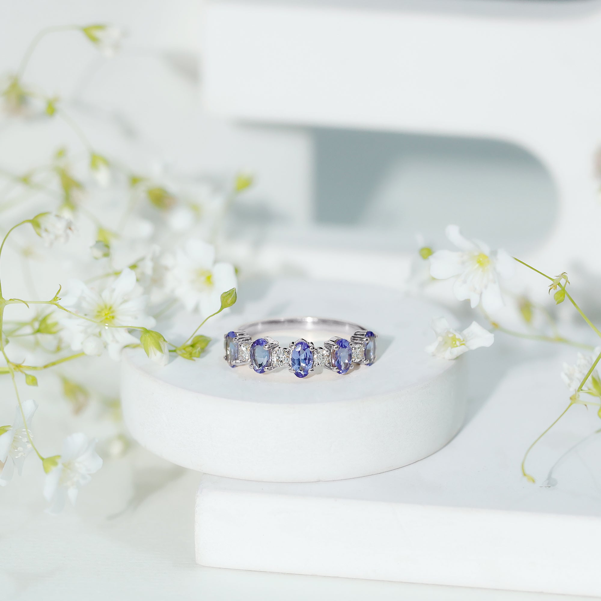 Tanzanite in wedding bands are a great symbolism of new beginnings in relations. While a tanzanite eternity band tend to symbolize eternal love between the married couple.