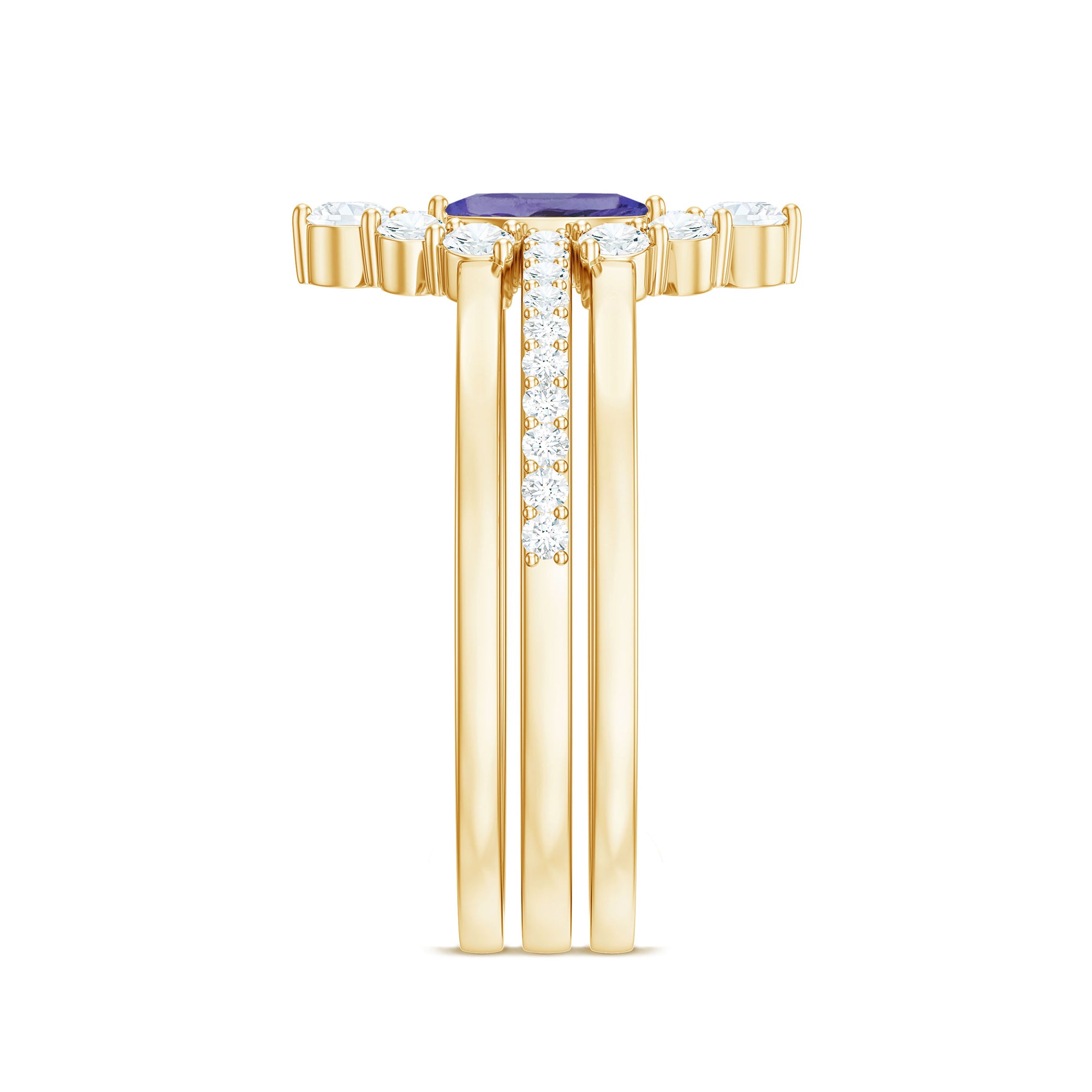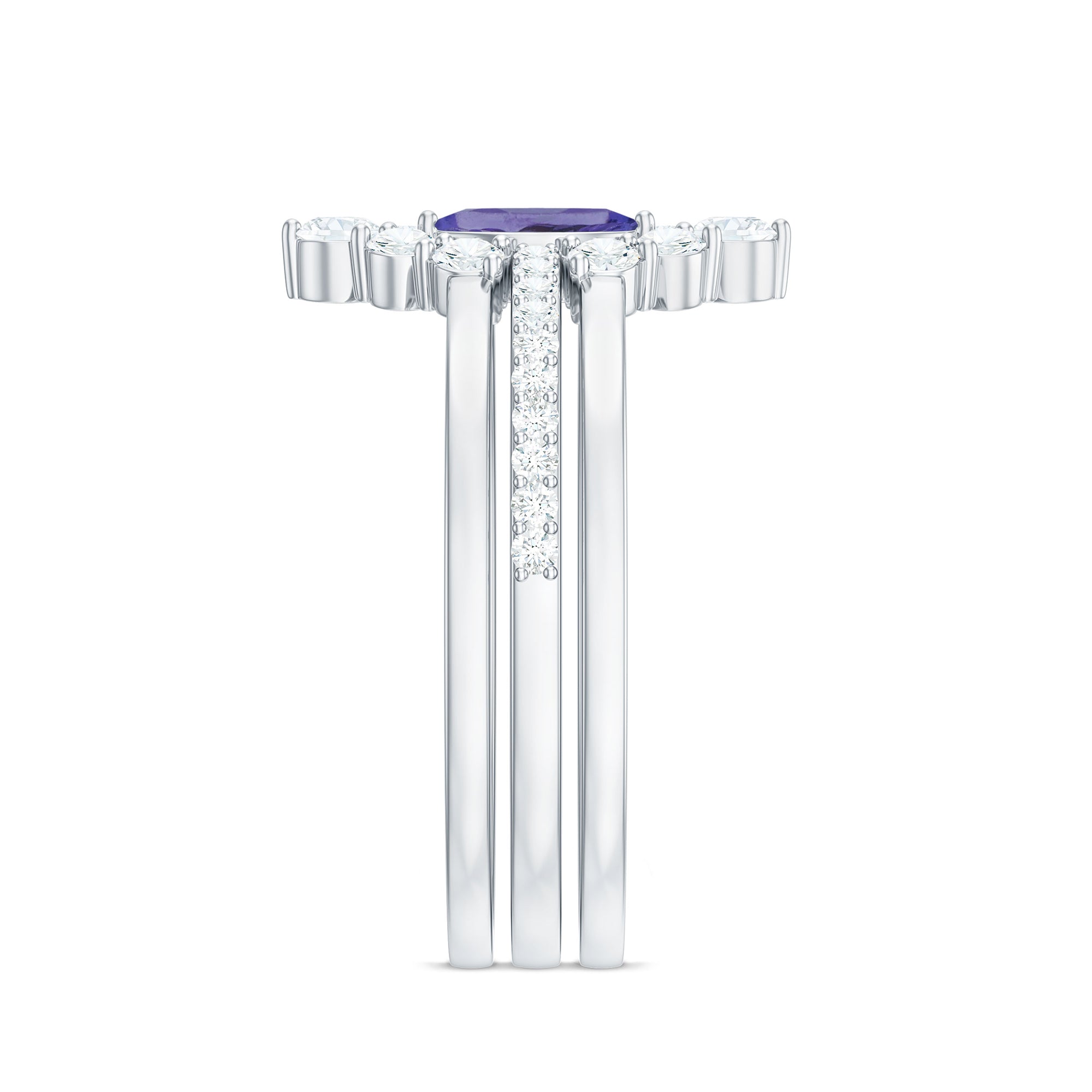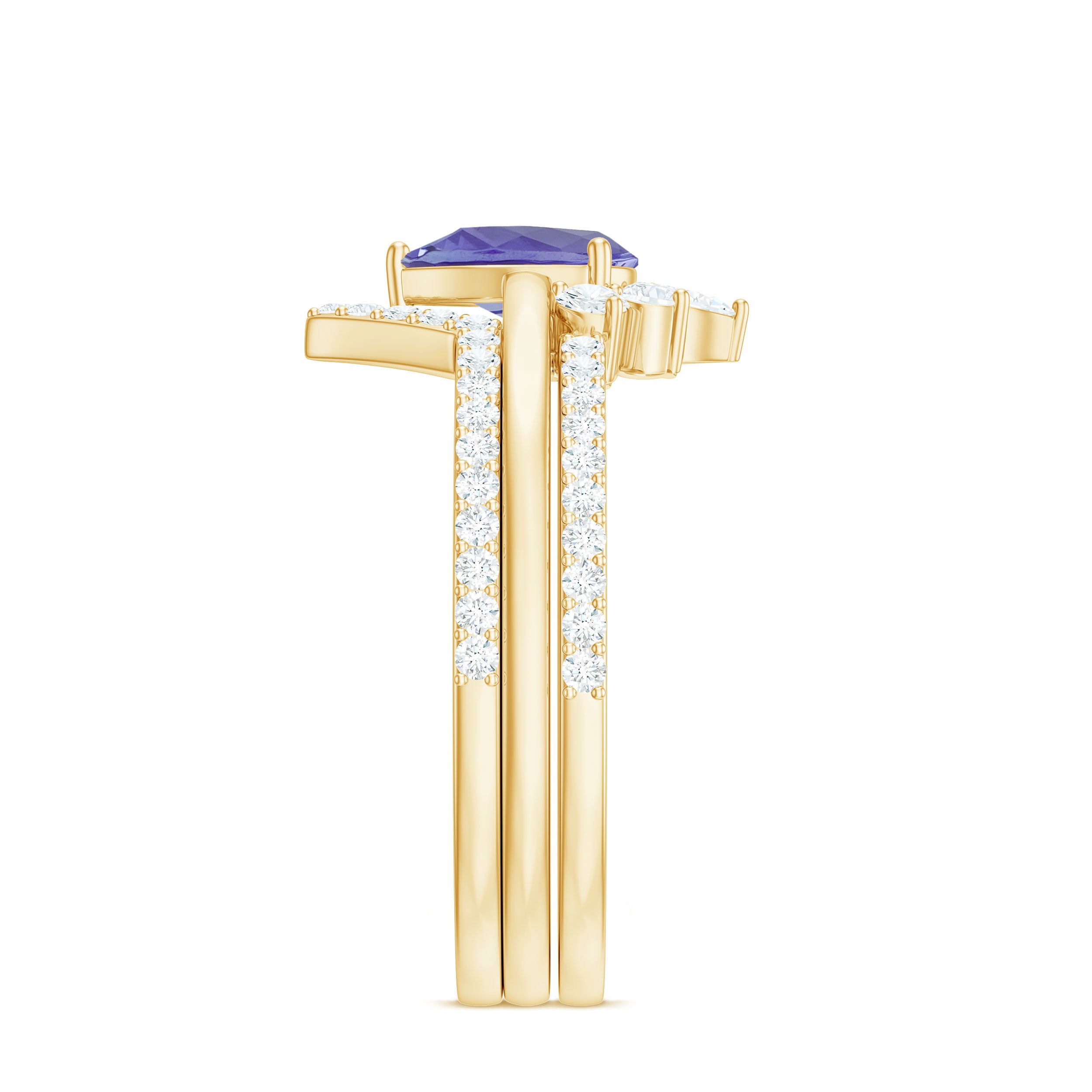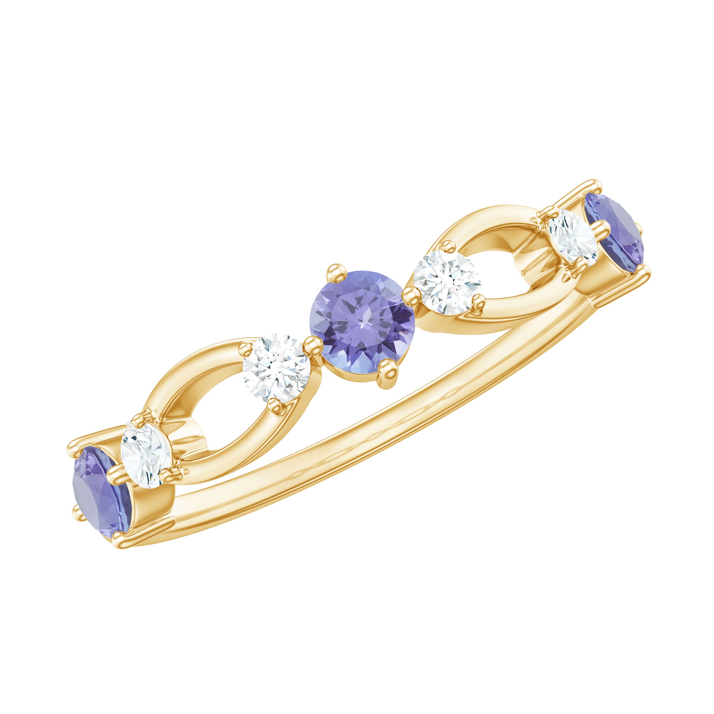 While designing wedding bands for women our artisans combine traditional designs with latest fashion trends. Our lapidarist craft beautiful tanzanite bands with a variety of tanzanite shapes ranging from round, oval, cushion, emerald, princess and many more to bring about a great diversity in tanzanite rings for wedding. Furthermore, the selection of different gold hues with different purity bring further assortment to tanzanite rings.