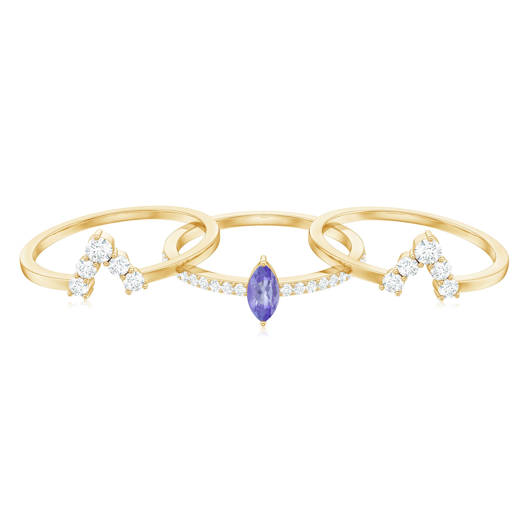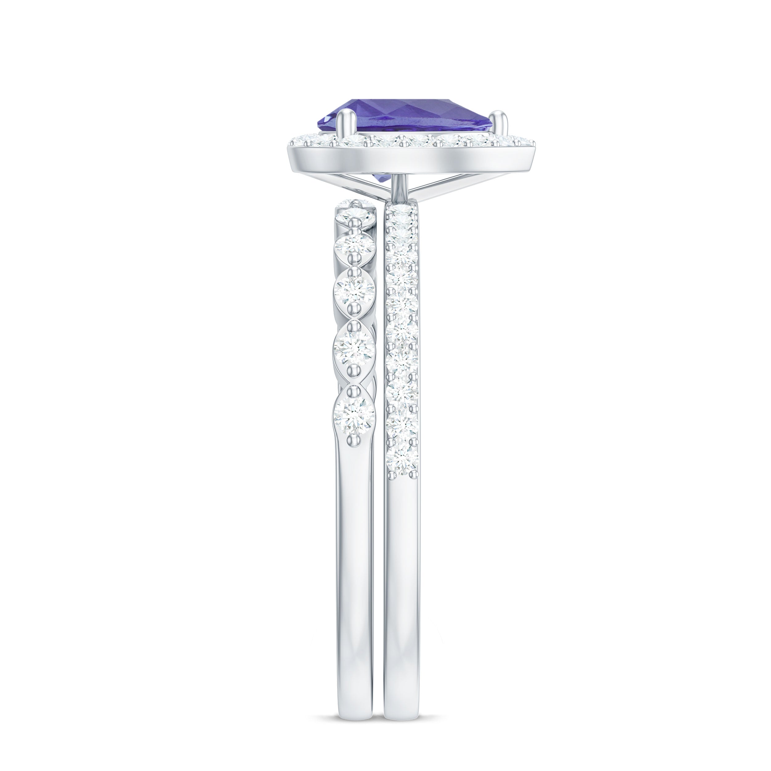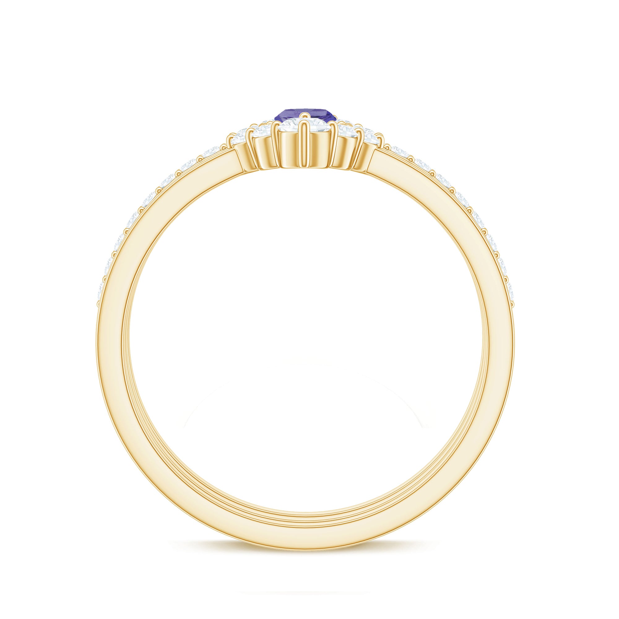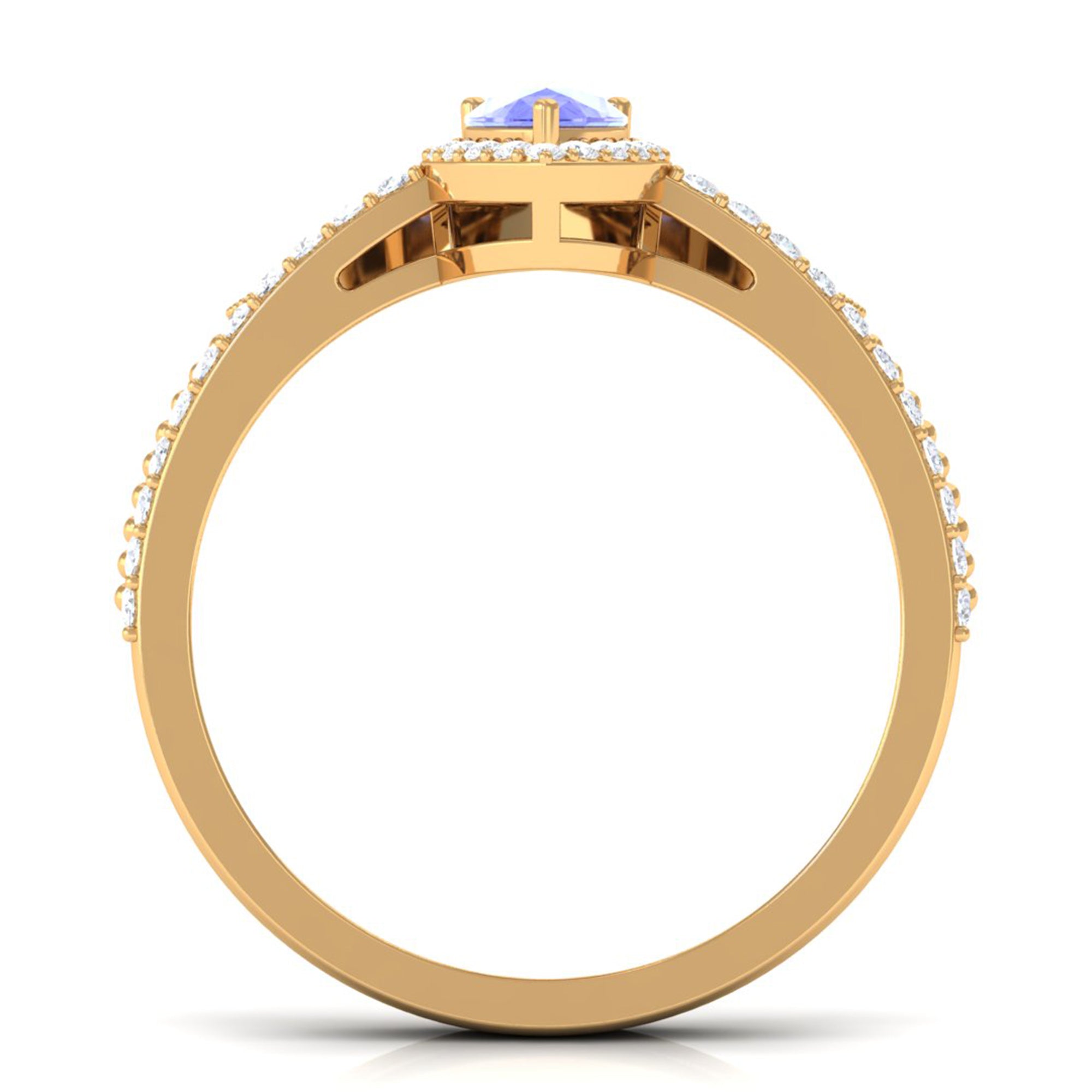 While designing wedding bands for women our artisans combine traditional designs with latest fashion trends. Our lapidarist craft beautiful tanzanite bands with a variety of tanzanite shapes ranging from round, oval, cushion, emerald, princess and many more to bring about a great diversity in tanzanite rings for wedding. Furthermore, the selection of different gold hues with different purity bring further assortment to tanzanite rings.