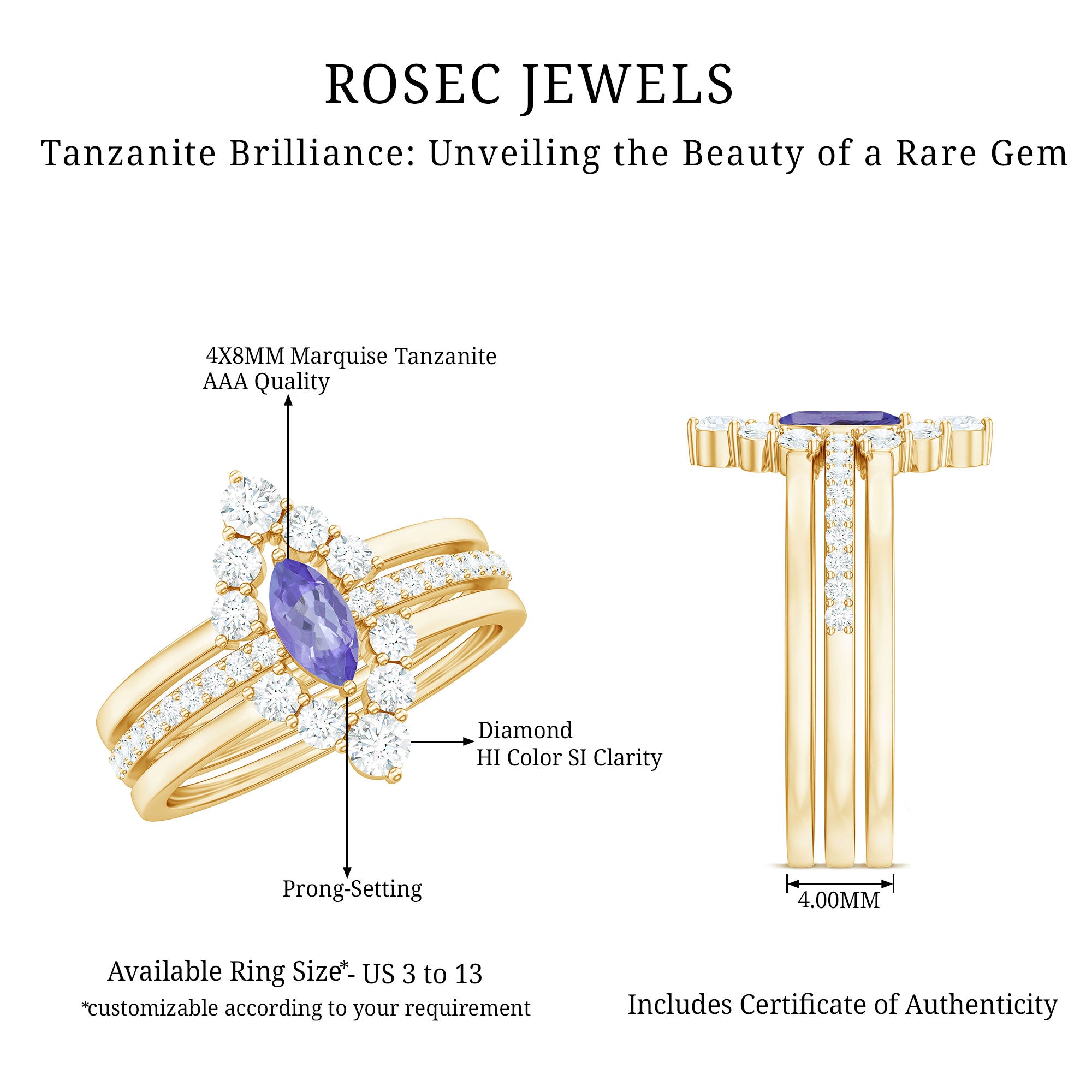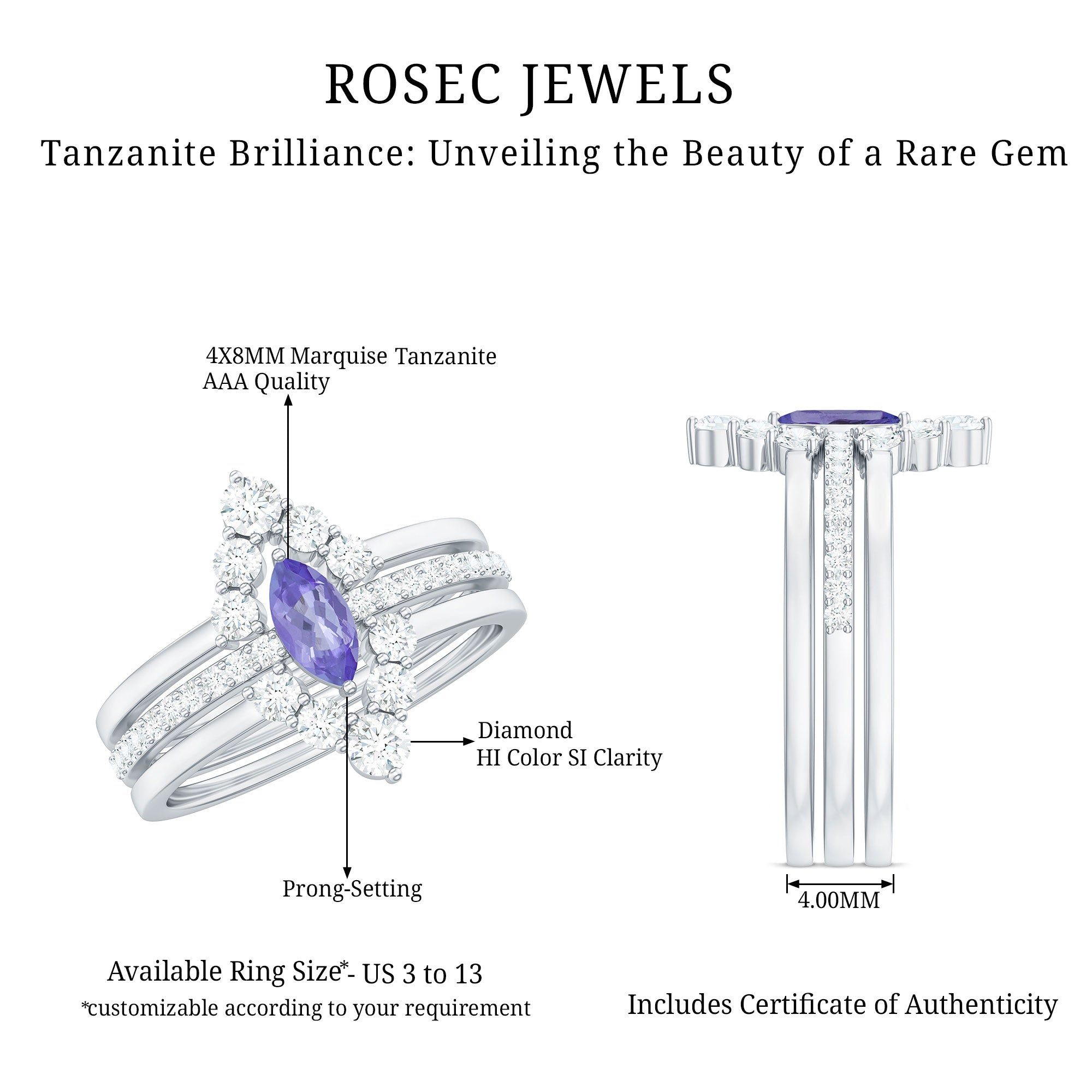 The heart warming range of tanzanite wedding rings from Rosec Jewels speak for the sparkling beauty of the Tanzanite. The birthstone of December is a recent addition to the gemstone family and a rare catch in nature as it is obtained from a single source on Earth. Only a single generation will ever get to wear tanzanite jewelry bestowing it the title of Gemstone of a Generation. The exceptional pleochroism displayed by tanzanite makes it quite desirable in crafting tanzanite rings for engagement, wedding and anniversary.