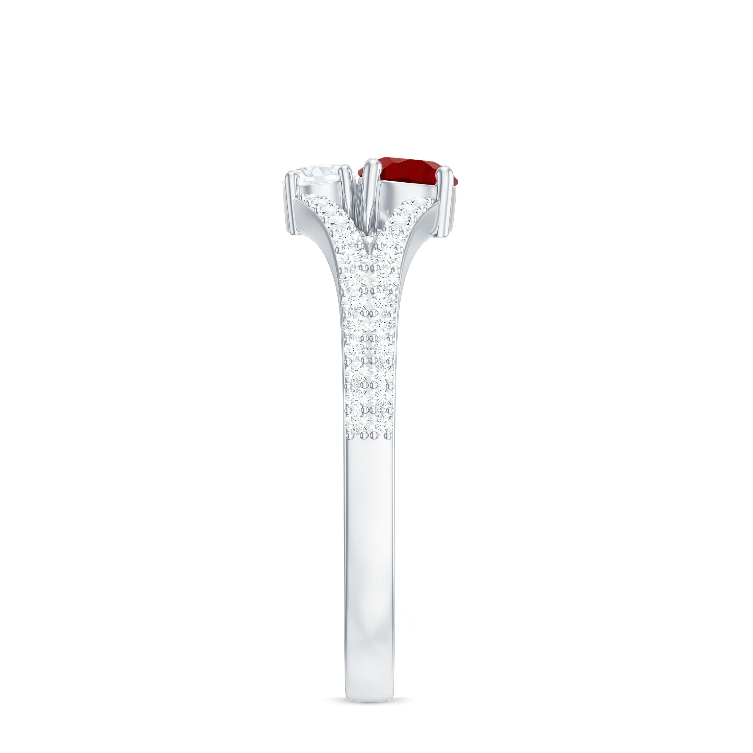 • Round: If you wish for a hint of classic touch in your Modern Toi Et Moi Ring, it’s best to go for the one fashioned with Conventional Round Cut Stones. What’s more, owing to the strategical arrangement of its 57 facets (per stone), it exudes an unparalleled brilliance.