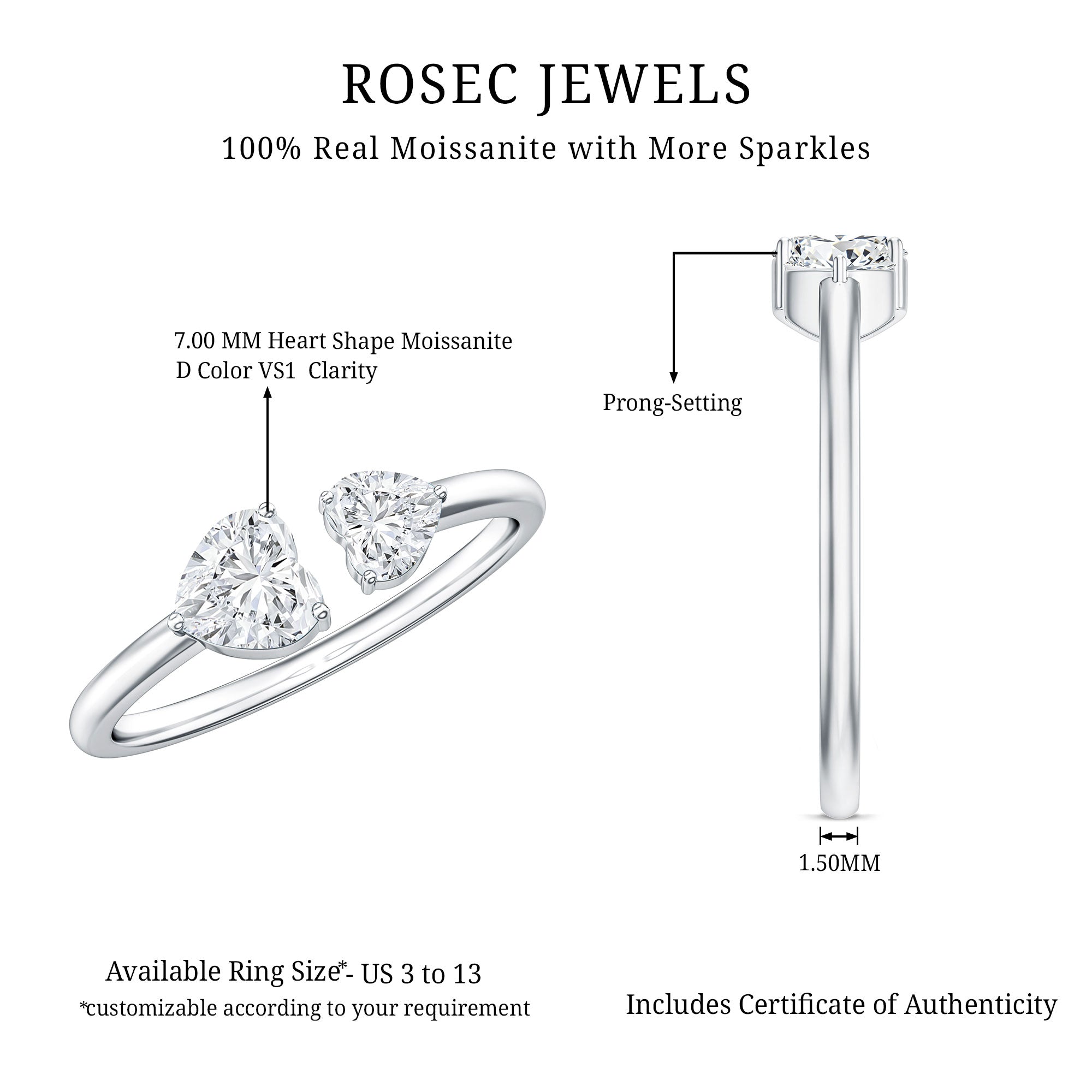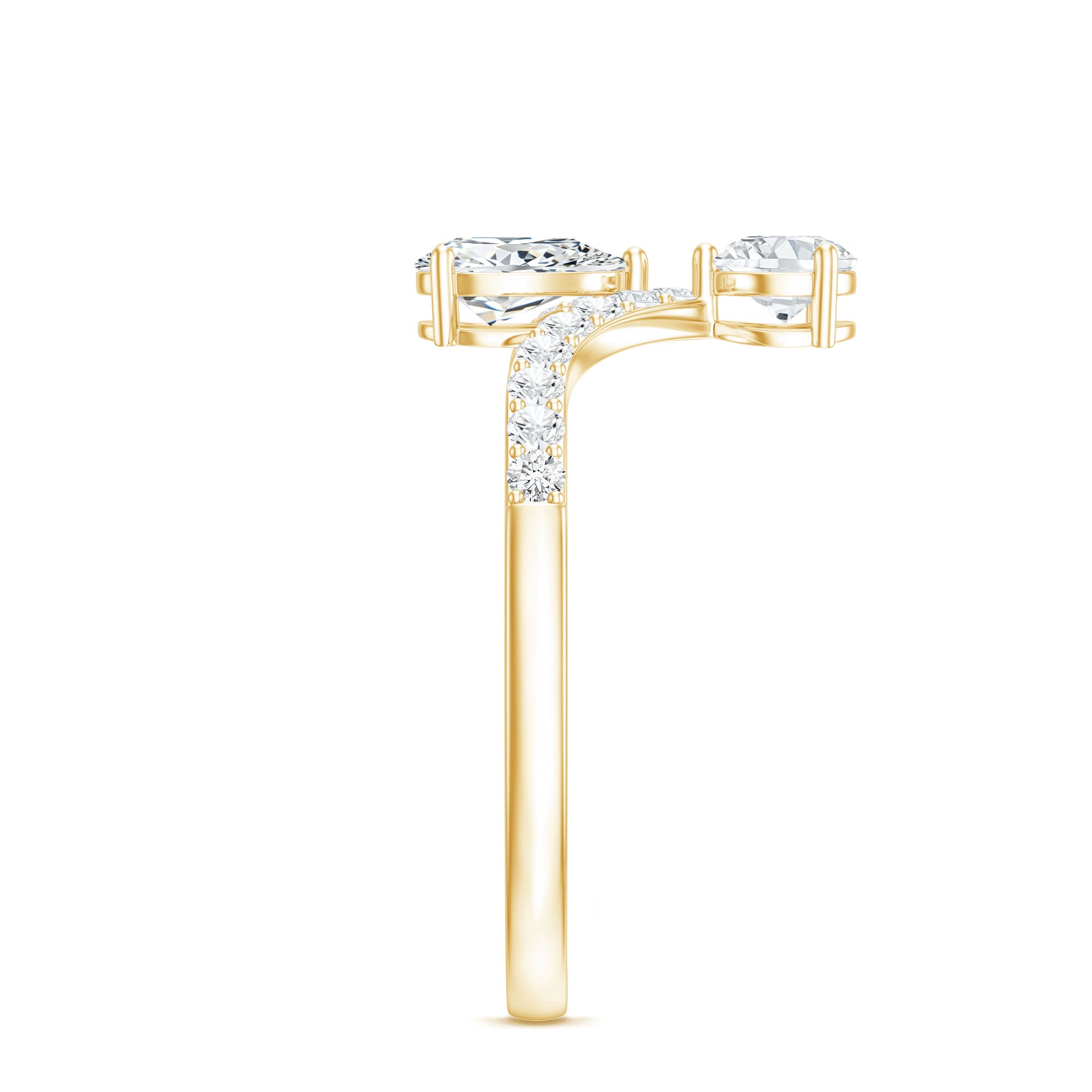 The most important job of a Toi et Moi setting is stability. Because there are two centers, the ring should feel balanced and secure.Settings with secure prongs, thoughtful spacing, and smooth edges help with daily comfort. If you want additional sparkle,you may prefer designs that incorporate accent stones or a refined halo effect—while keeping the two main stones as the focus.