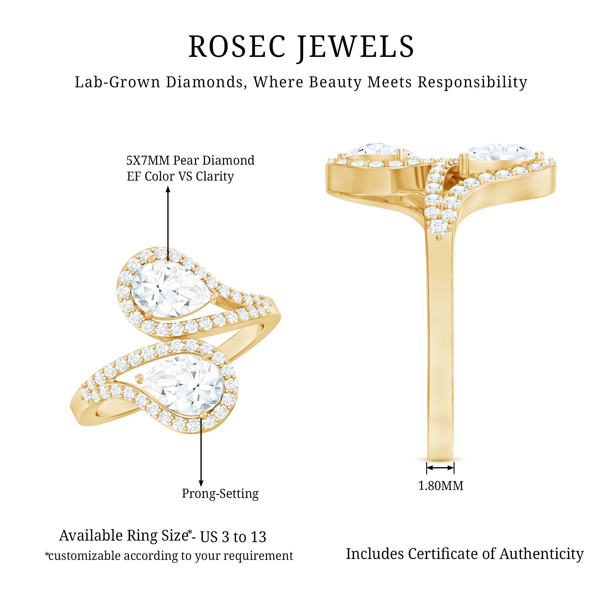 Pear: If you’re on the lookout for a completely contemporary and fancy Two Stone Ring, consider going for the one fashioned in Pear Cut (also referred to as Teardrop). Each stone here boasts a pointy end on one hand and a rounded one on the other.