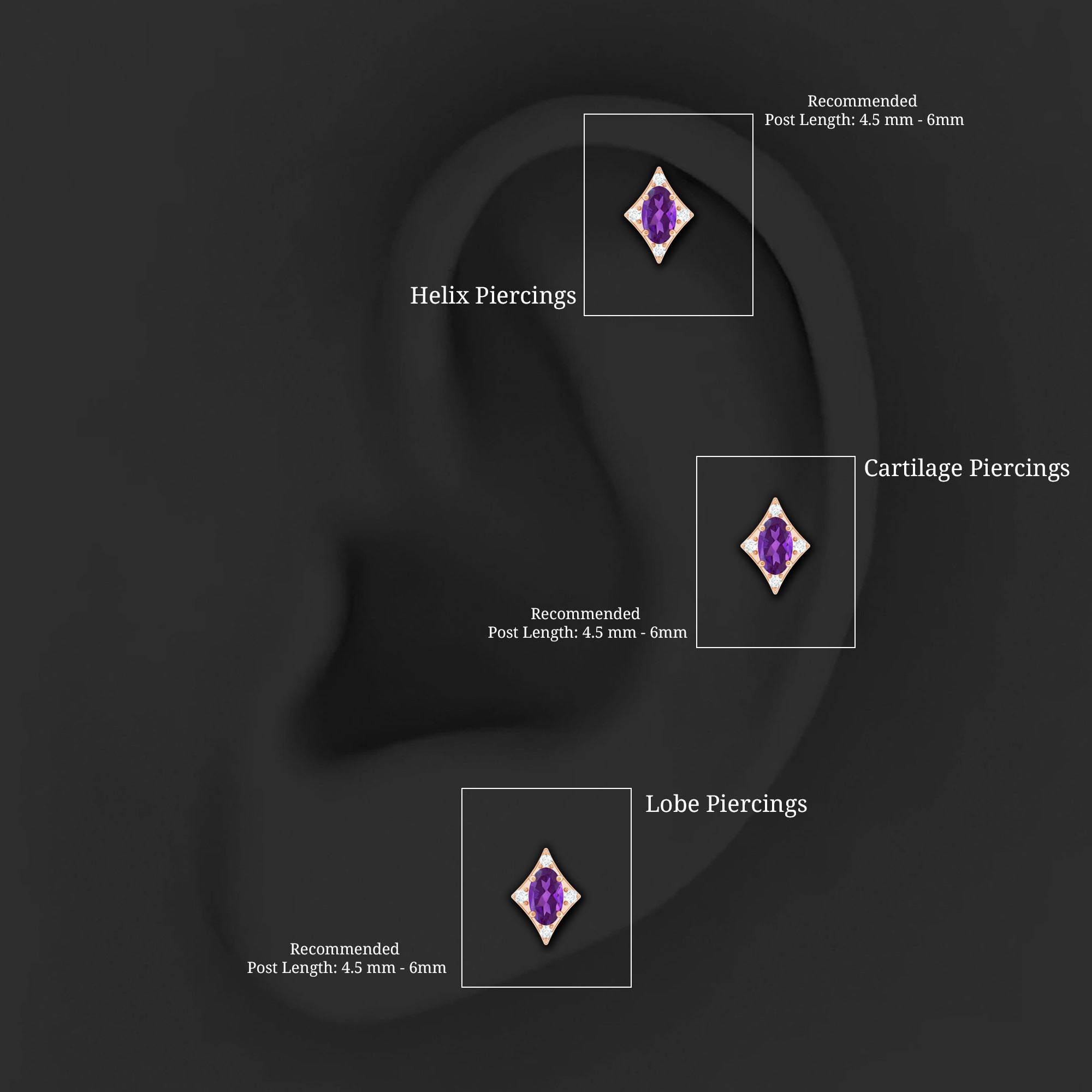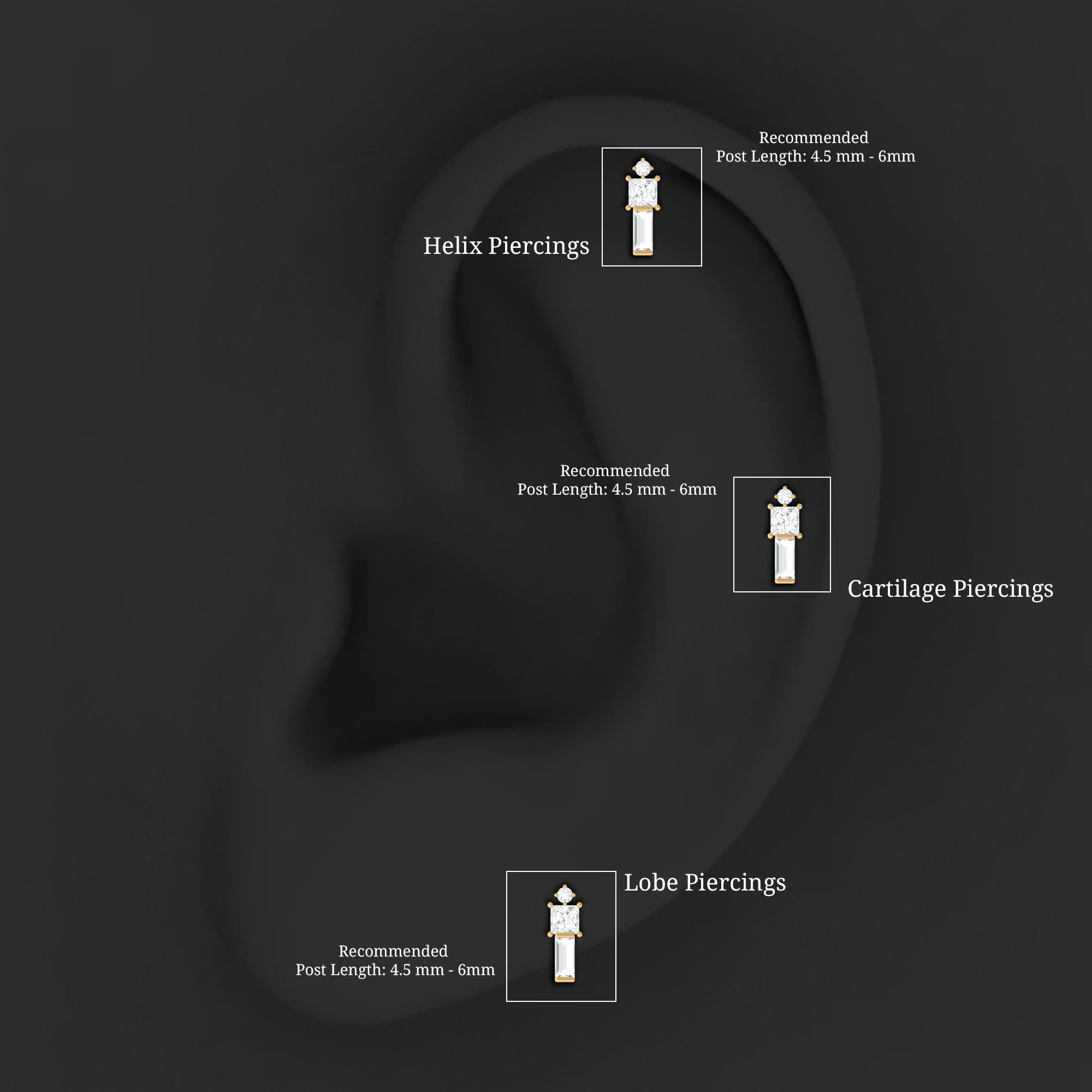 • You can easily switch between the diamond tragus earrings and the tragus studs.