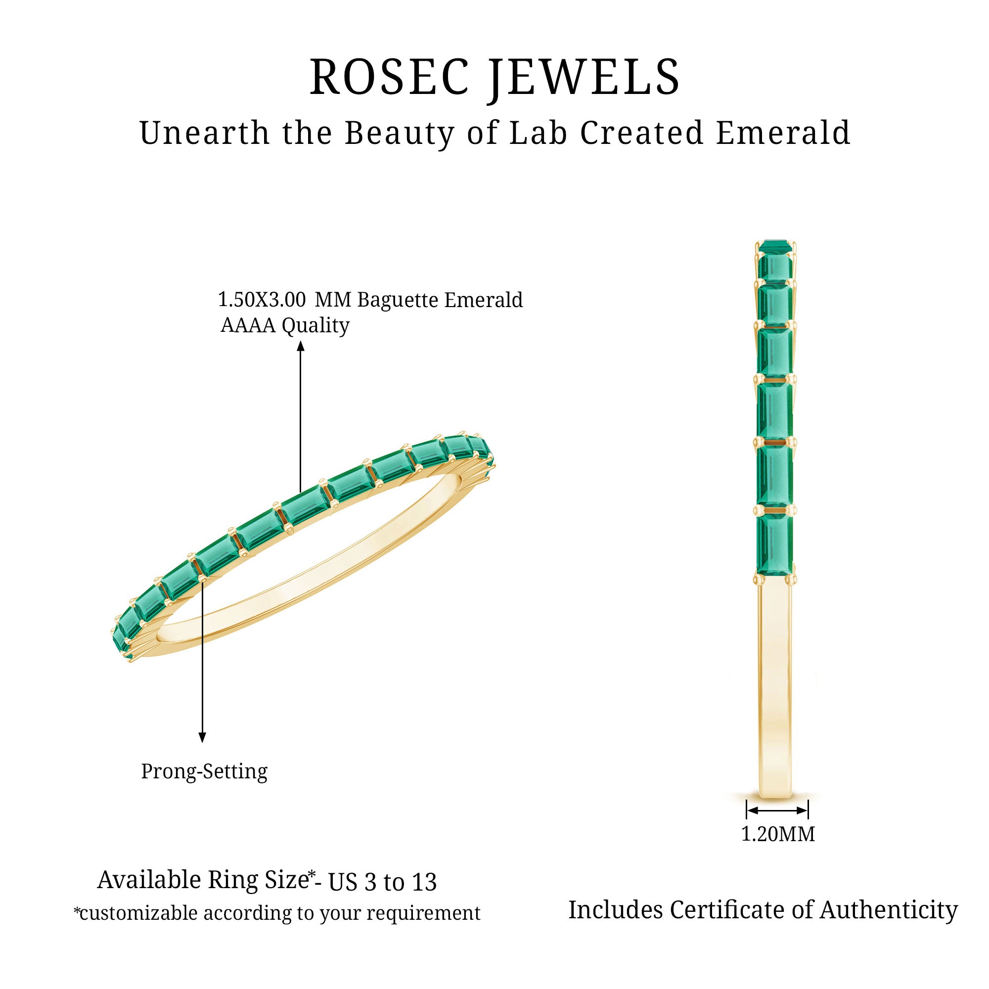 Genuine and Pure: Rosec Jewels proudly presents authentic jewelry crafted from genuine gold (10k, 14k, 18k White and Yellow Gold) and 925 sterling silver. Each ring comes with a certificate, guaranteeing its authenticity and ensuring you receive the true and captivating beauty of an authentic eternity ring.