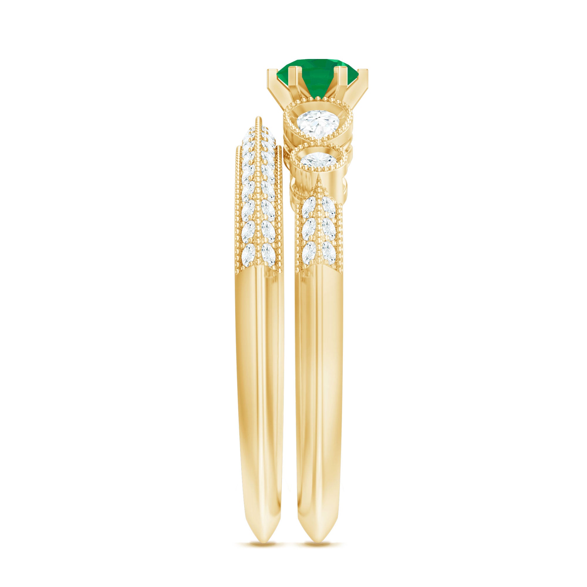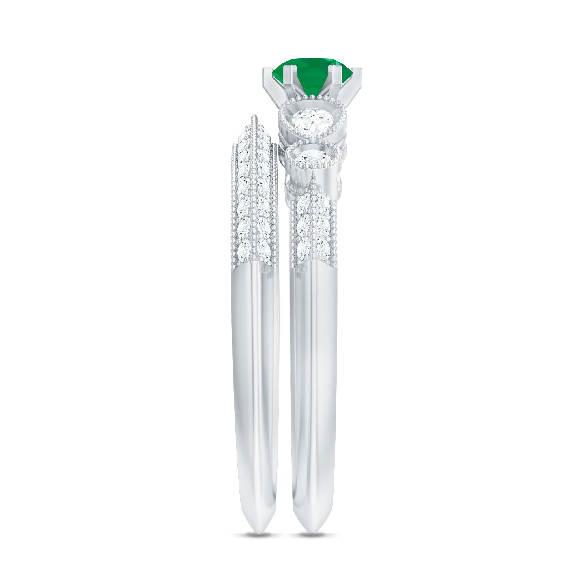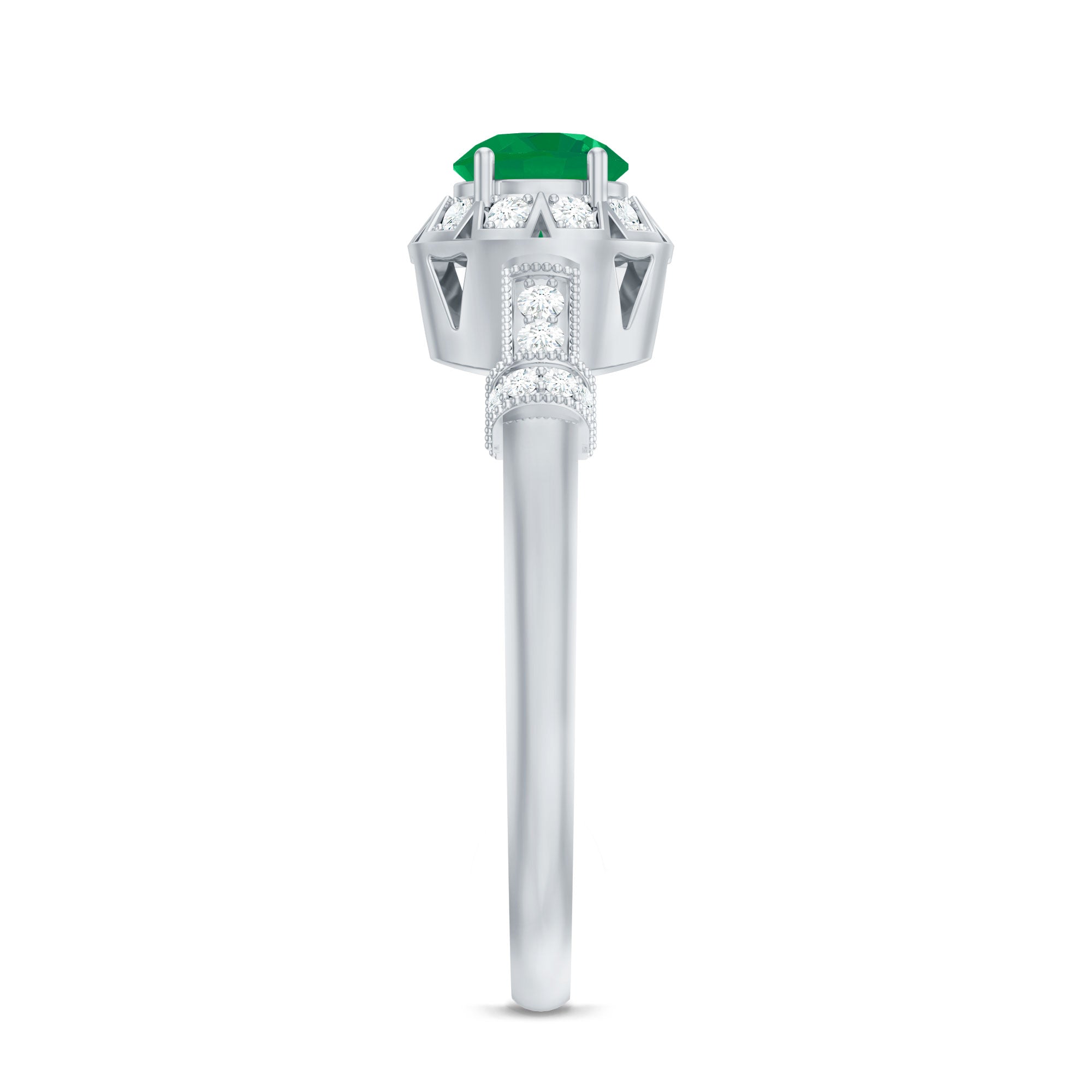 Bold gems like emeralds, rubies, and sapphires are frequently mixed with glittering diamonds in geometric patterns in Art Deco rings. A striking visual effect is produced by using symmetrical patterns and contrasting colors. The elaborate designs of this period also show the influence of Egyptian, Asian, and Native American art, producing engagement rings that are both elegant and distinctive.