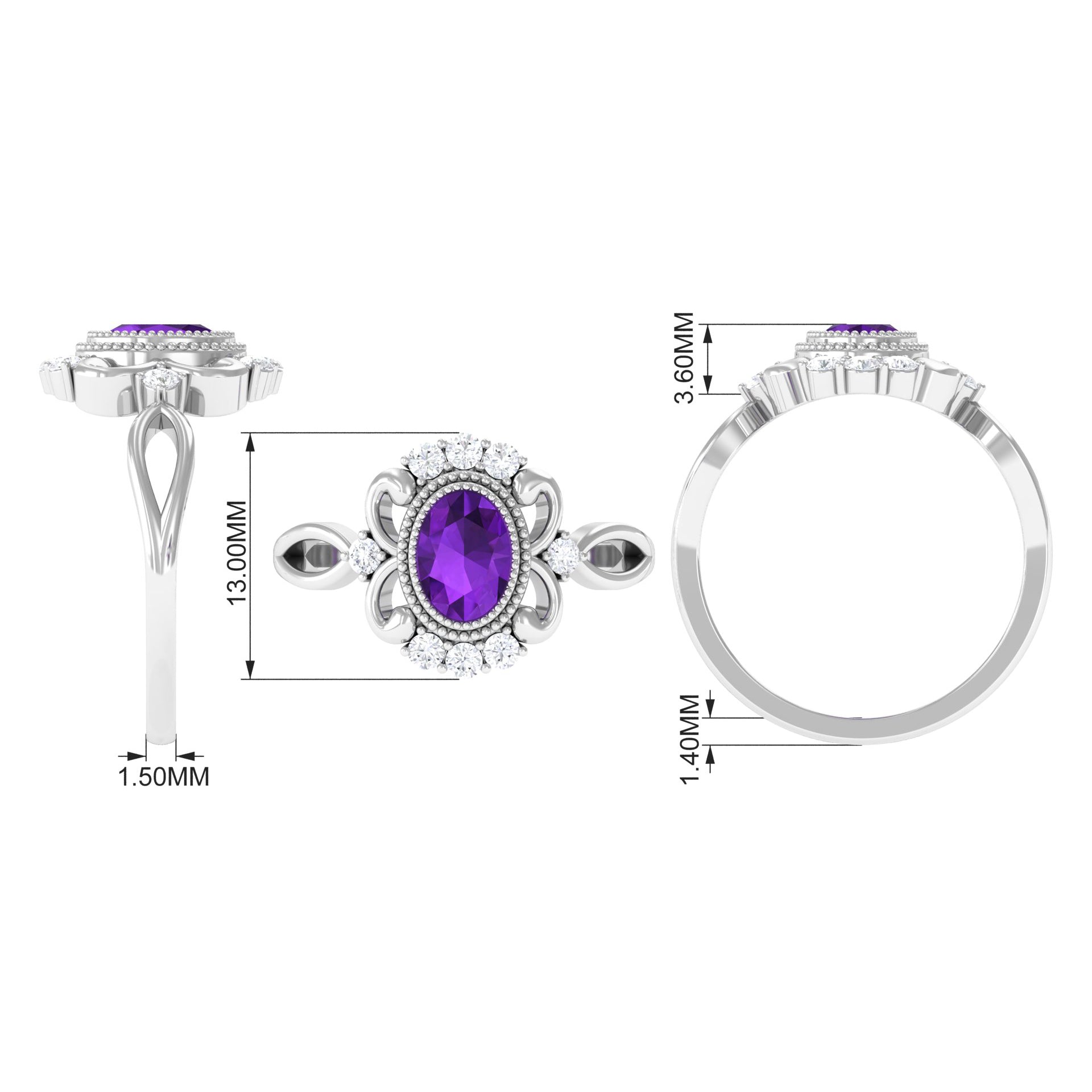 Intricate filigree work; feminine themes like bows, flowers, and ribbons, which were popular at the time, are characteristics of Edwardian rings.