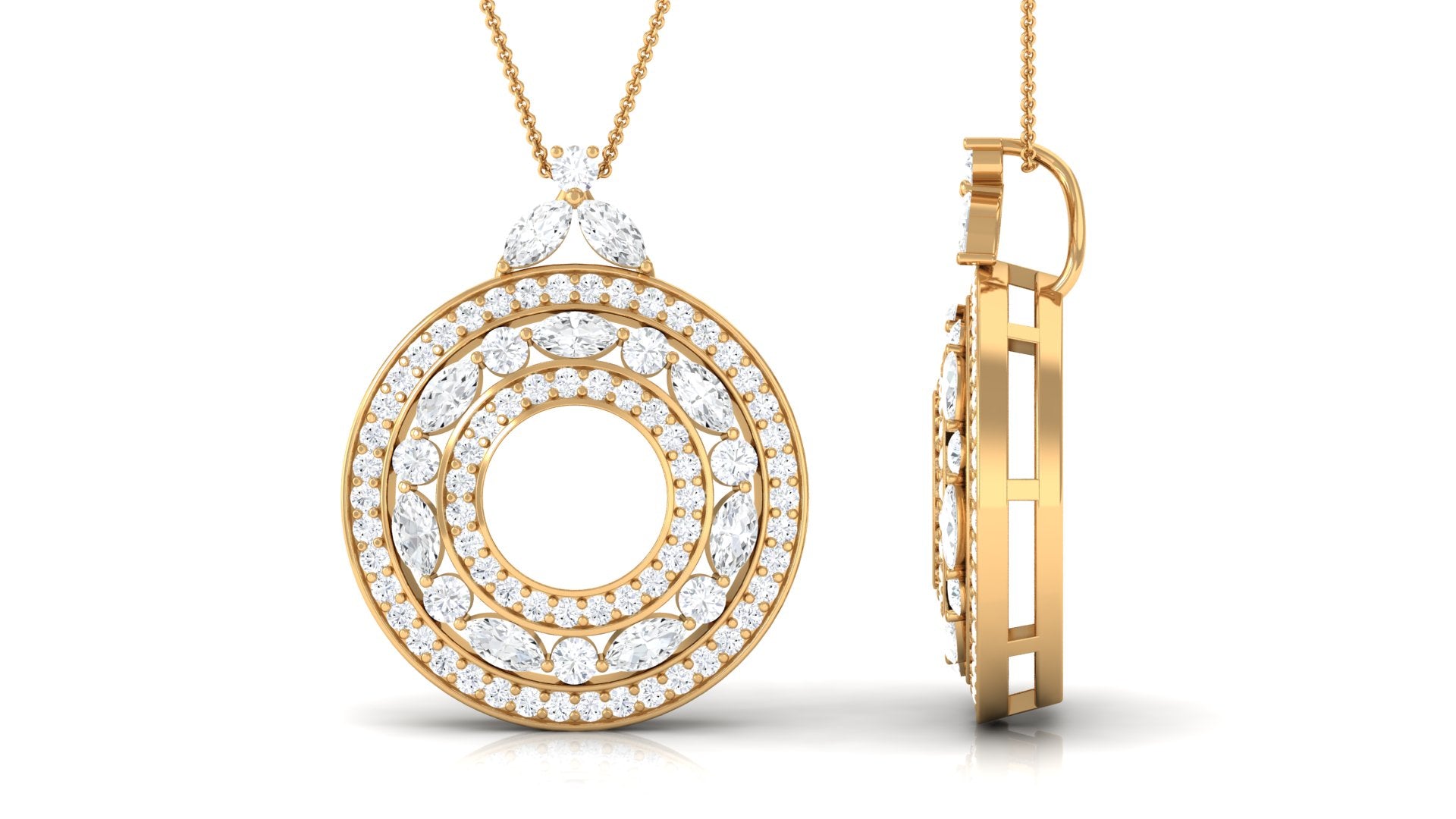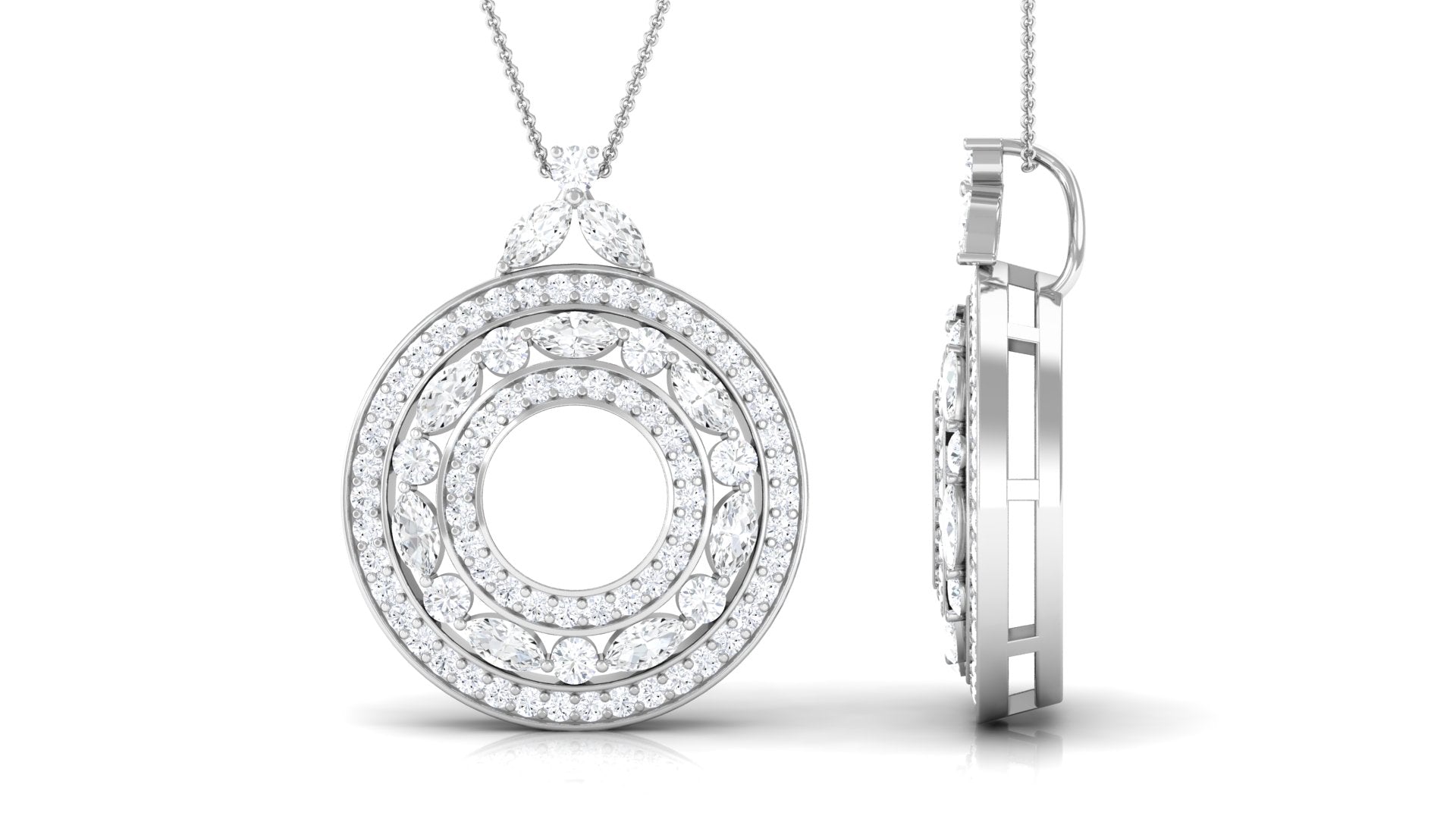 Let your passion for pendants find expression here. Each piece in our collection comes with a unique design ranging from halo to art deco, cut work to beaded, and minimal to dramatic. Vintage-style pendant necklaces come adorned with colored gemstones, diamonds, and pearls set in popular shapes like round, oval, emerald, and cushion cuts. Necklaces can be obtained in a metal of your choice, either white, yellow, or rose gold. You can easily find a lovely piece within your price range.