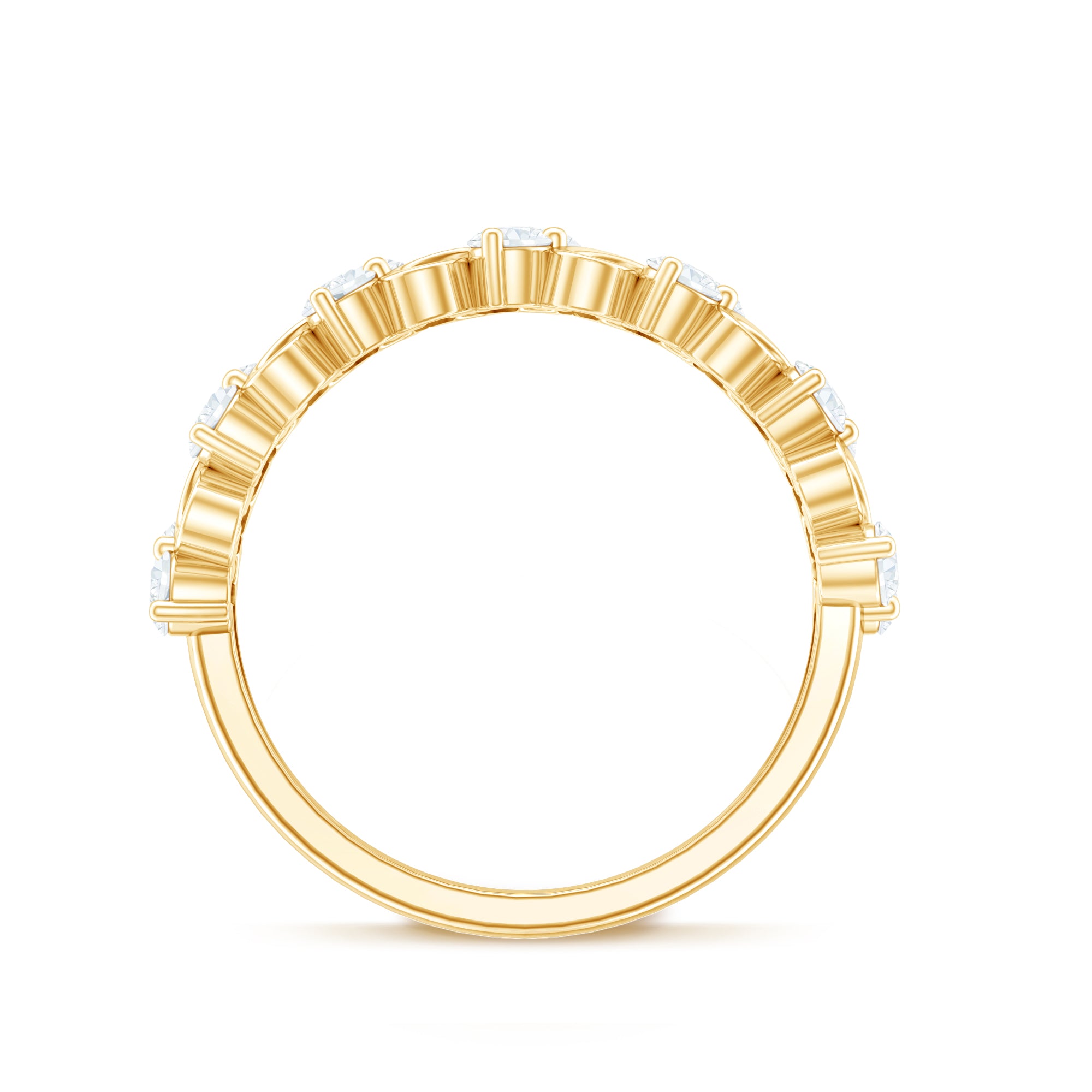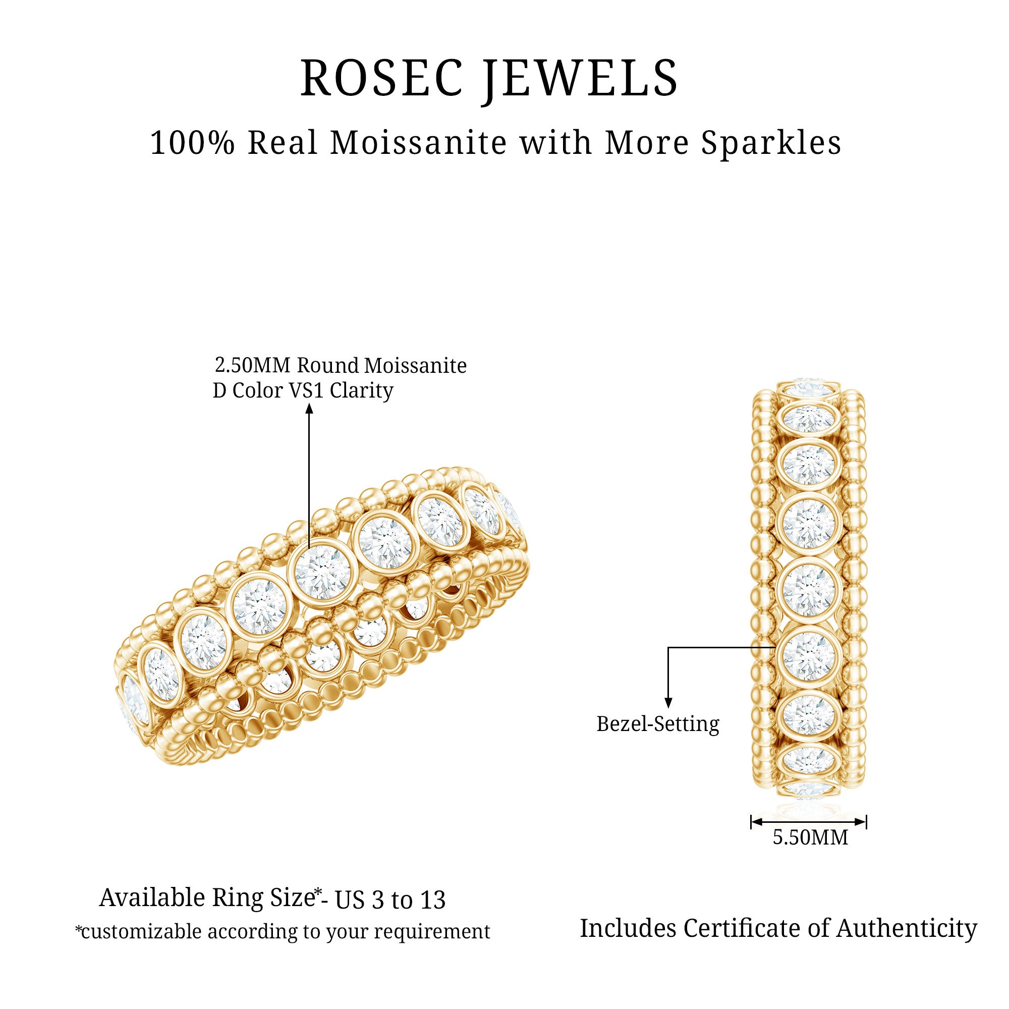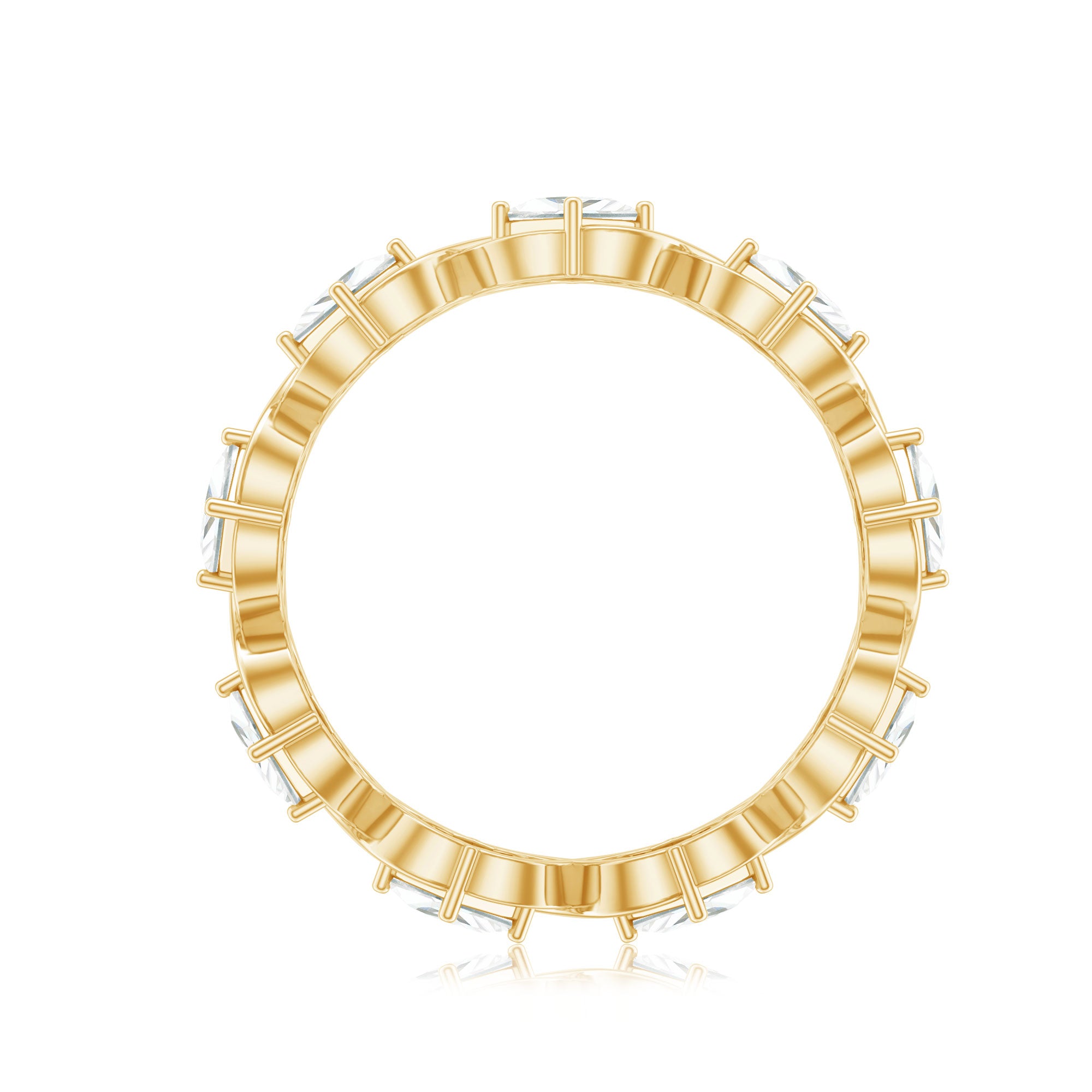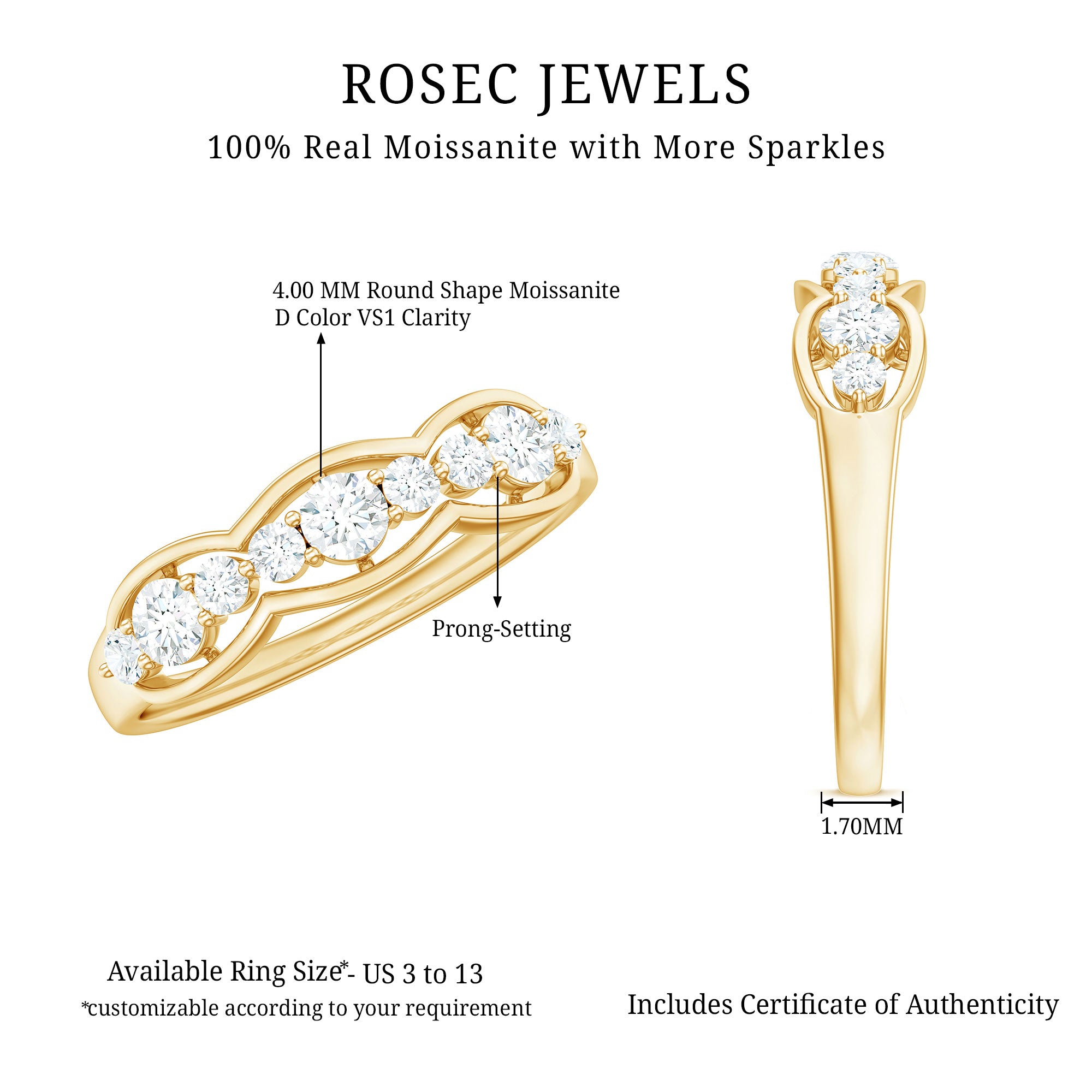 Heart Wedding Bands: Heart shaped moissanite wedding bands are usually the choice of romantic couples, who look for symbolism, besides meaning in their ring. Ruby hearts with alternate diamond hearts or topaz hearts side by side with their clefts facing opposite direction create stunning visual appeal. Explore more such heartfelt symbols in our wedding bands collection.