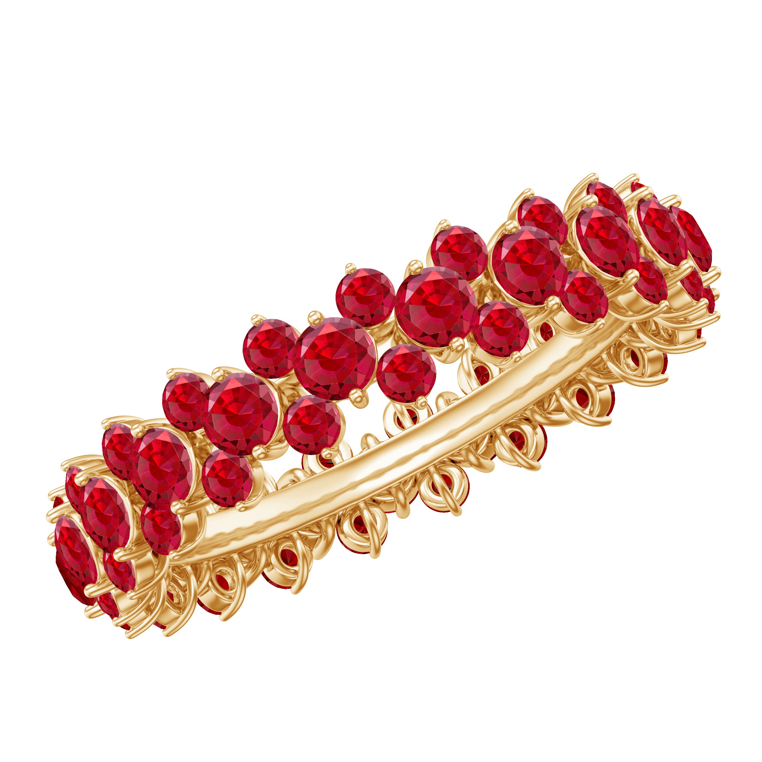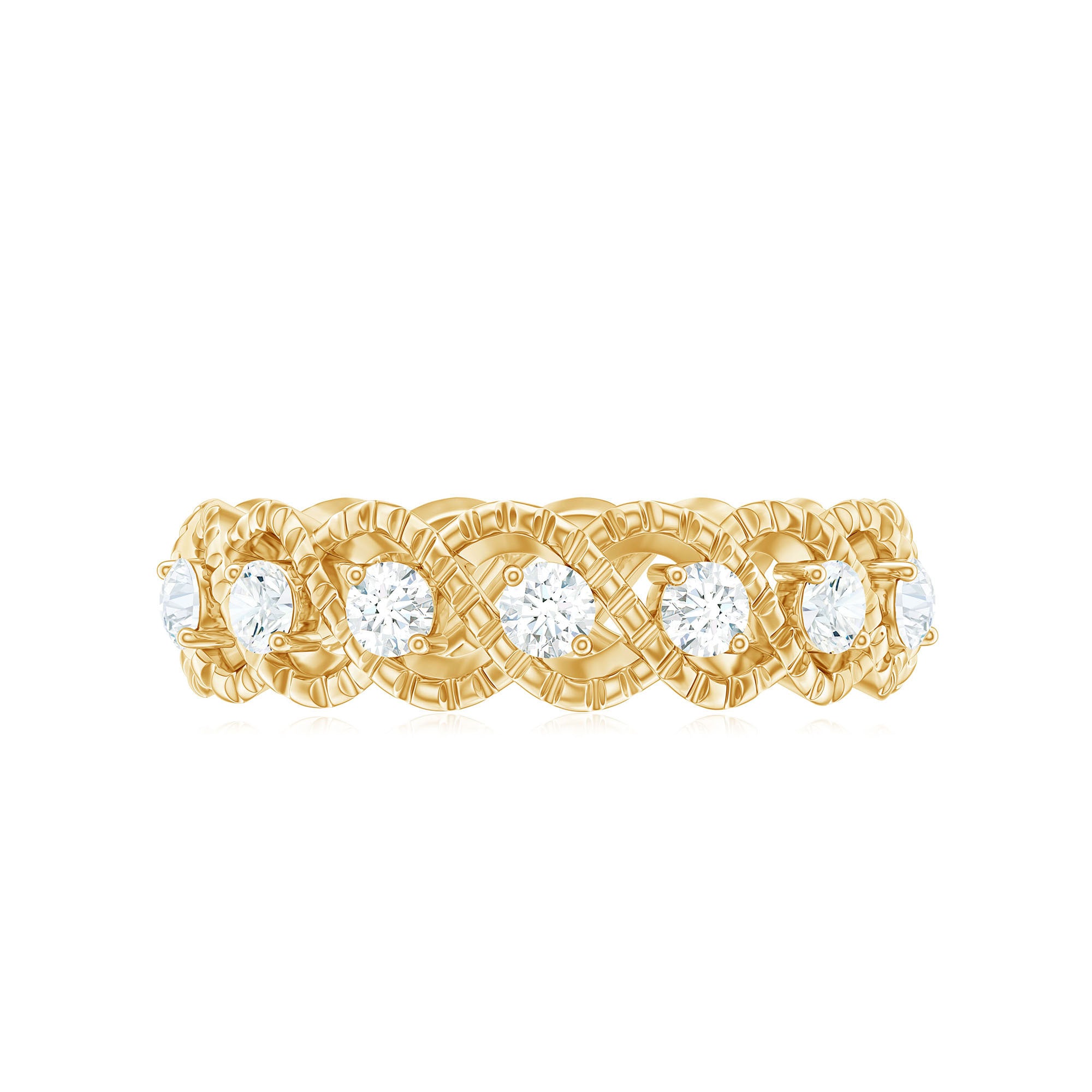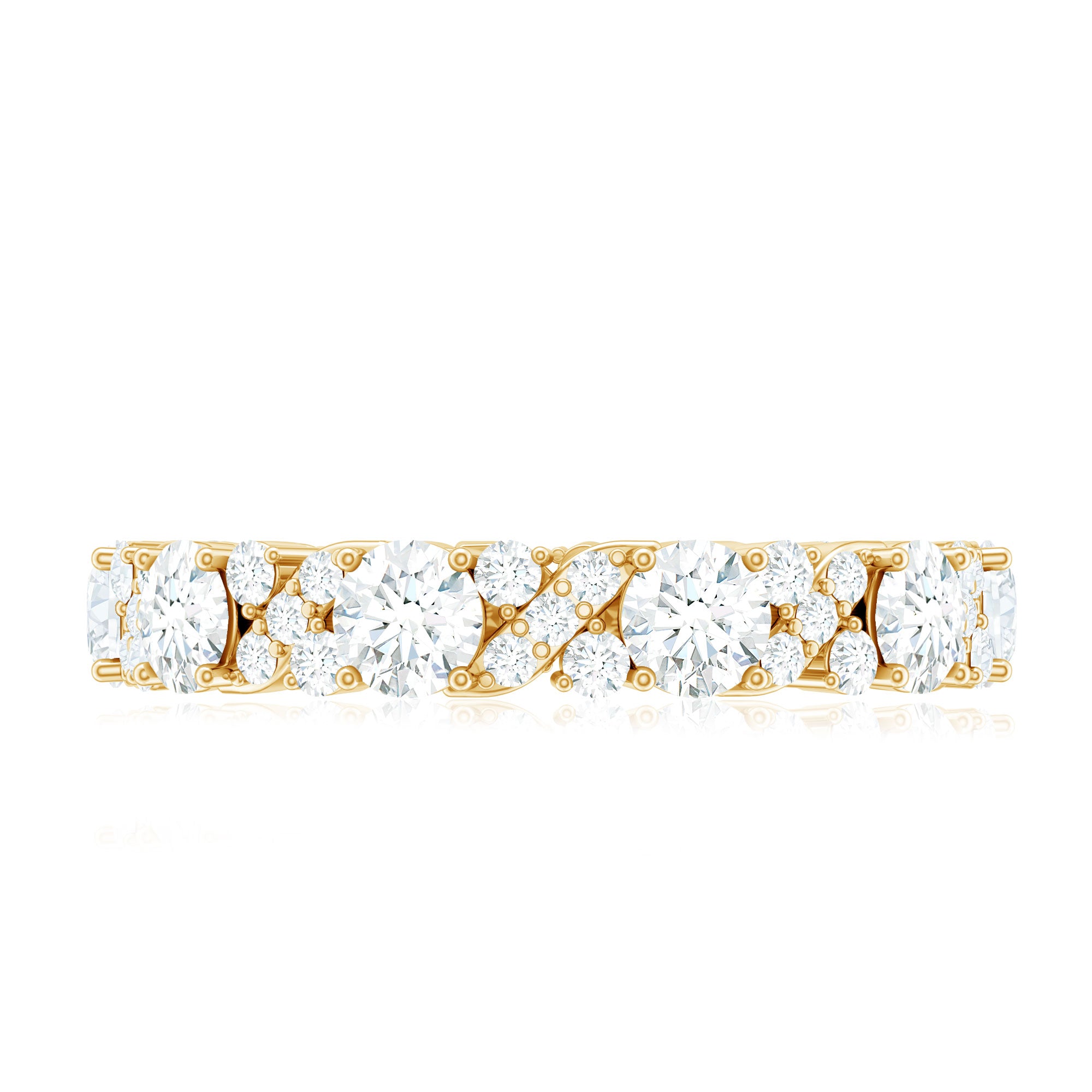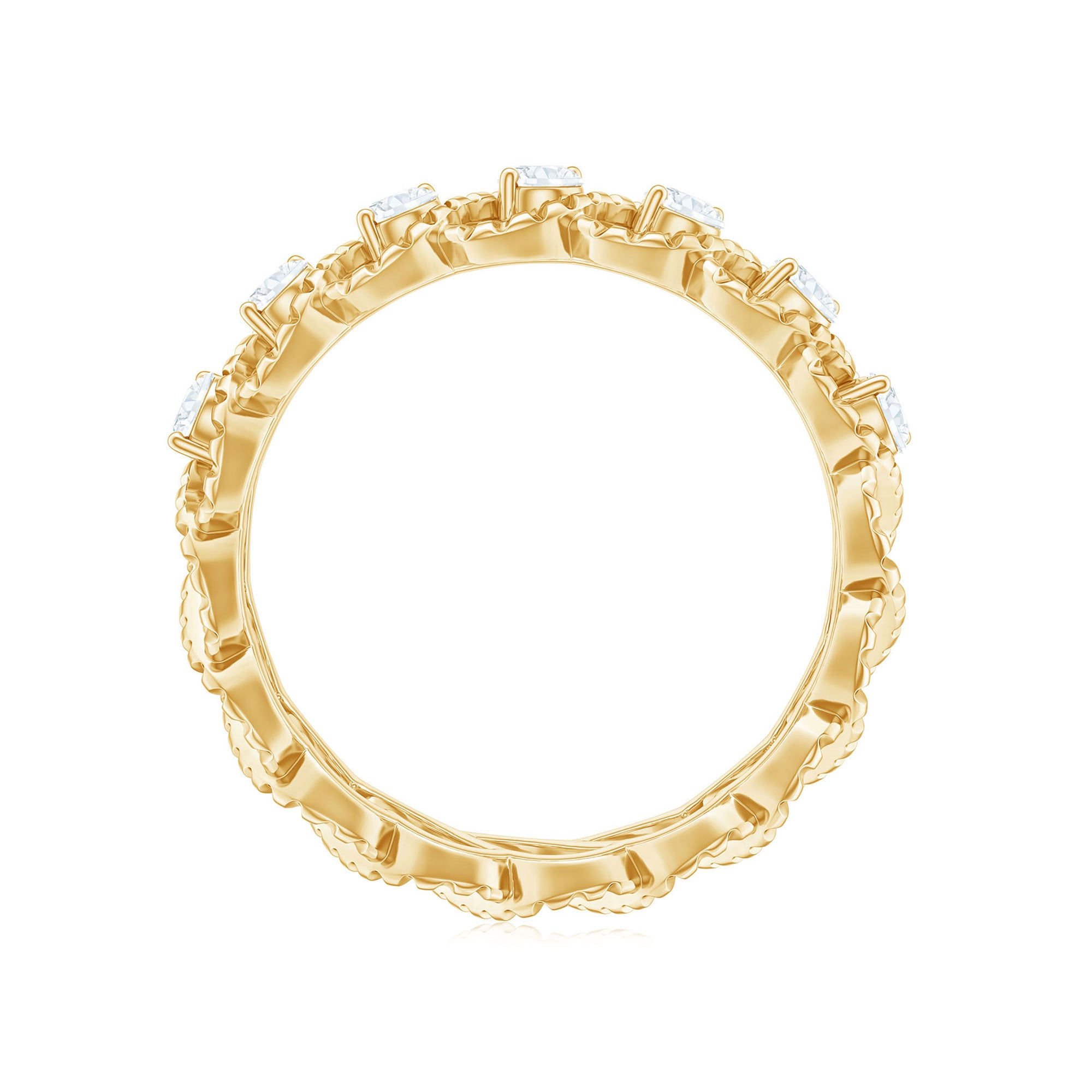 Heart Wedding Bands: Heart shaped moissanite wedding bands are usually the choice of romantic couples, who look for symbolism, besides meaning in their ring. Ruby hearts with alternate diamond hearts or topaz hearts side by side with their clefts facing opposite direction create stunning visual appeal. Explore more such heartfelt symbols in our wedding bands collection.
