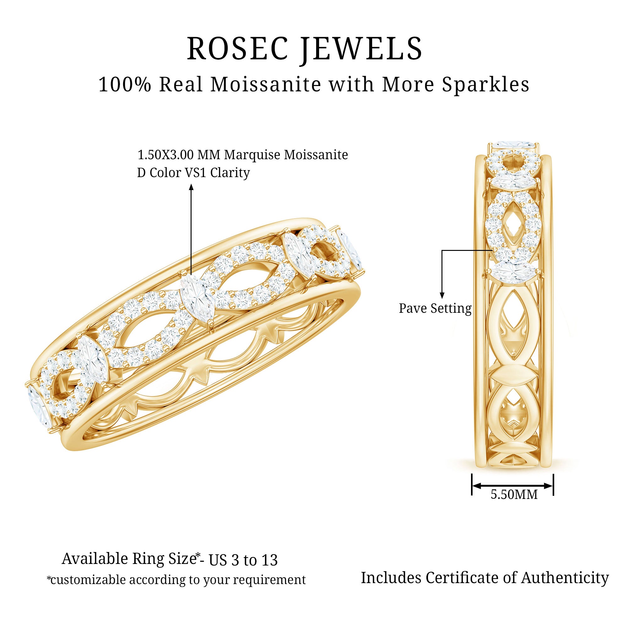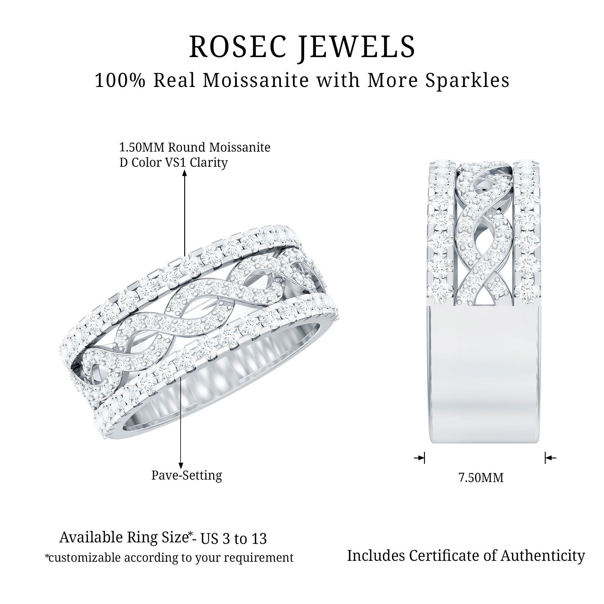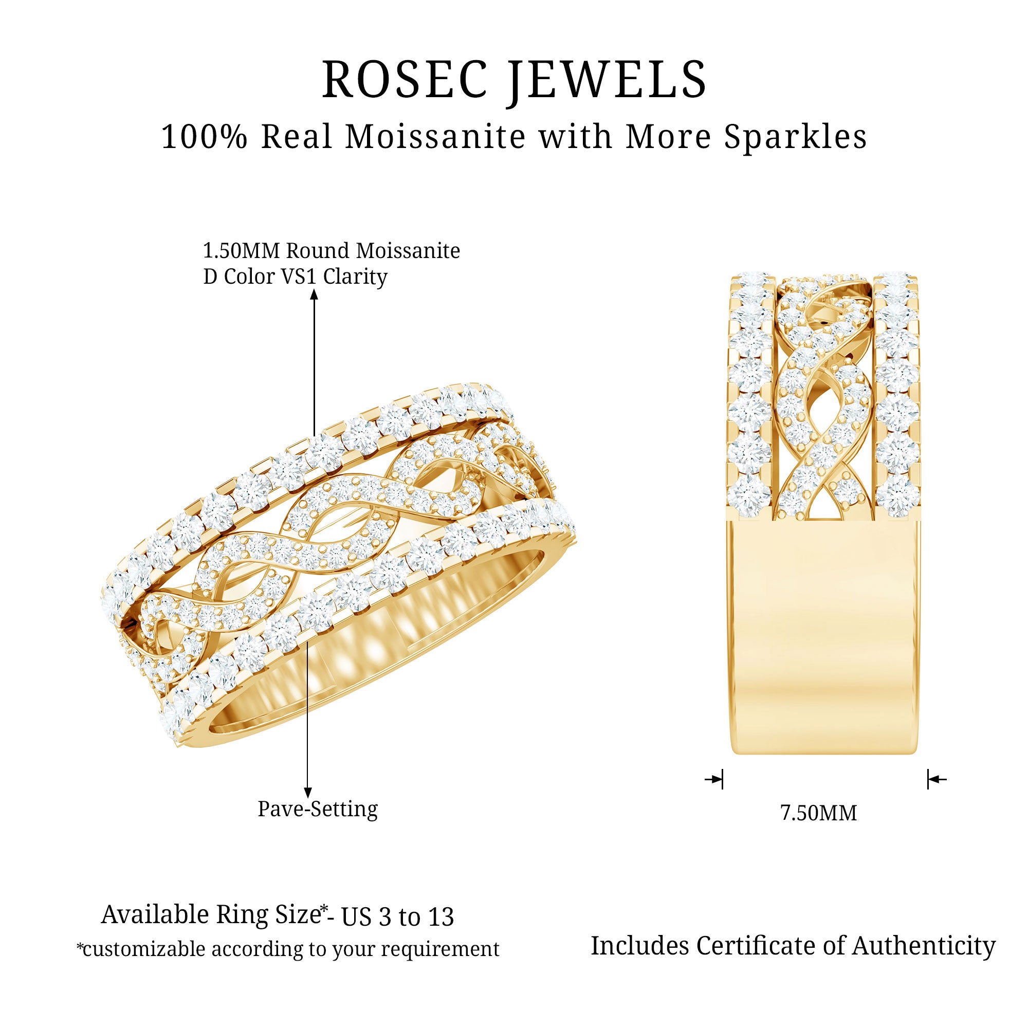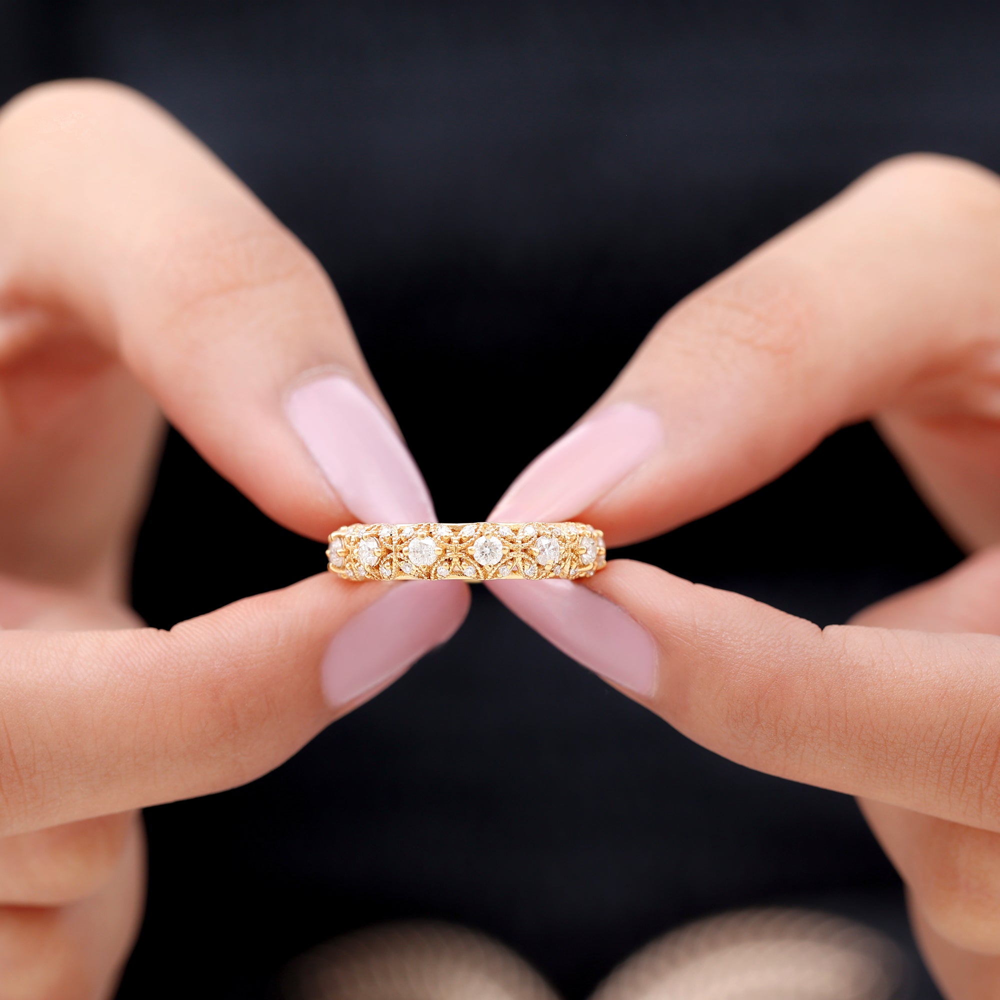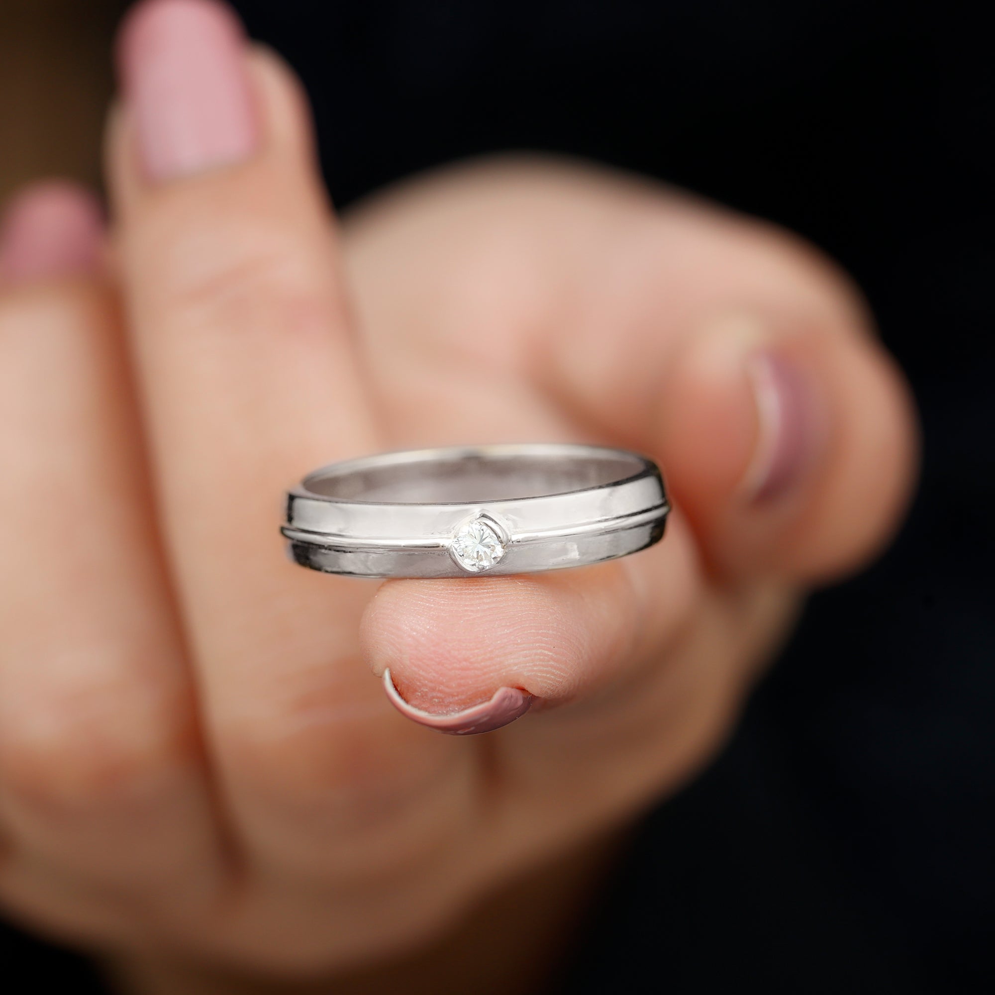 Heart Wedding Bands: Heart shaped moissanite wedding bands are usually the choice of romantic couples, who look for symbolism, besides meaning in their ring. Ruby hearts with alternate diamond hearts or topaz hearts side by side with their clefts facing opposite direction create stunning visual appeal. Explore more such heartfelt symbols in our wedding bands collection.
