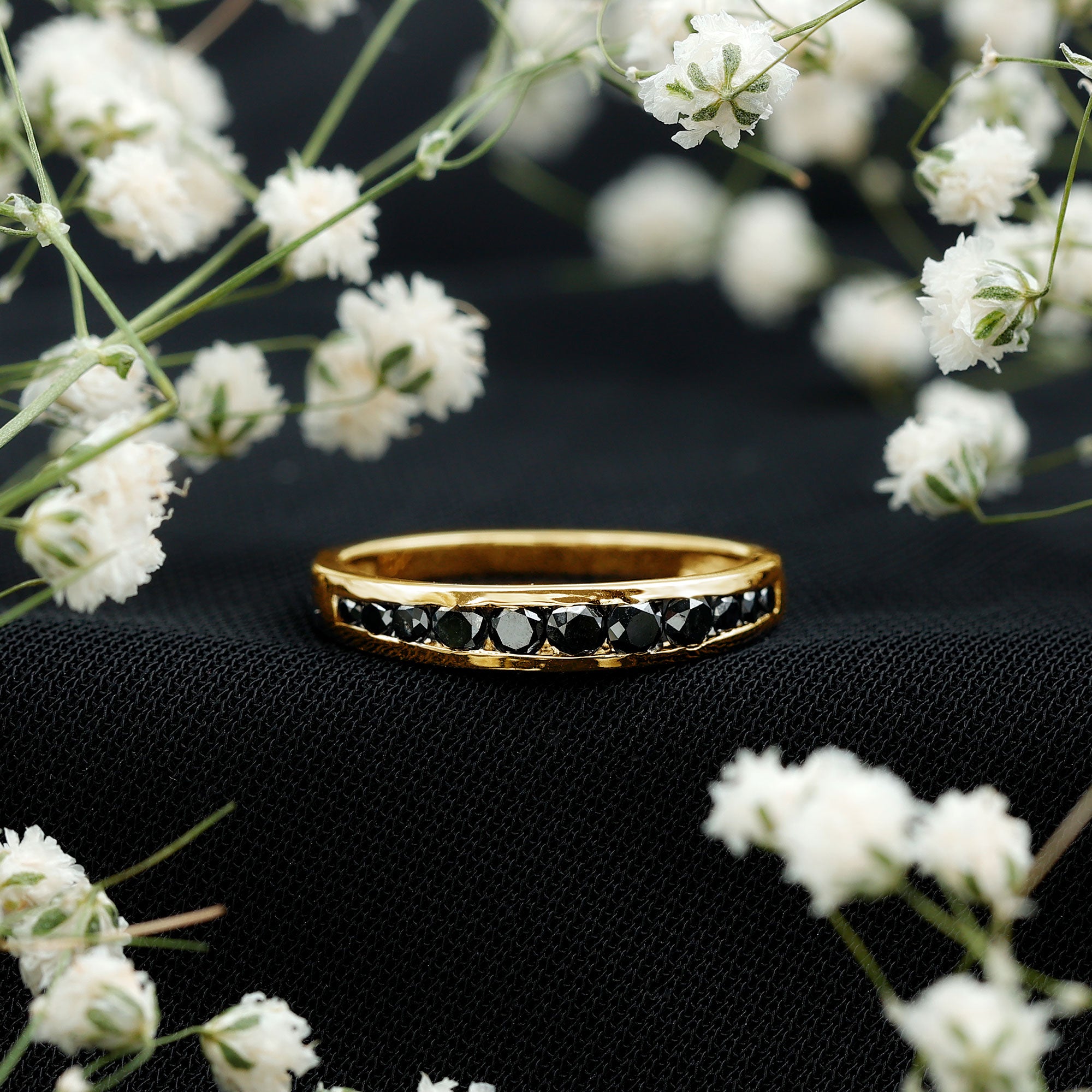 Round Gemstone Wedding Rings: Round wedding bands are traditional choices that symbolize eternity and unity. Featuring dainty or bold round gemstones these rings are for their exceptional sparkle.