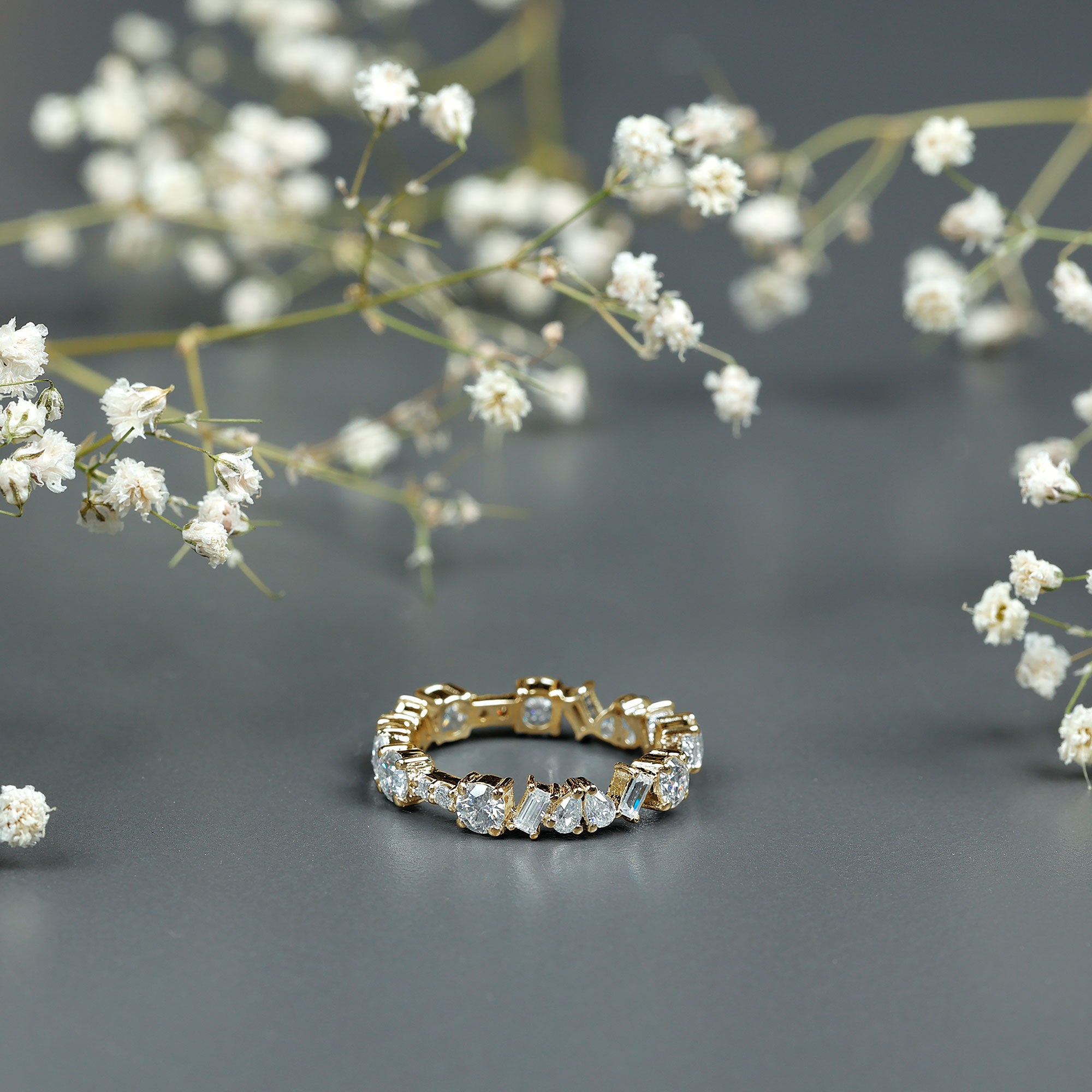 Lab-grown gemstones have all the sparkle and strength of mined ones, because they’re made of the same stuff. The only difference? They’re created above ground in strict supervision in labs instead of deep within the Earth. These wedding rings for women are: