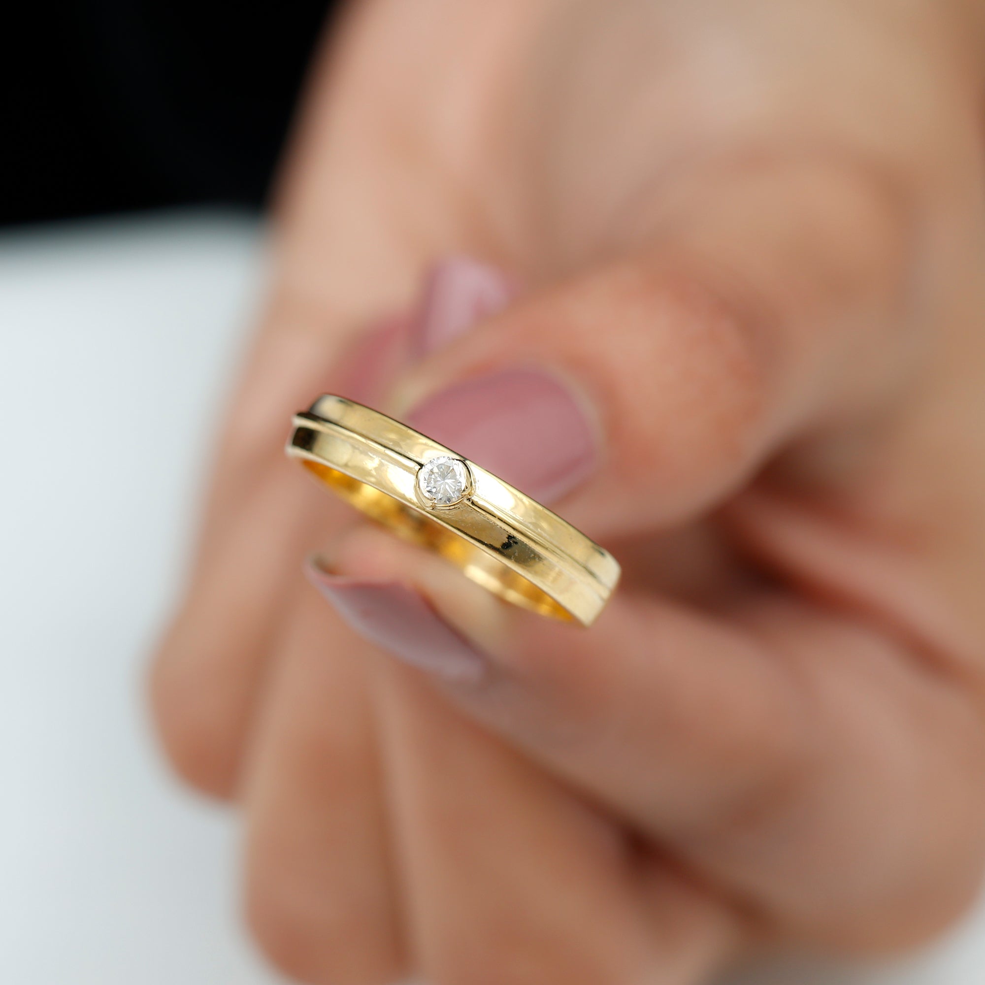 The ideal wedding bands for women can be 2MM to 8 MM in width. 2-3 MM can be a good choice if you are looking for a band for your minimalist ring. 4-5 MM is generally a standard choice for all types of rings. 6-8 MM bandwidth should be your choice if you love bold statement rings.