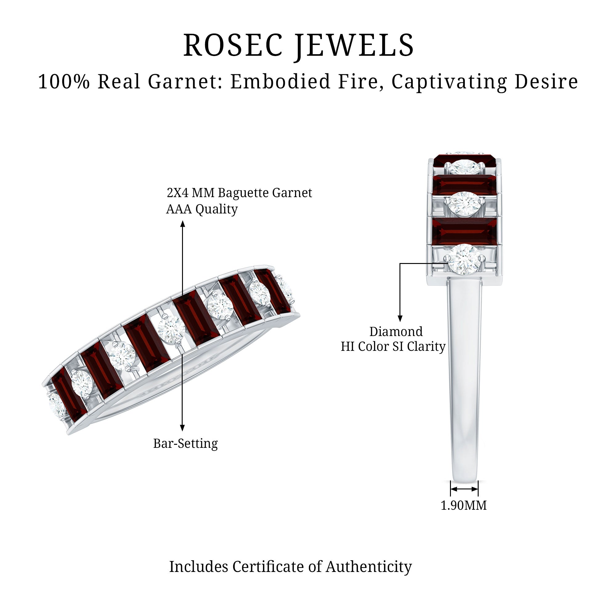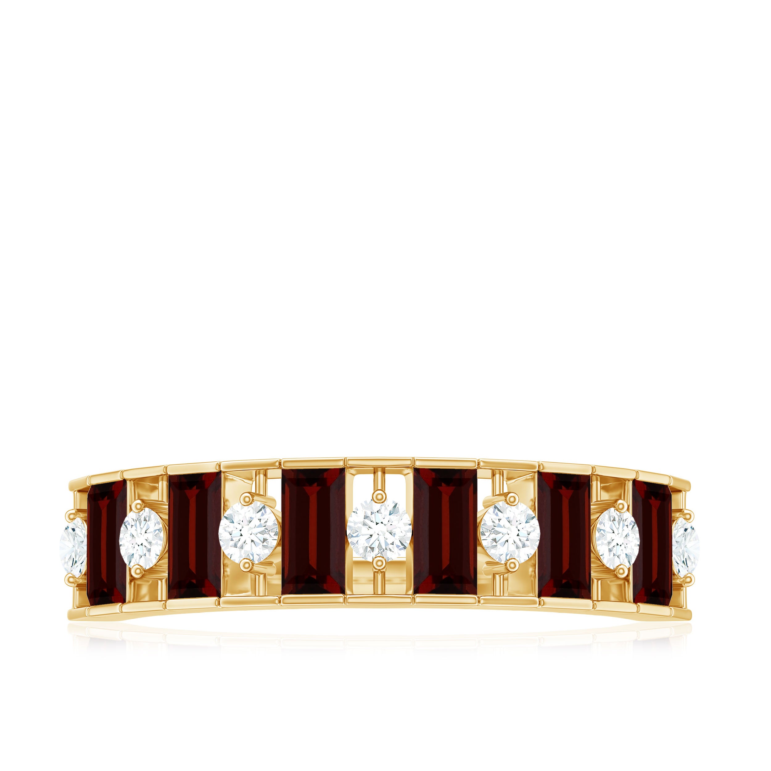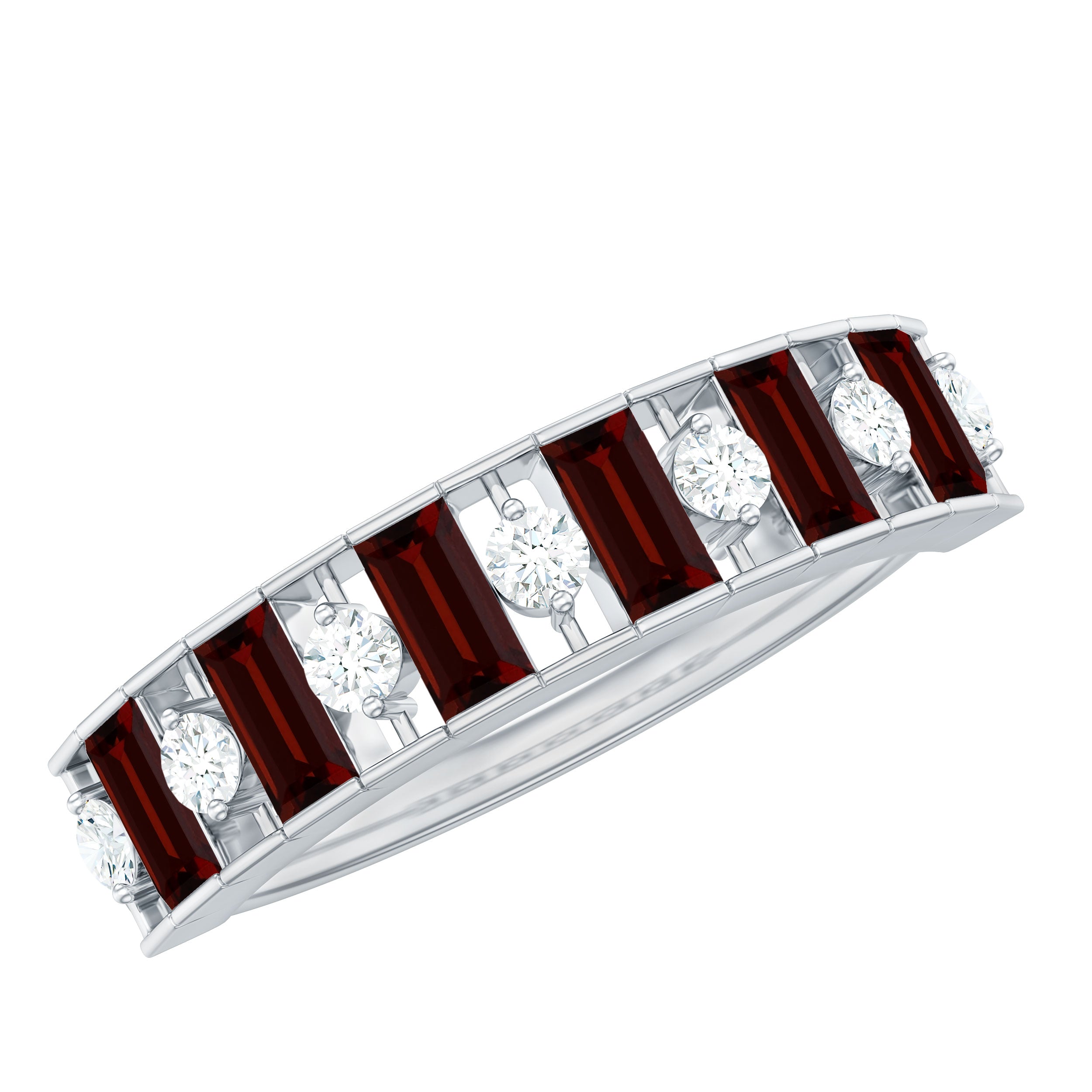 Genuine Baguette Garnet Half Eternity Band with Diamond