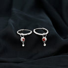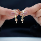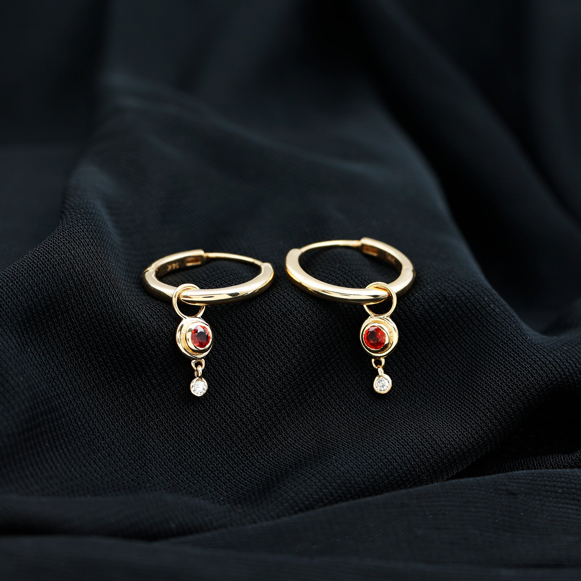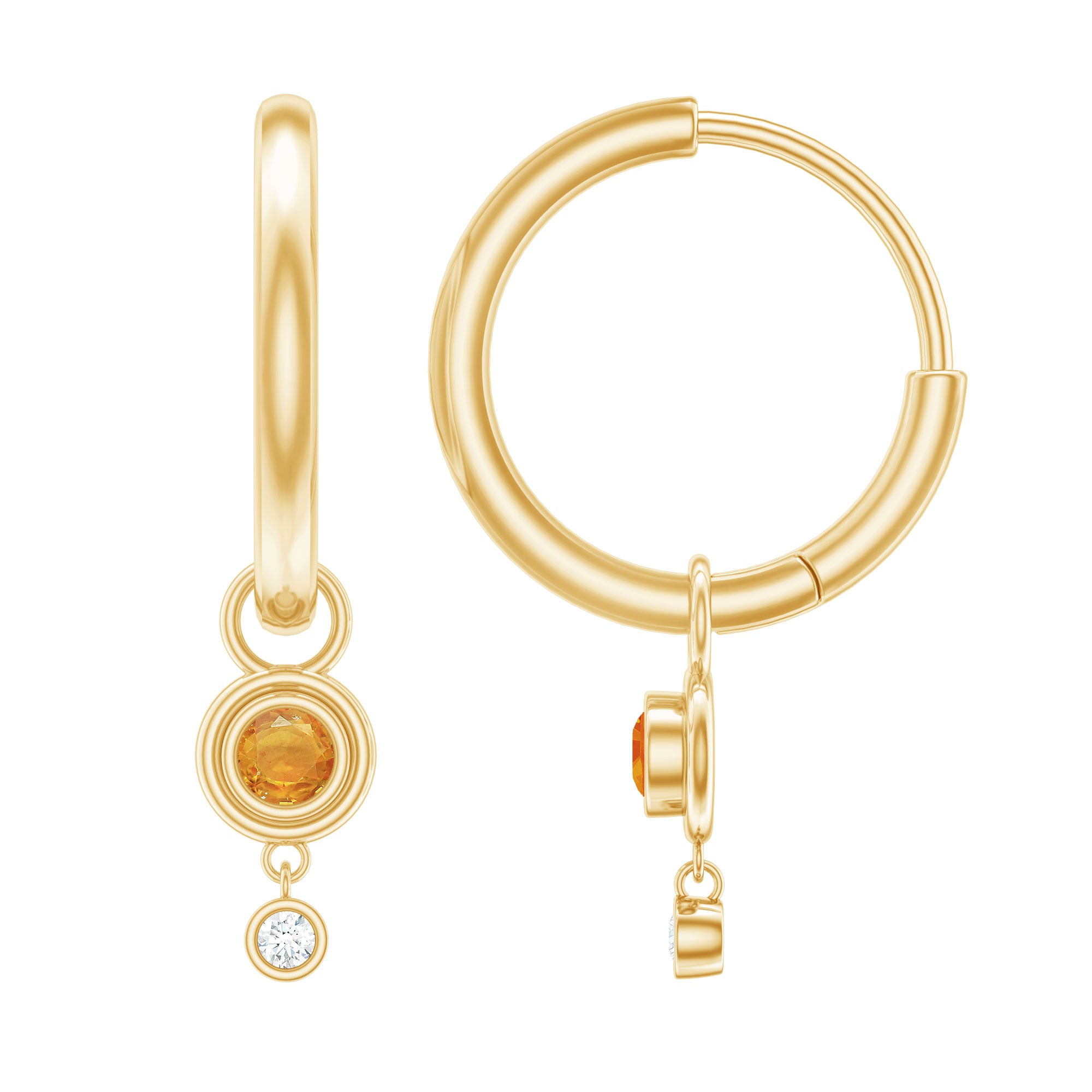 0.25 CT Bezel Set Orange Sapphire and Diamond Simple Hoop Drop Earrings
